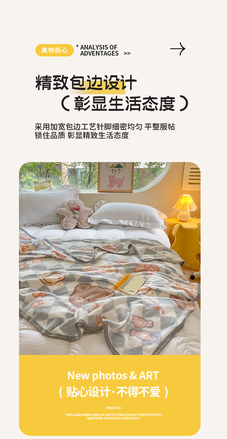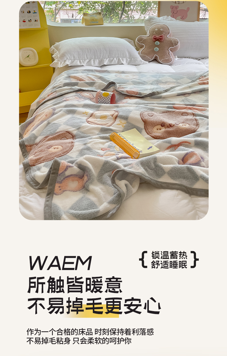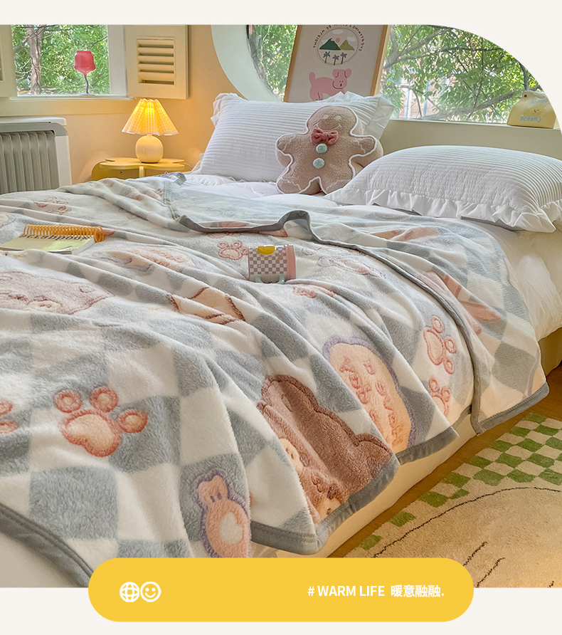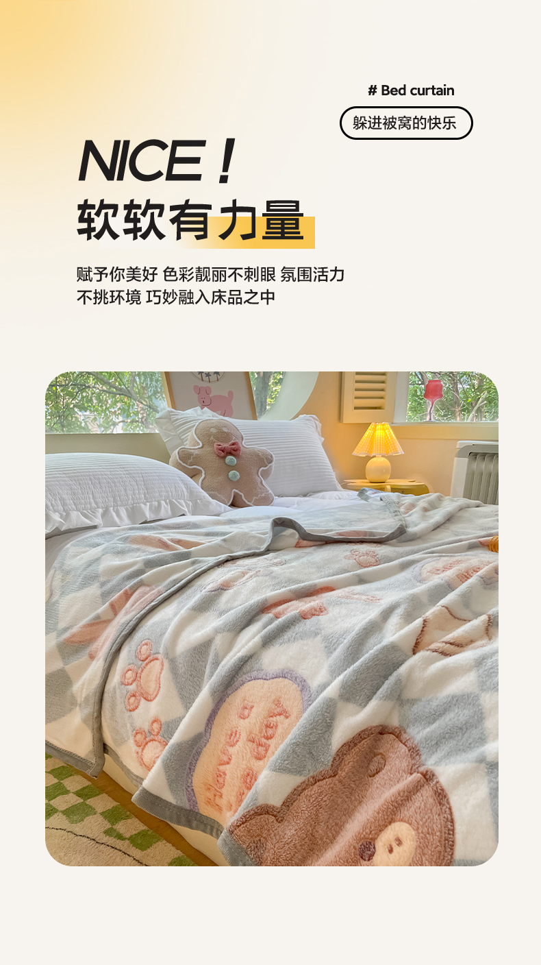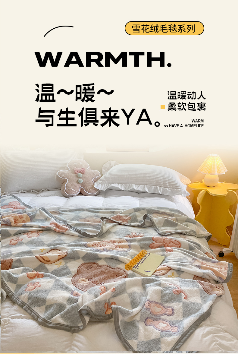 慕尚家纺 2025新款高克重加厚雪花绒毛毯毯子 甜蜜小熊