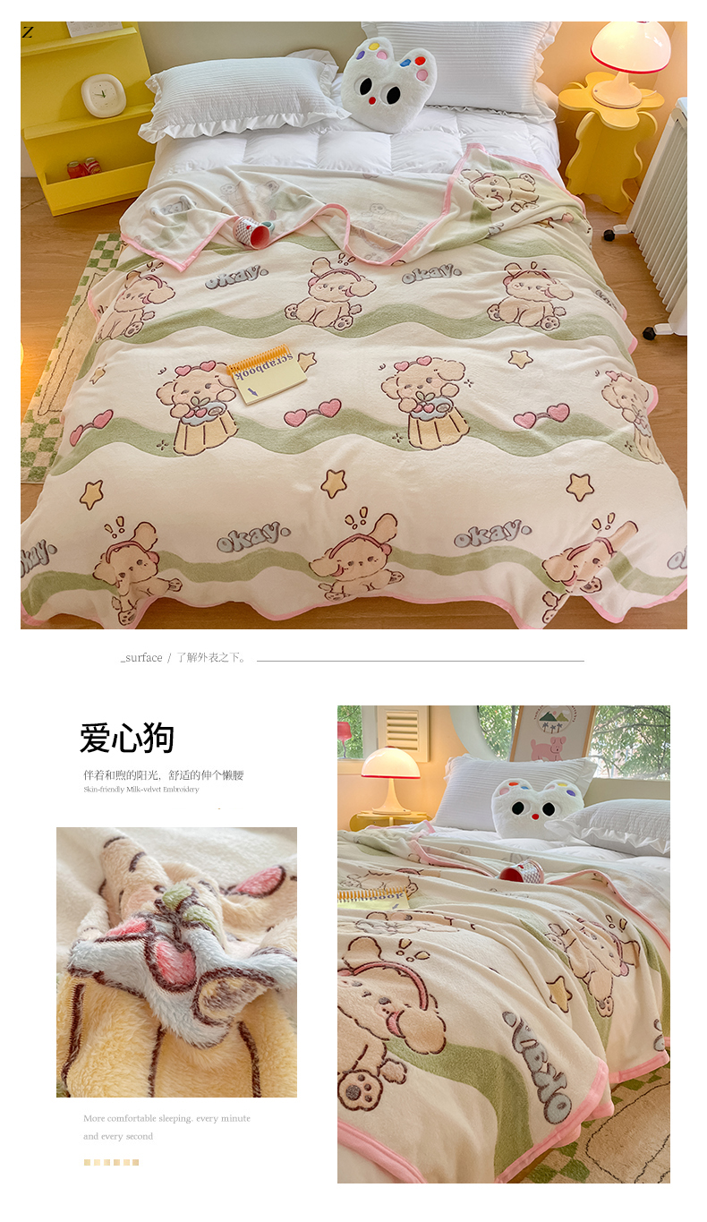 (总)慕尚家纺 2025新款豆豆绒刺绣四件套,大耳狗 白蓝,玫瑰 白粉