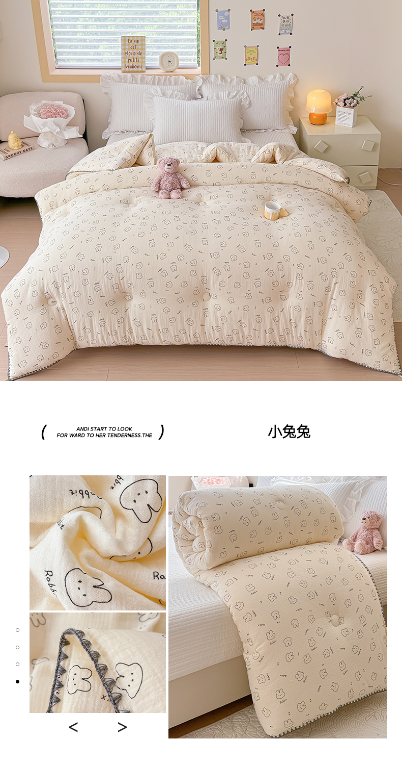 • 91家纺网 家纺一手货源 找家纺 芯恋家居 2025新款秋冬款母婴级全棉皱皱双层纱大豆被春秋被加厚大豆被 小兔兔
