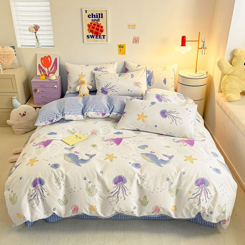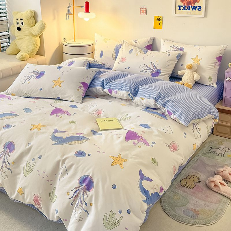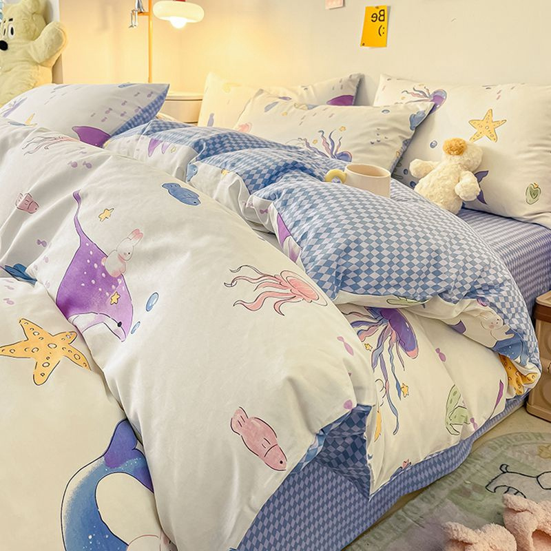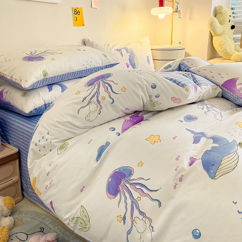 当前位置: 91家纺网 > 商品网购 > 床品套件 > 四件套 > 全棉普通四件套 > 麦伦家居 2024全棉斜纹13372小清新碎花卡通系列四件套 海底世界