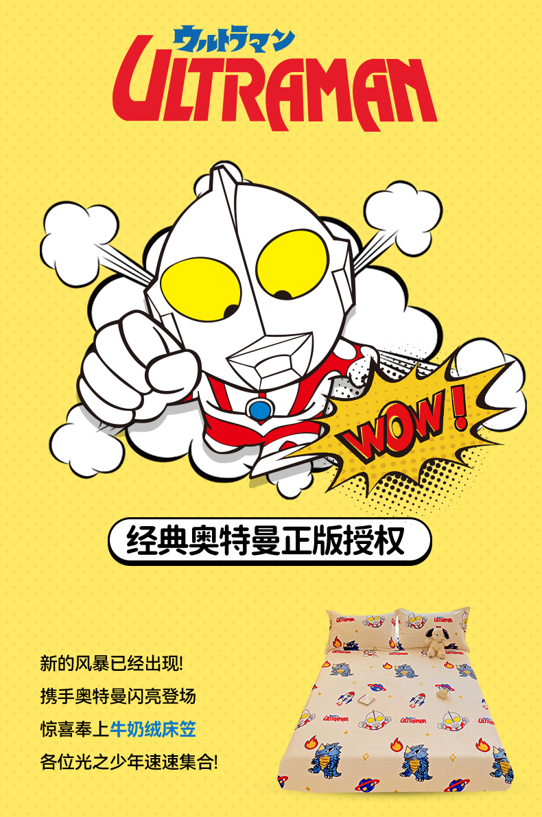 • 91家纺网 家纺一手货源 找家纺 名兮 2024新款经典奥特曼-三丽鸥高克重牛奶绒床笠 奥特超人
