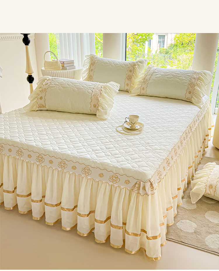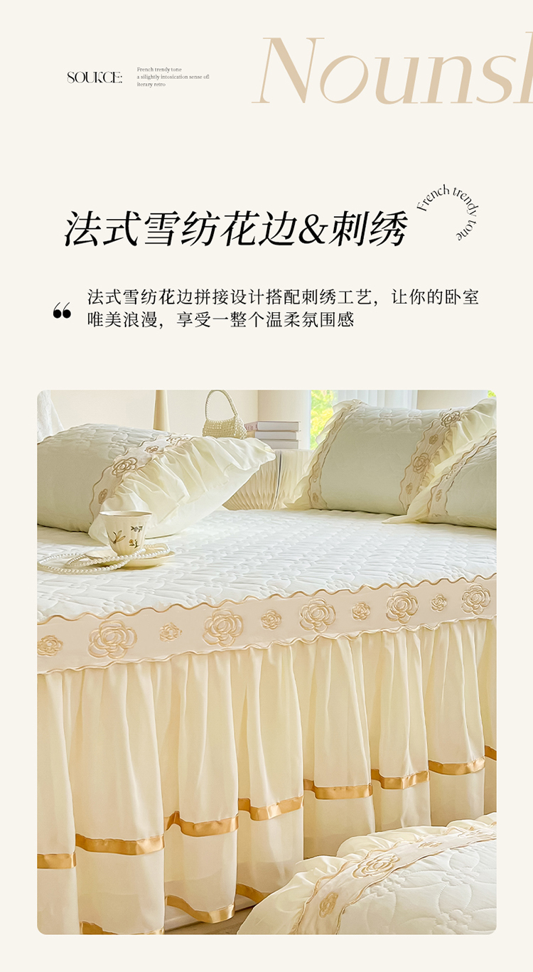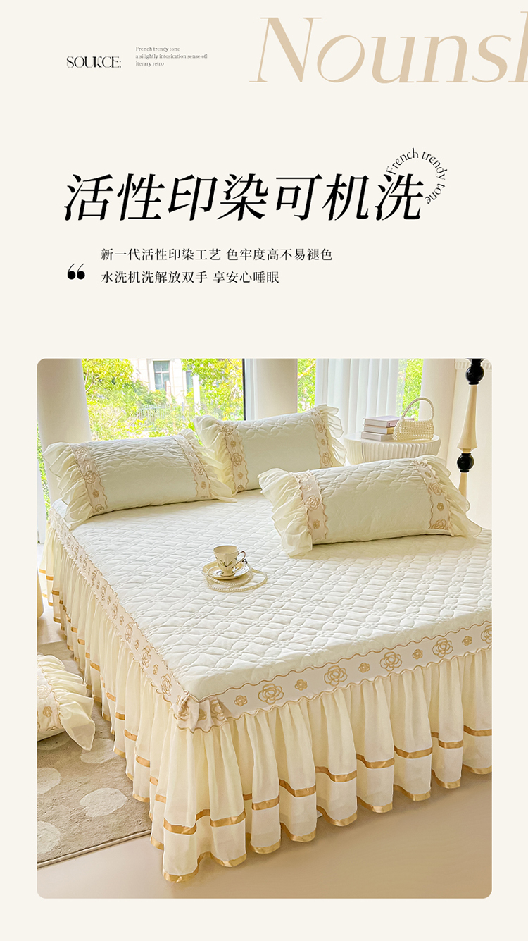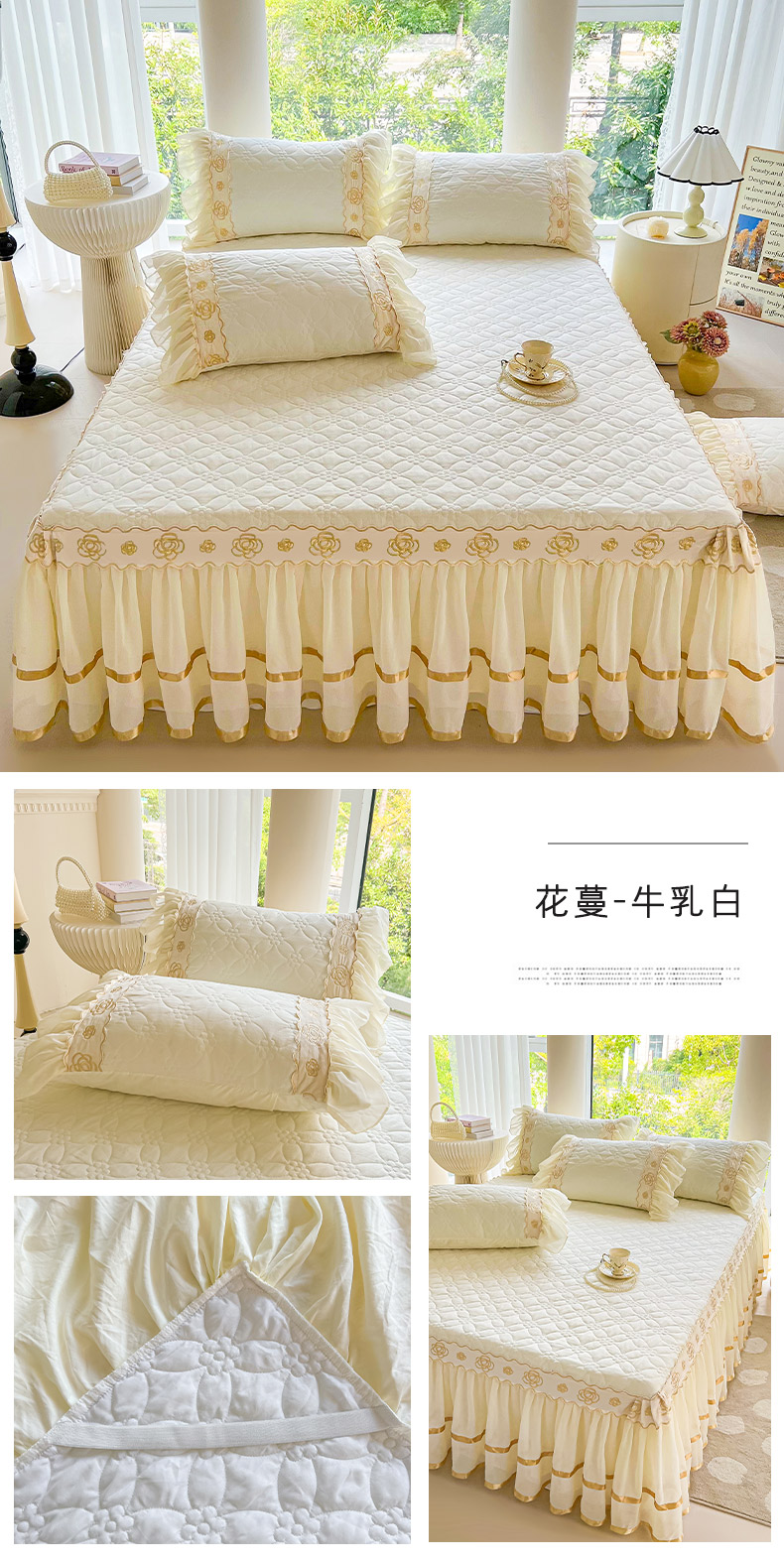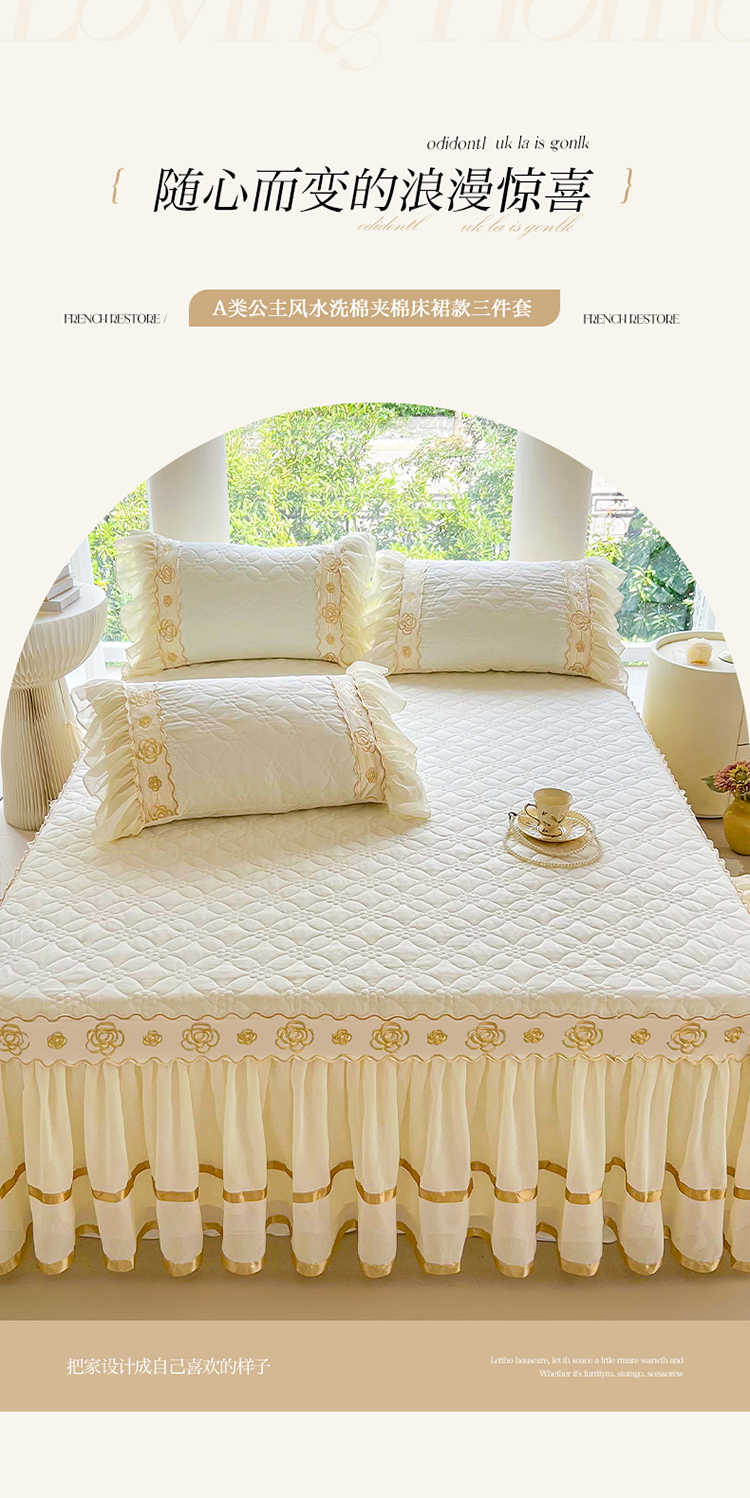 商品名称:罗艺轩 2024新款公主风水洗棉夹棉床裙-花蔓花蔓-牛乳白