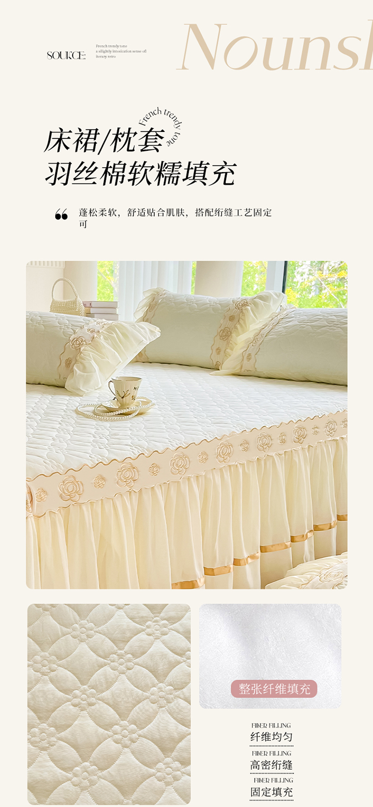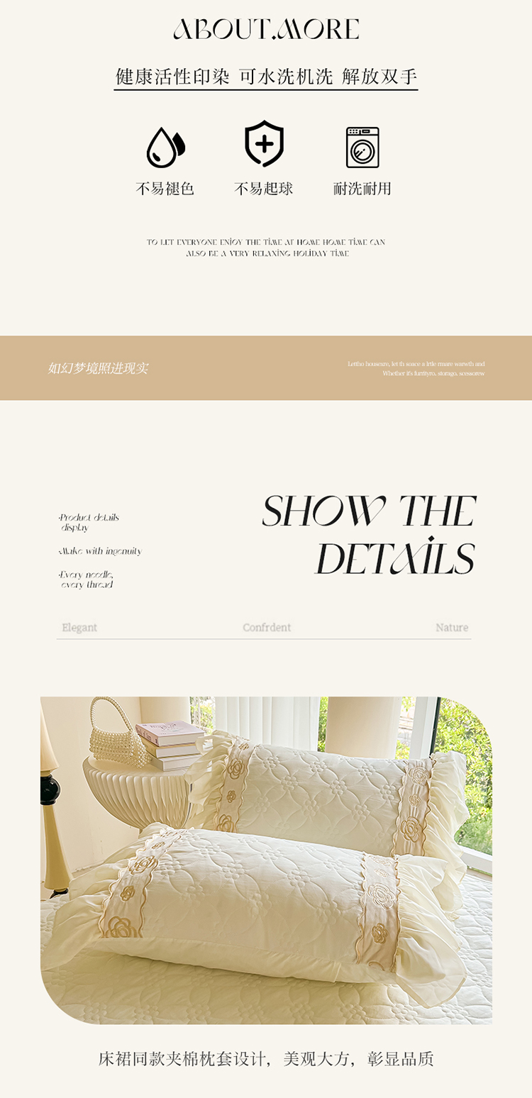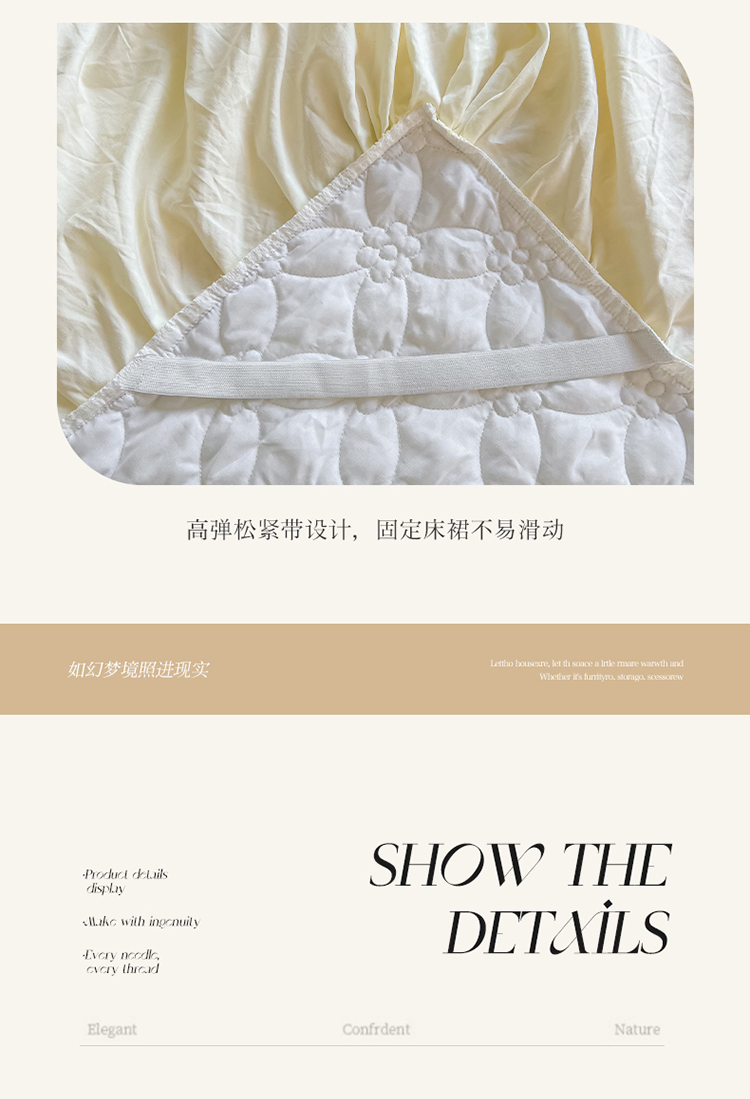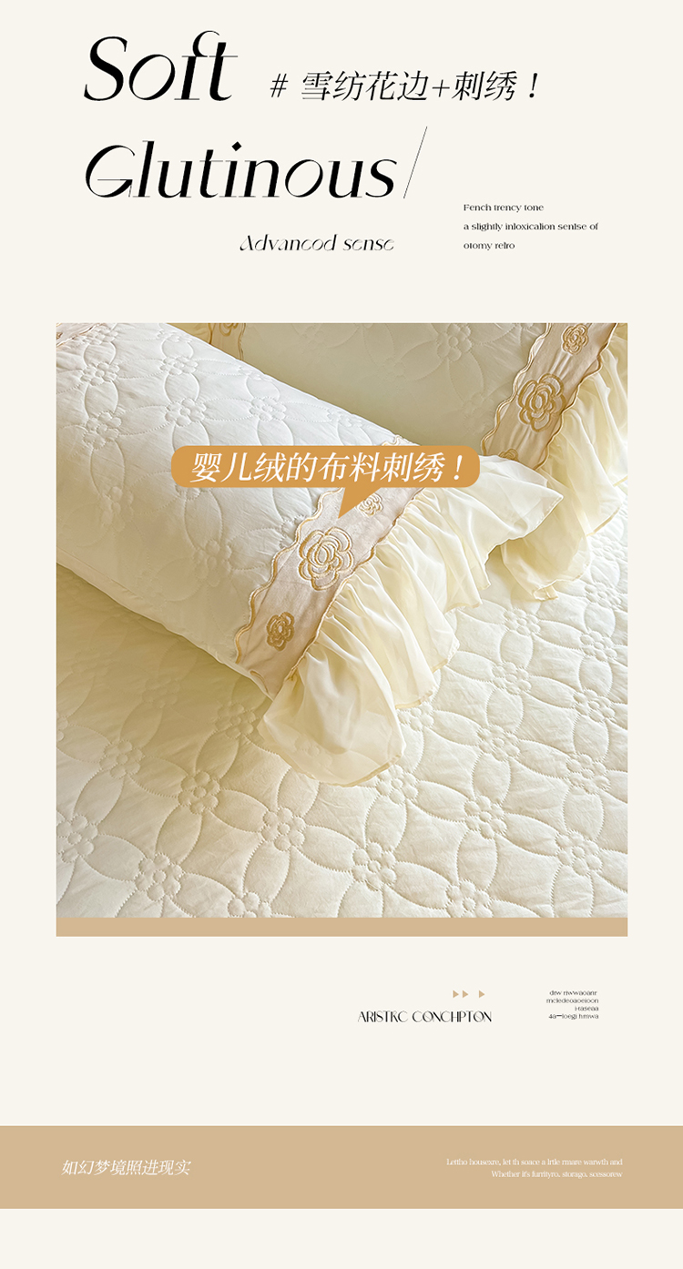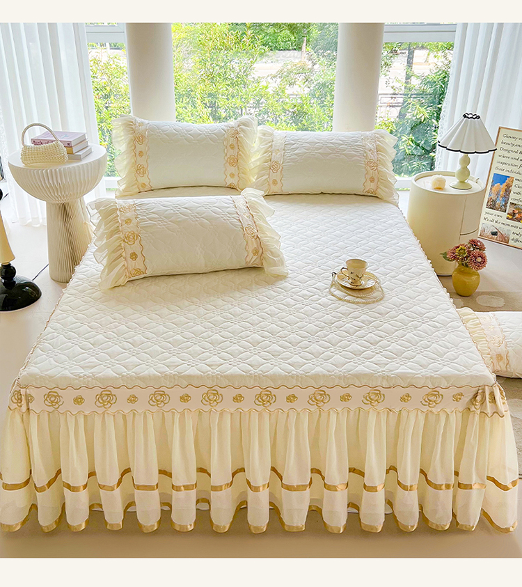 商品名称:罗艺轩 2024新款公主风水洗棉夹棉床裙-花蔓花蔓-牛乳白