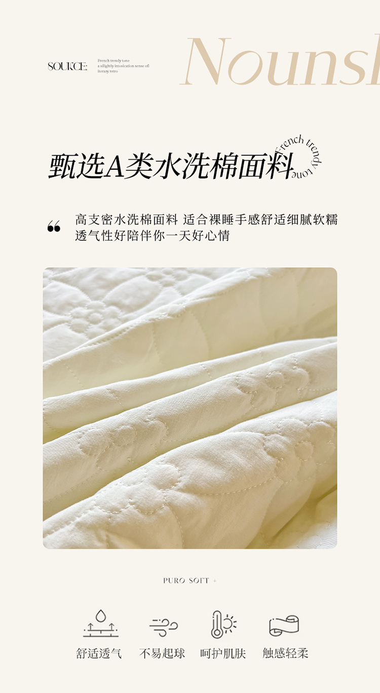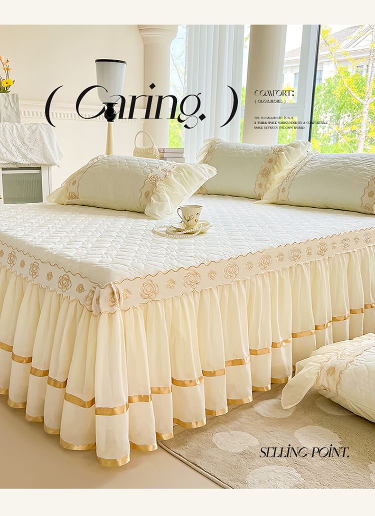 罗艺轩 2024新款公主风水洗棉夹棉床裙-花蔓花蔓-牛乳白