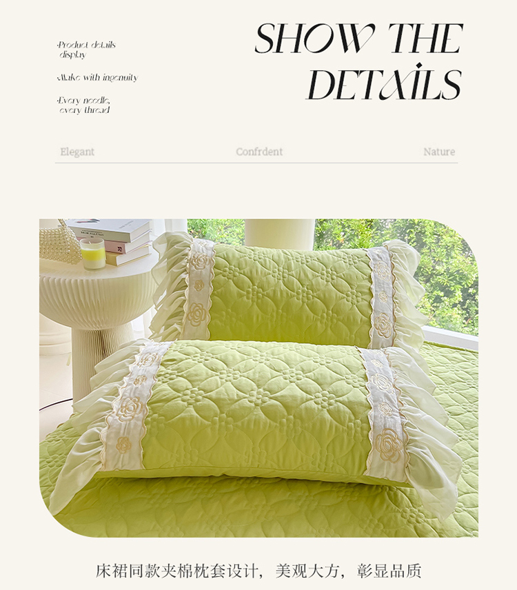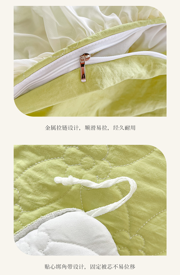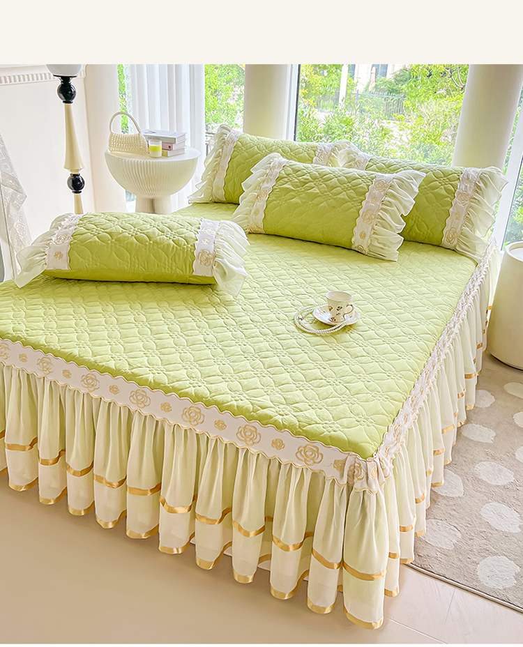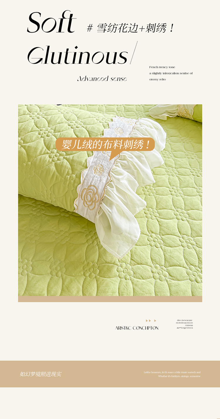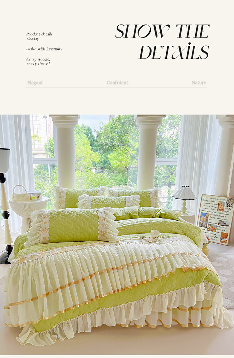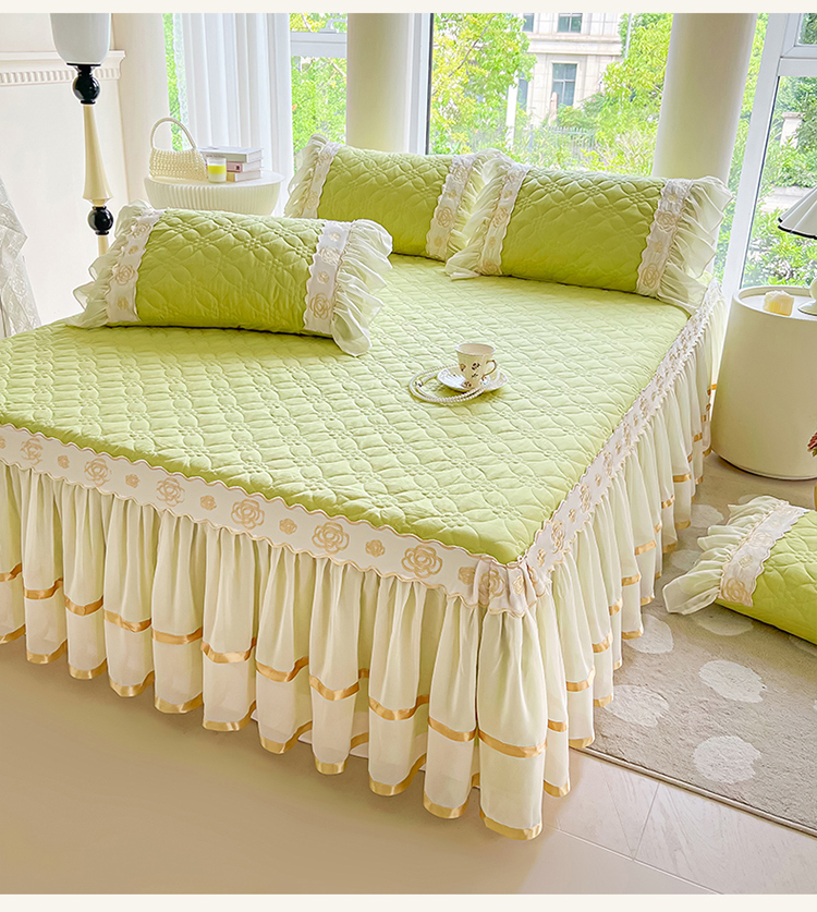 当前位置: 91家纺网 > 商品网购 > 床品套件 > 四件套 > 其它四件套 > 罗艺轩 2024新款公主风水洗棉夹棉床裙款四件套-花蔓花蔓-元气绿
