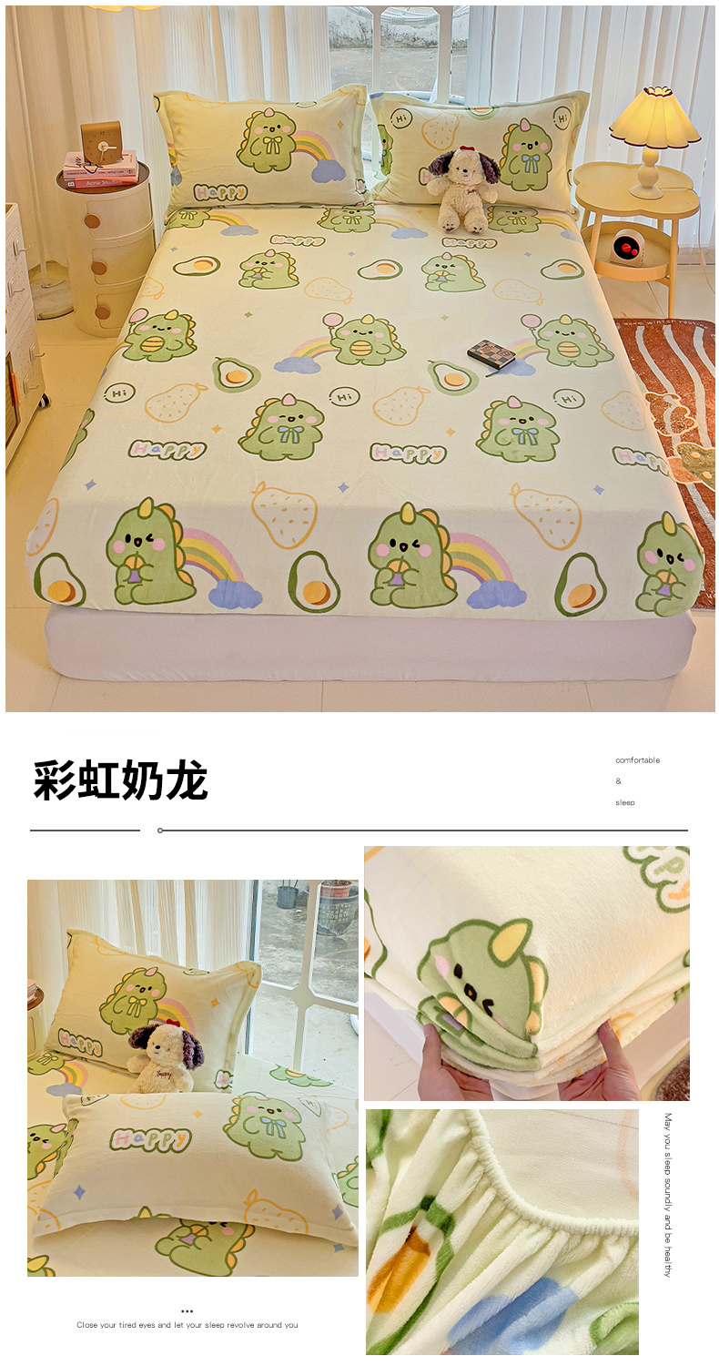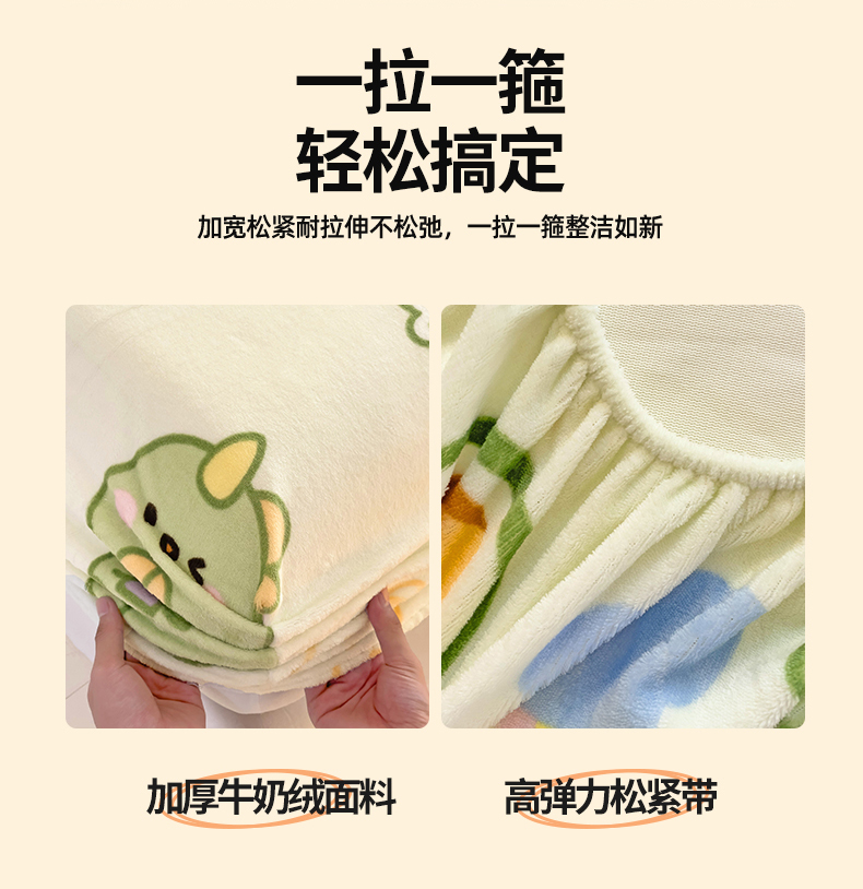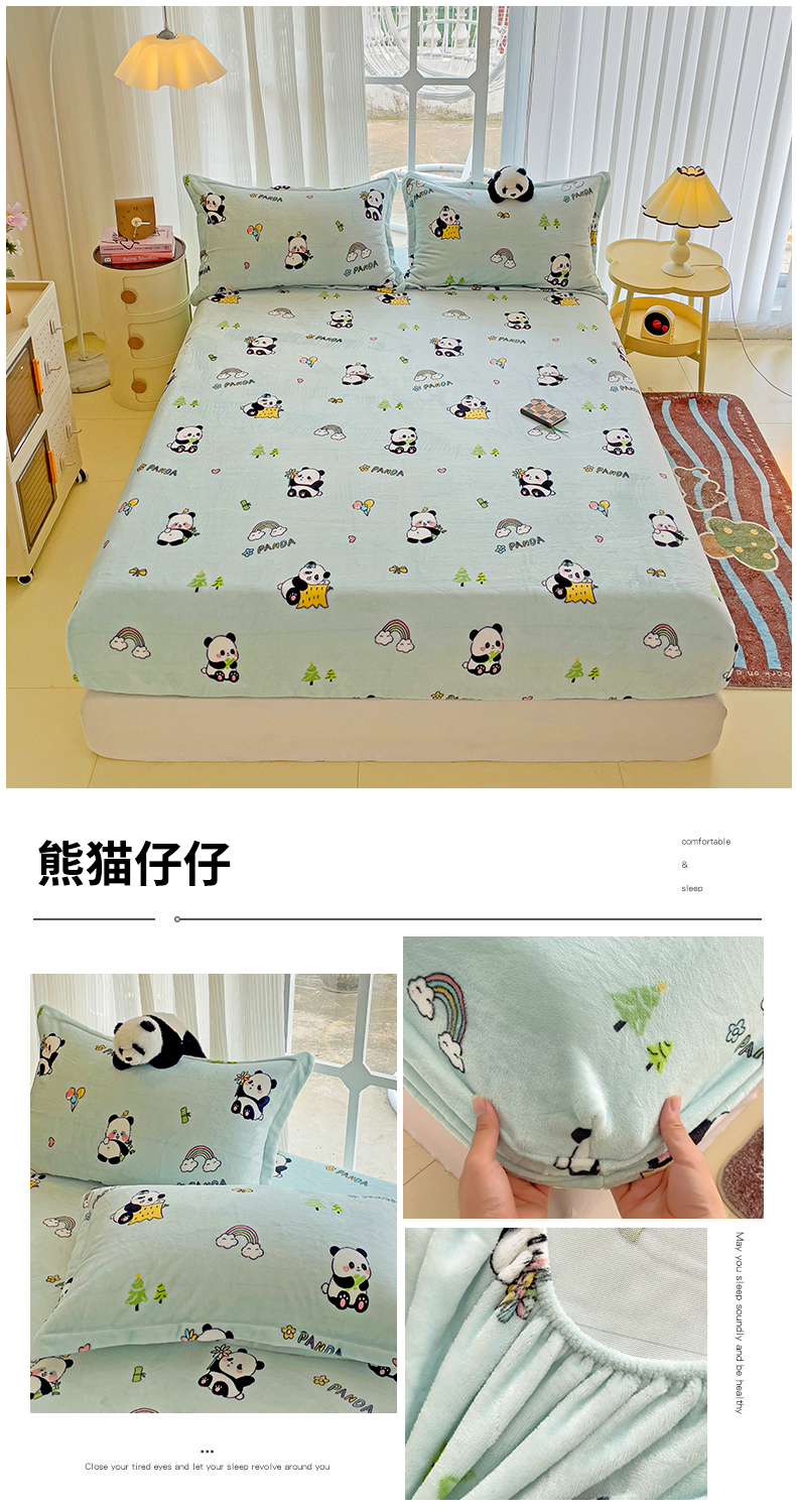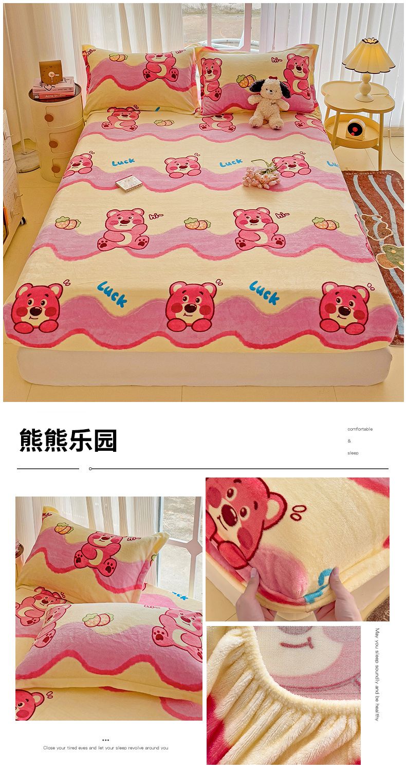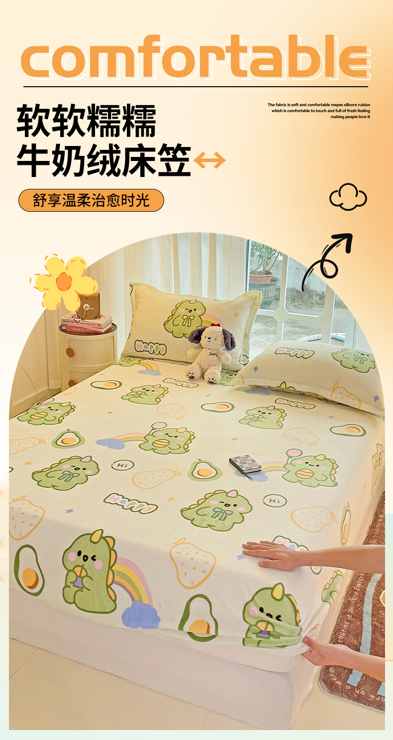 (总)名兮 2024卡通时尚风高克重牛奶绒床笠
