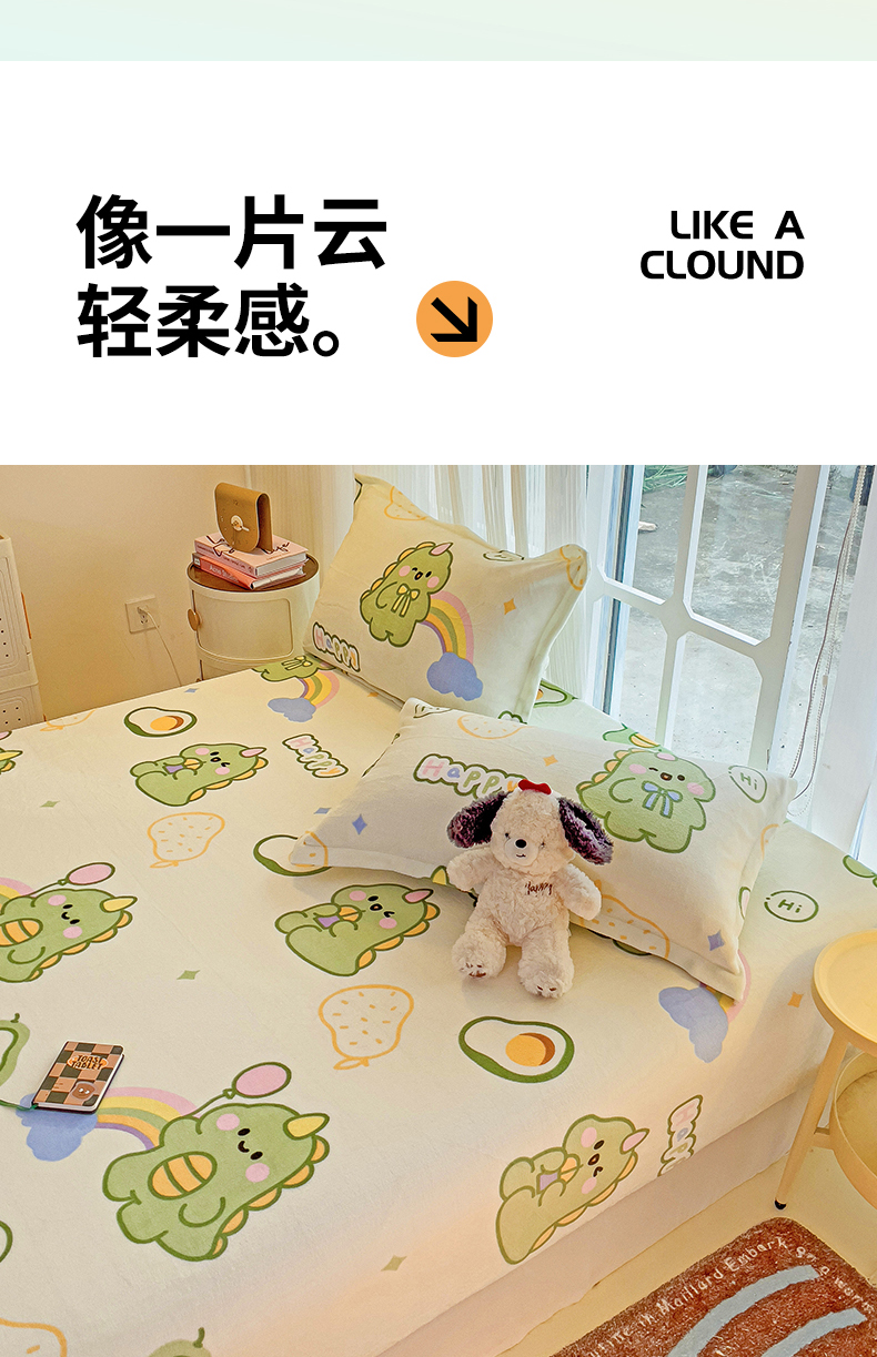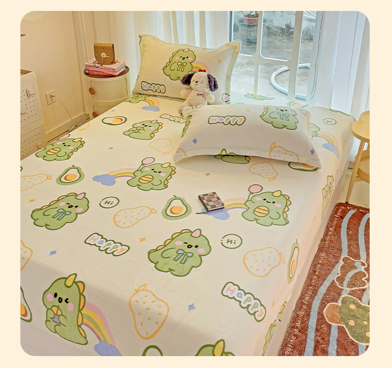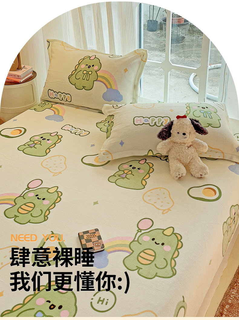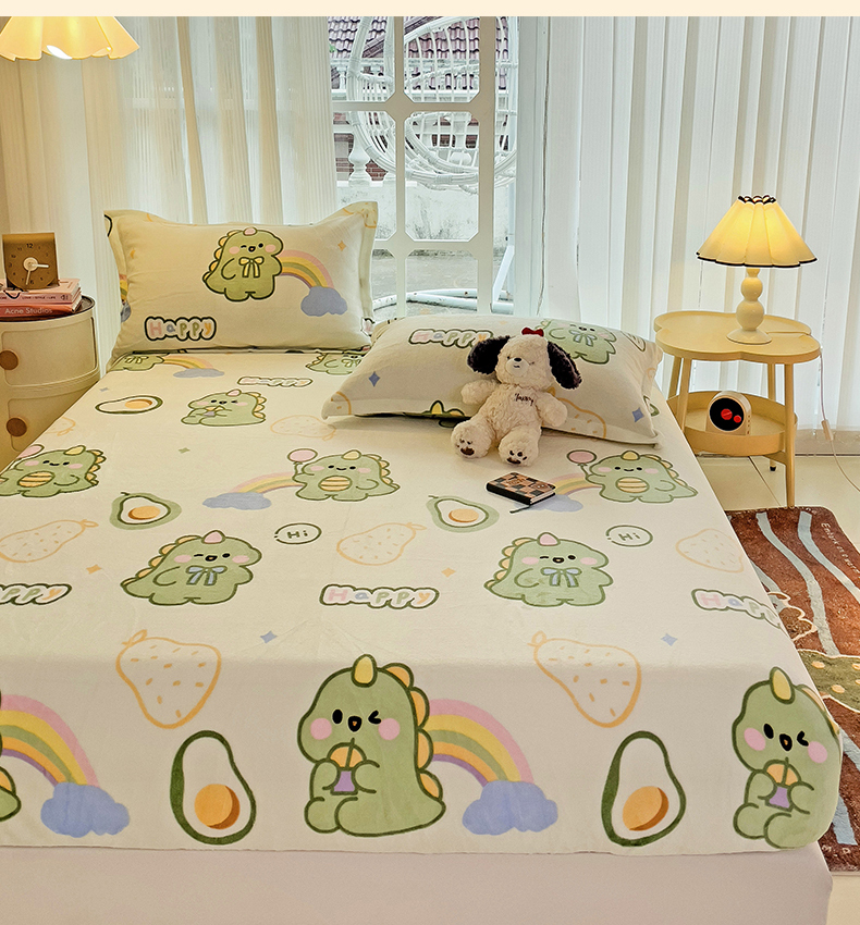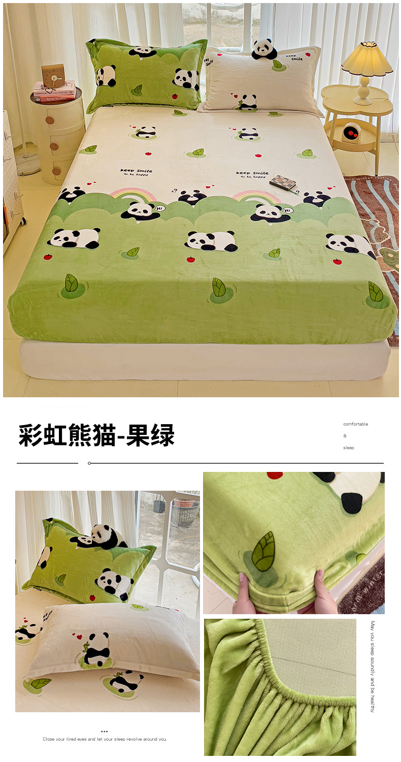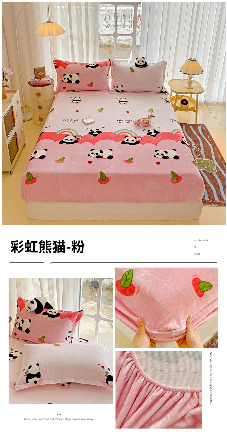 (总)名兮 2024卡通时尚风高克重牛奶绒床笠