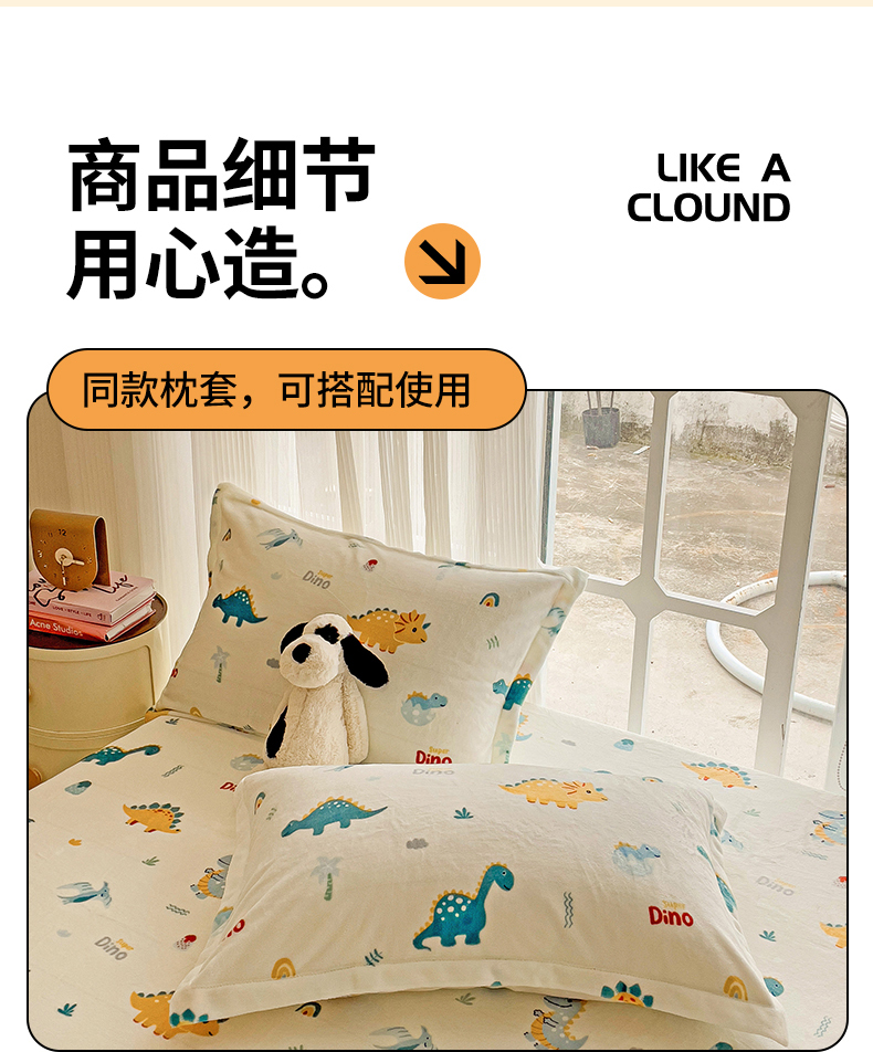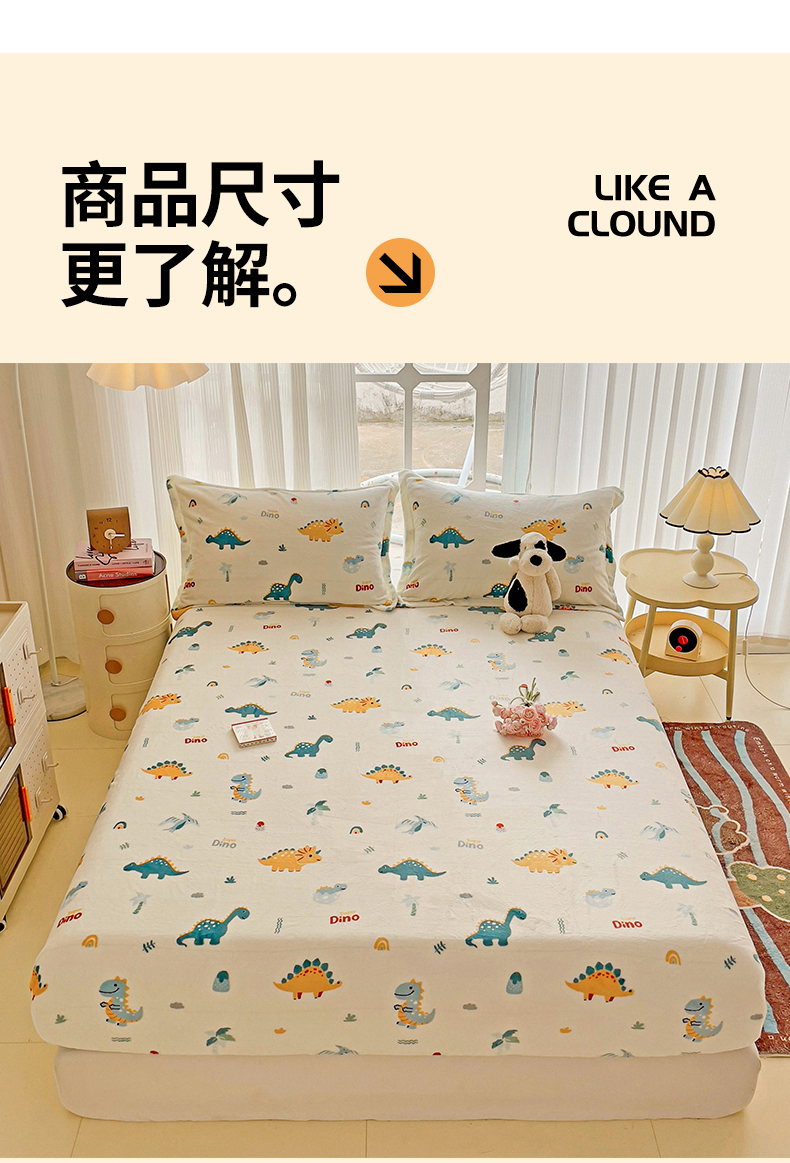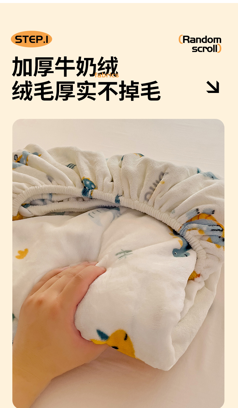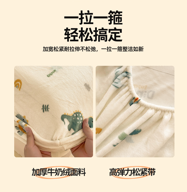 • 91家纺网 家纺一手货源 找家纺 名兮 2024卡通时尚风高克重牛奶绒床笠 恐龙多多