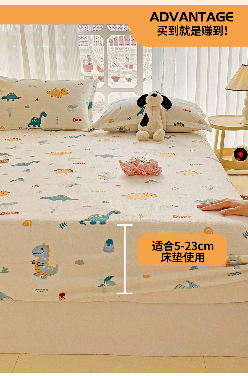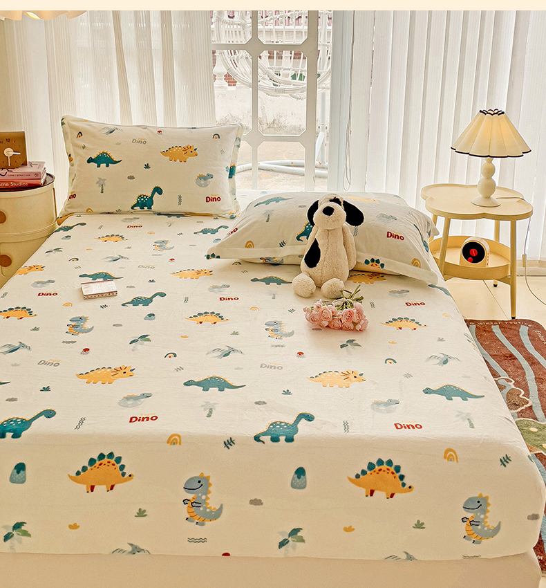 名兮 2024卡通时尚风高克重牛奶绒床笠 恐龙多多