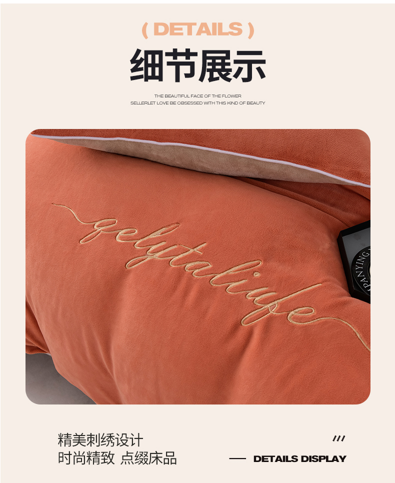 商品名称:氧家 2024新款宽边撞色对角牛奶绒绣花四件套--典雅 典雅-橙橘色