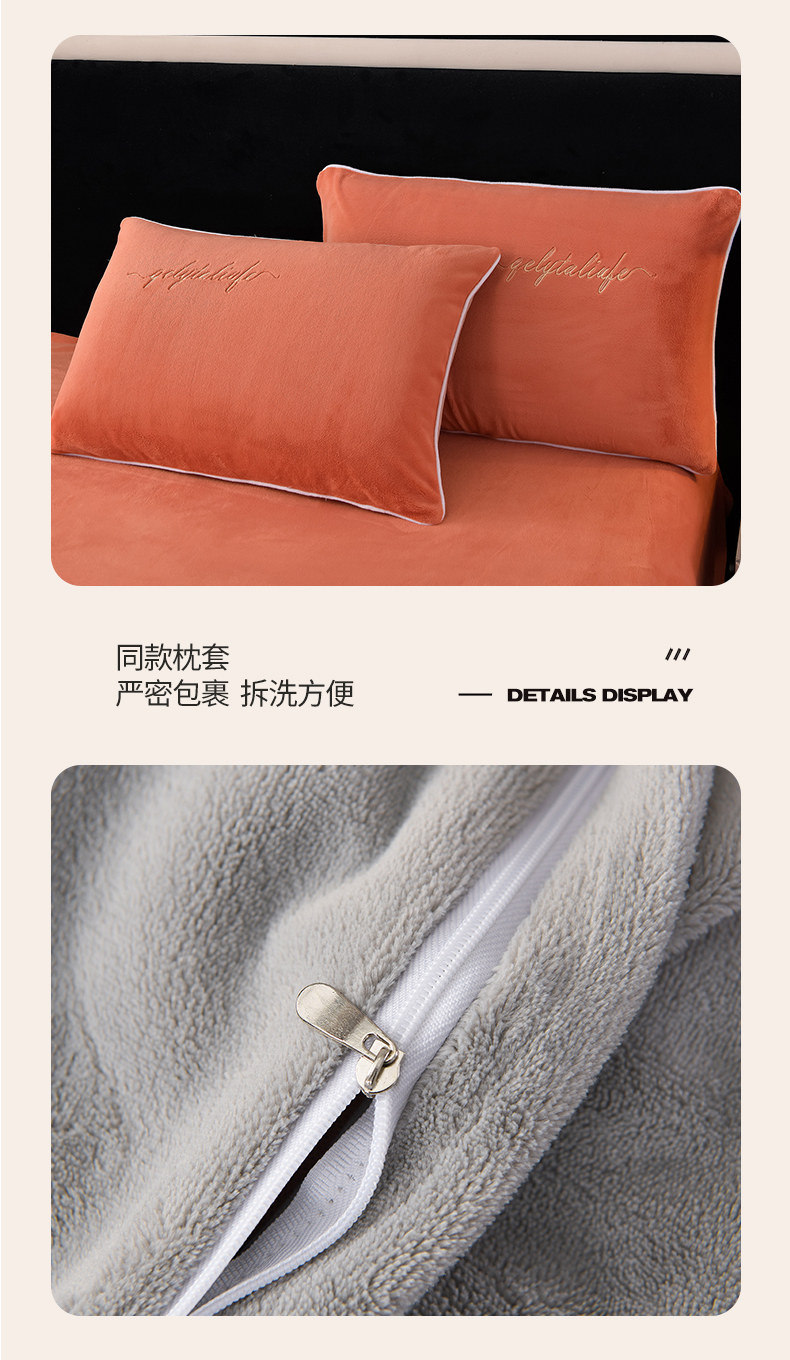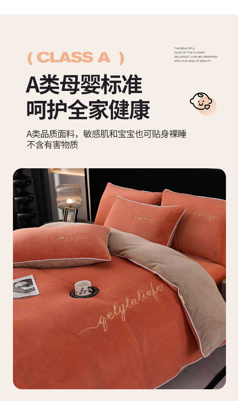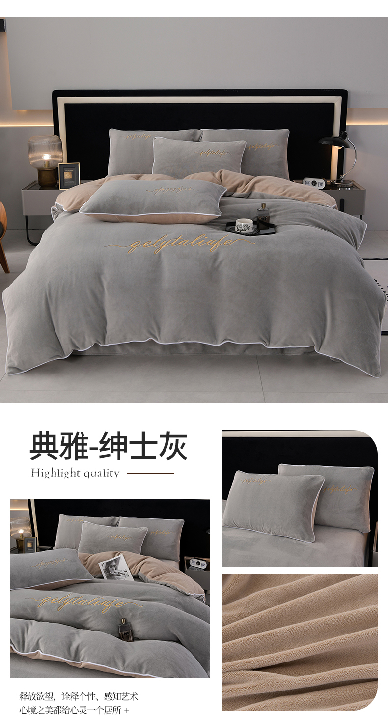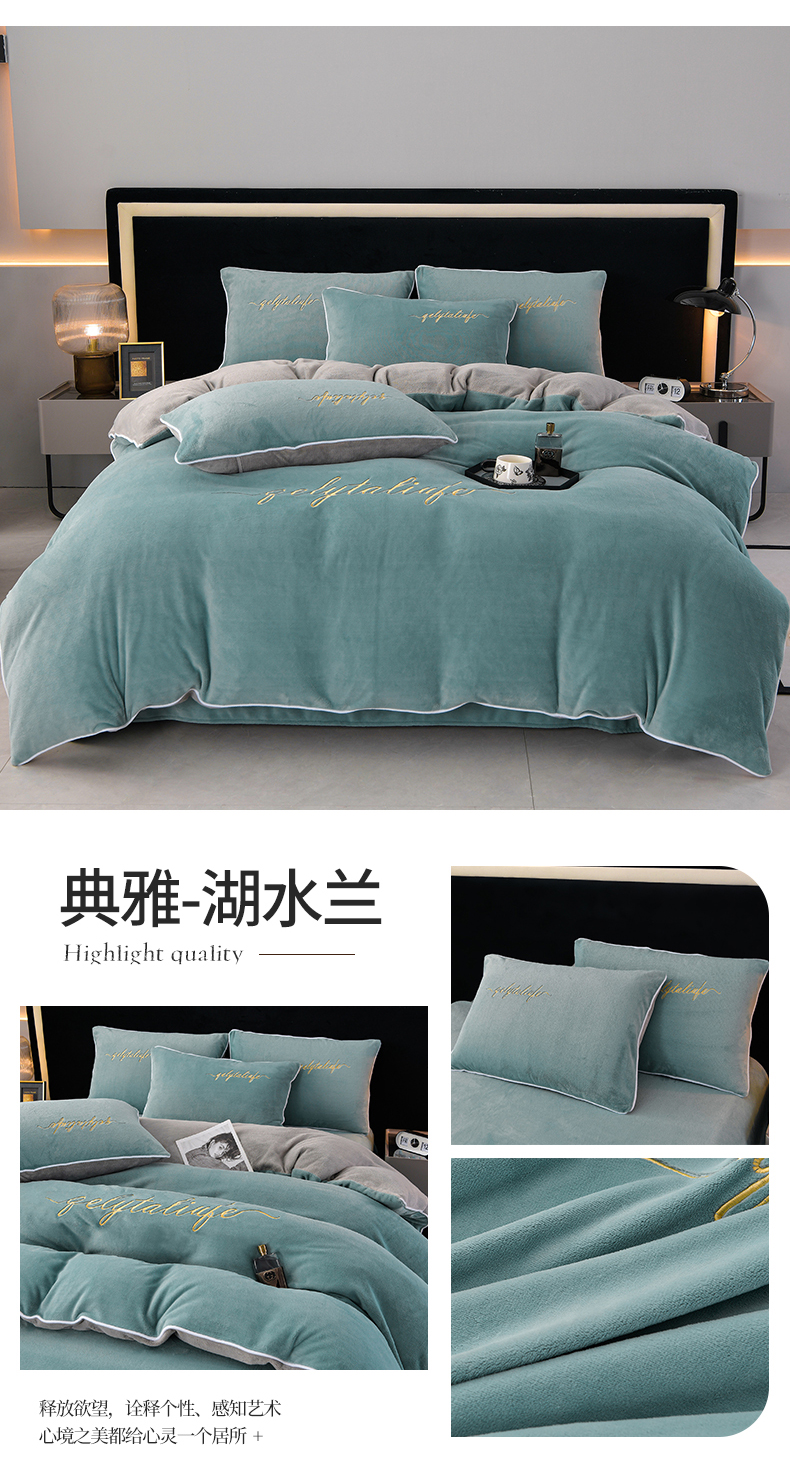 (总)氧家 2025新款高克重牛奶绒拼角刺绣床单床笠床盖款四件套-经典,经典-蓝,经典-橙,经典-豆沙,经典-灰,经典-绿,经典-奶白,经典-紫,经典-棕