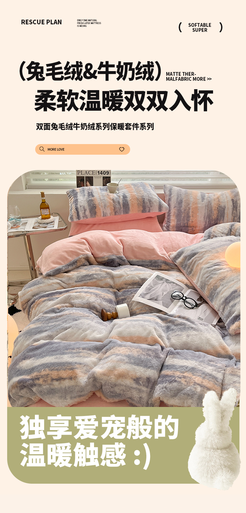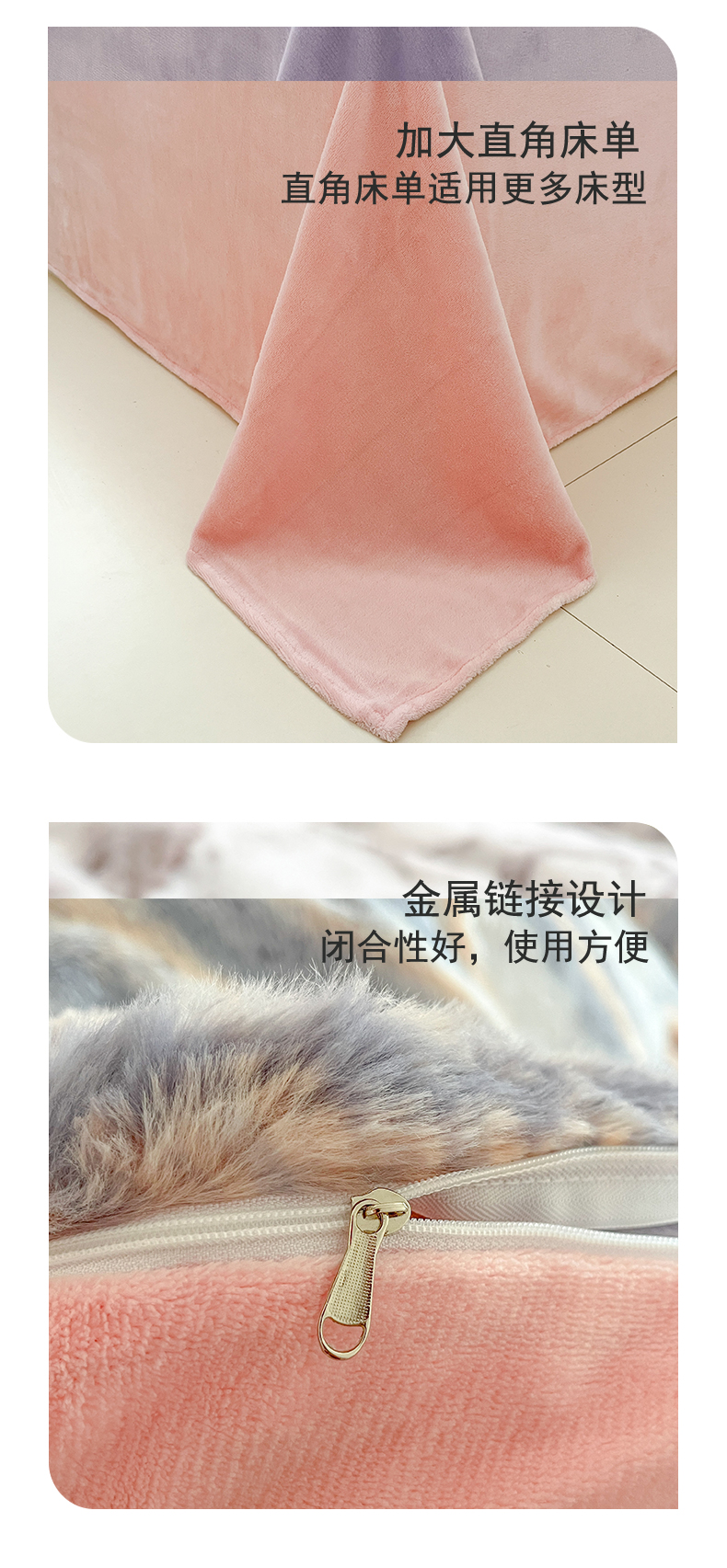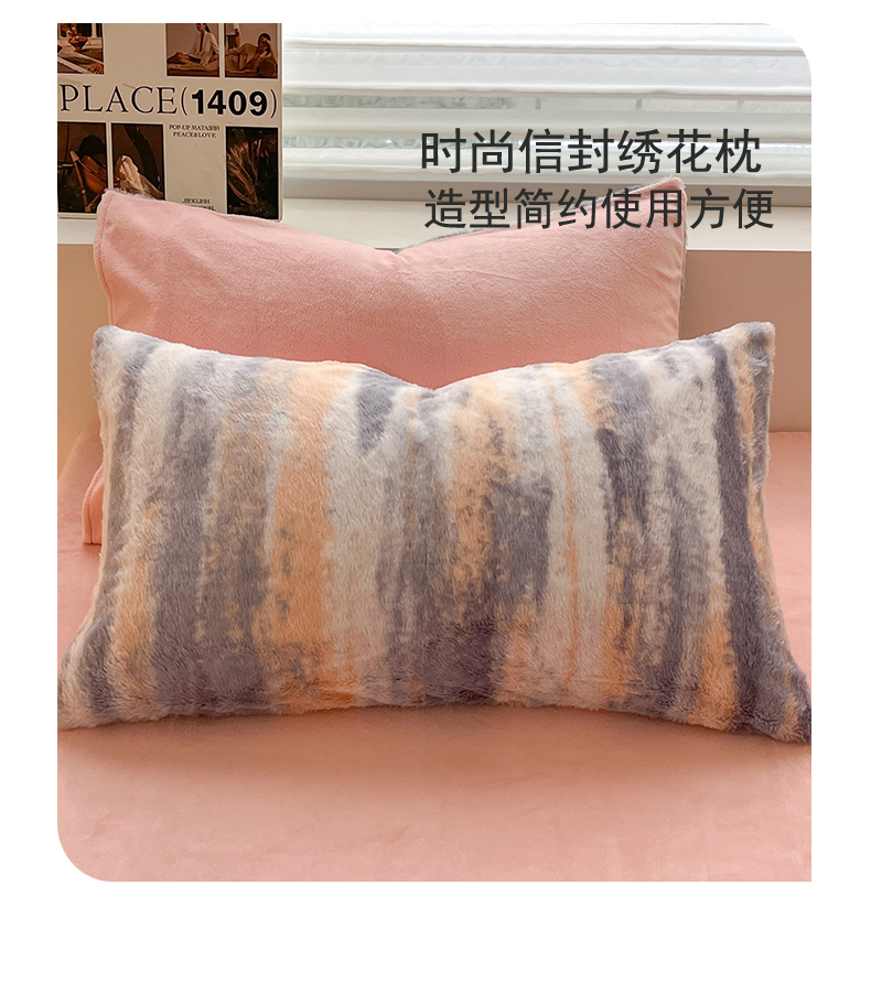 金爱家 2024新款立体牛奶绒兔毛绒印花四件套 兔毛印花-竖条粉