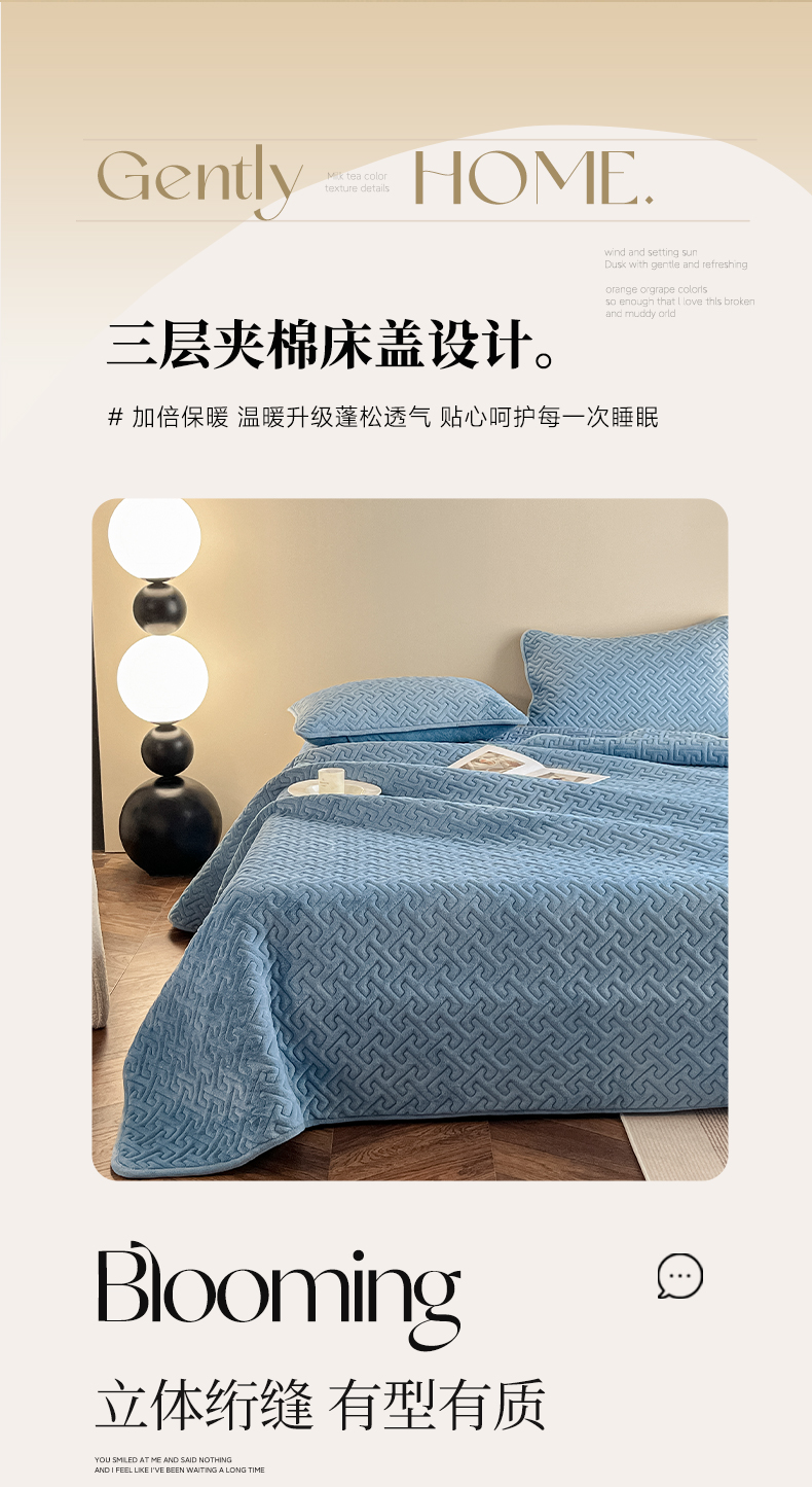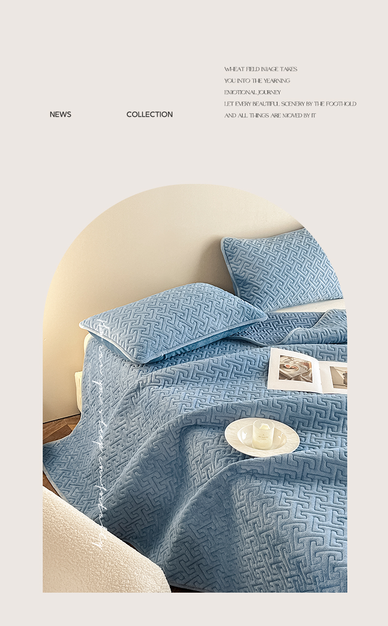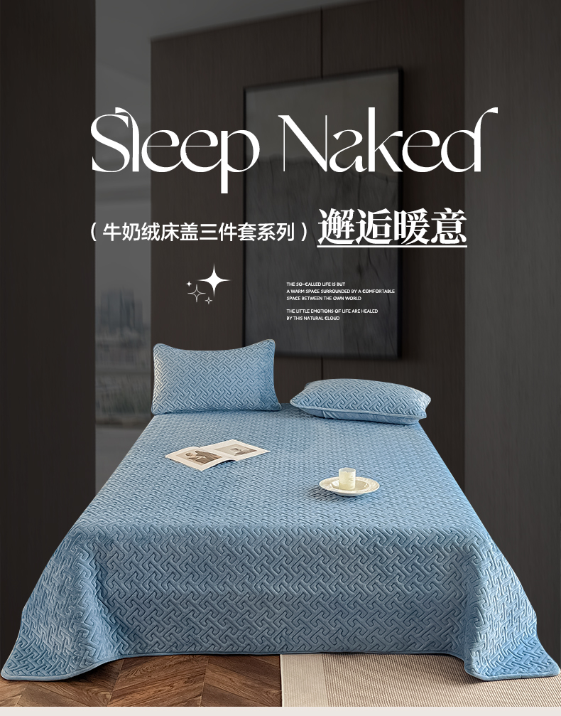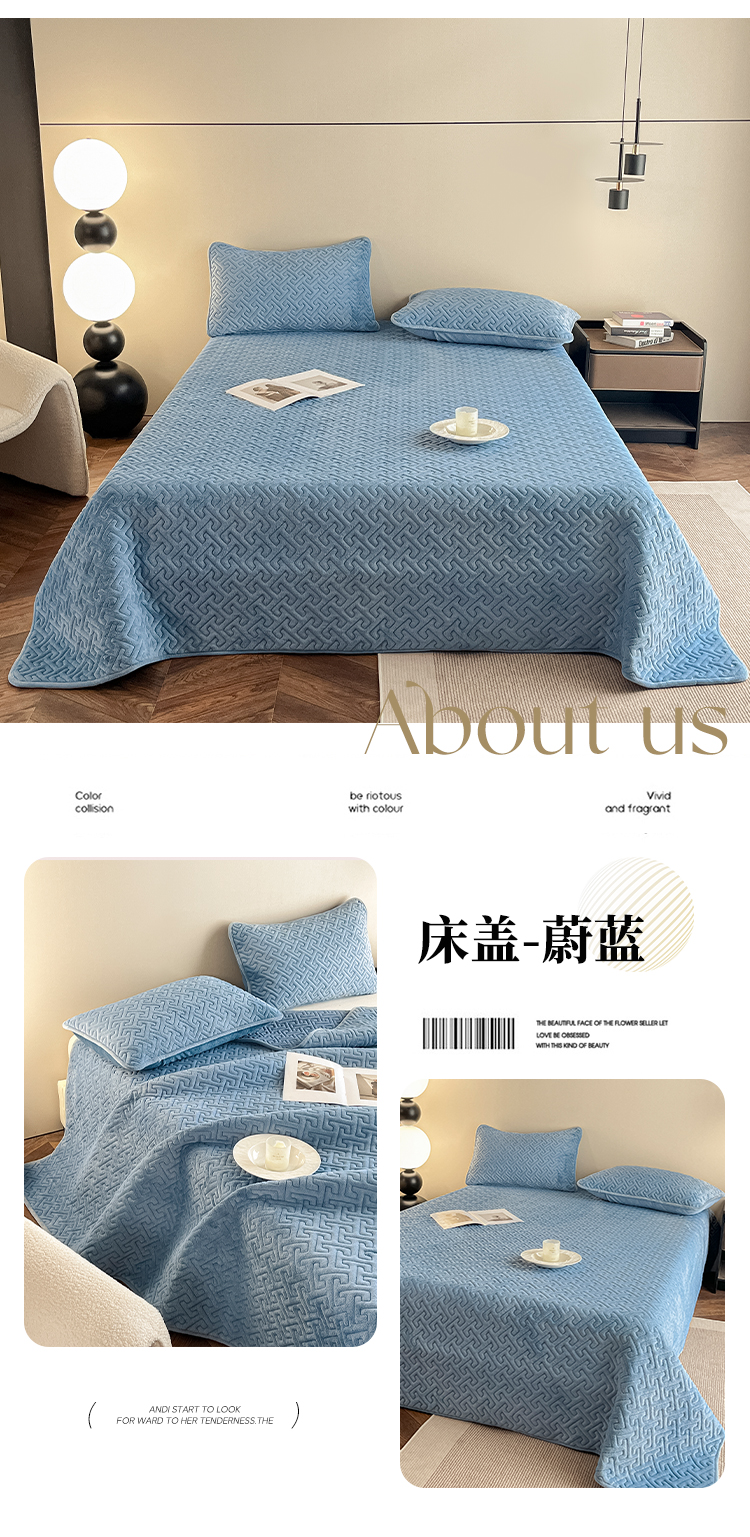 欧邦 新款纯色牛奶绒床盖三件套-初见 初见-蔚蓝
