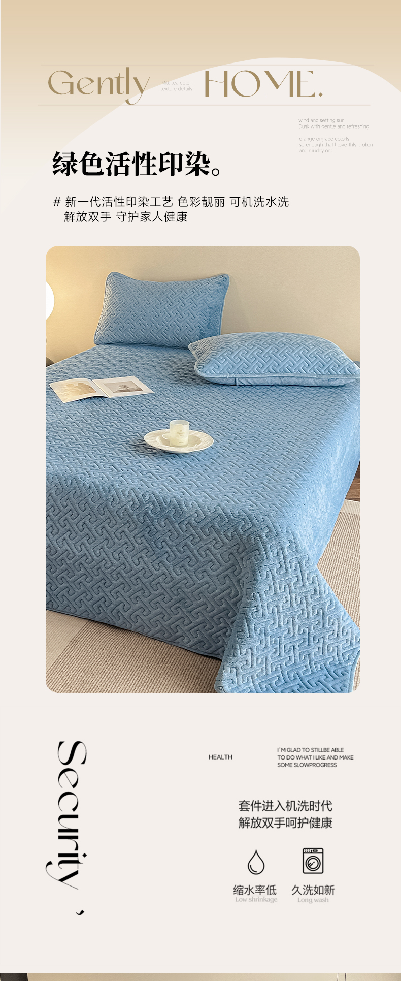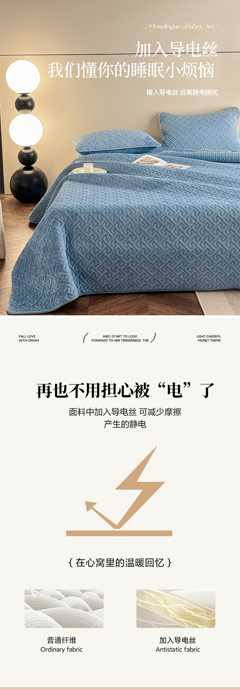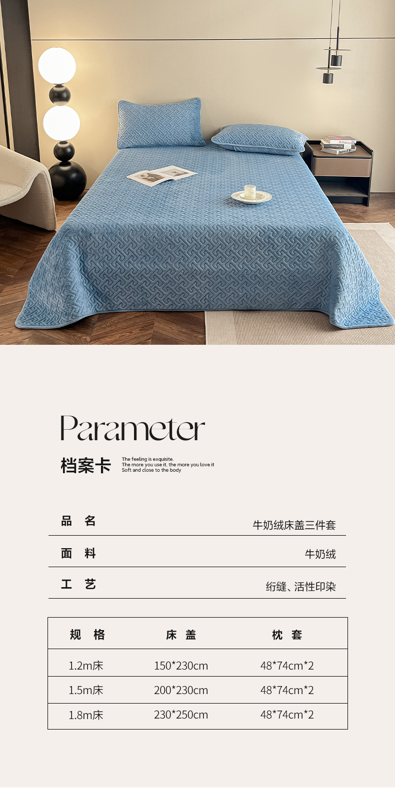 欧邦 新款纯色牛奶绒床盖三件套-初见 初见-蔚蓝