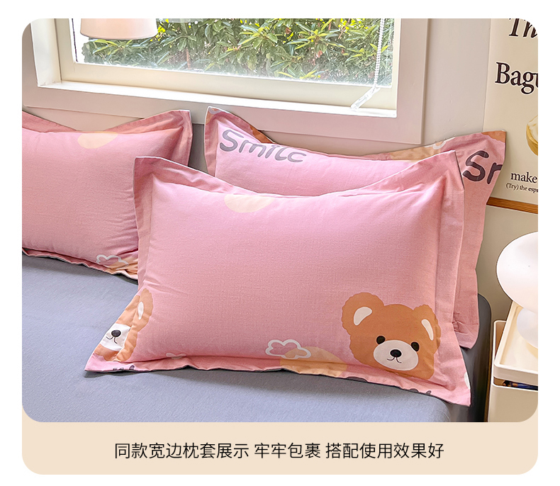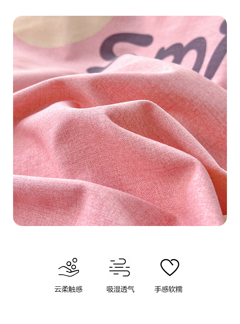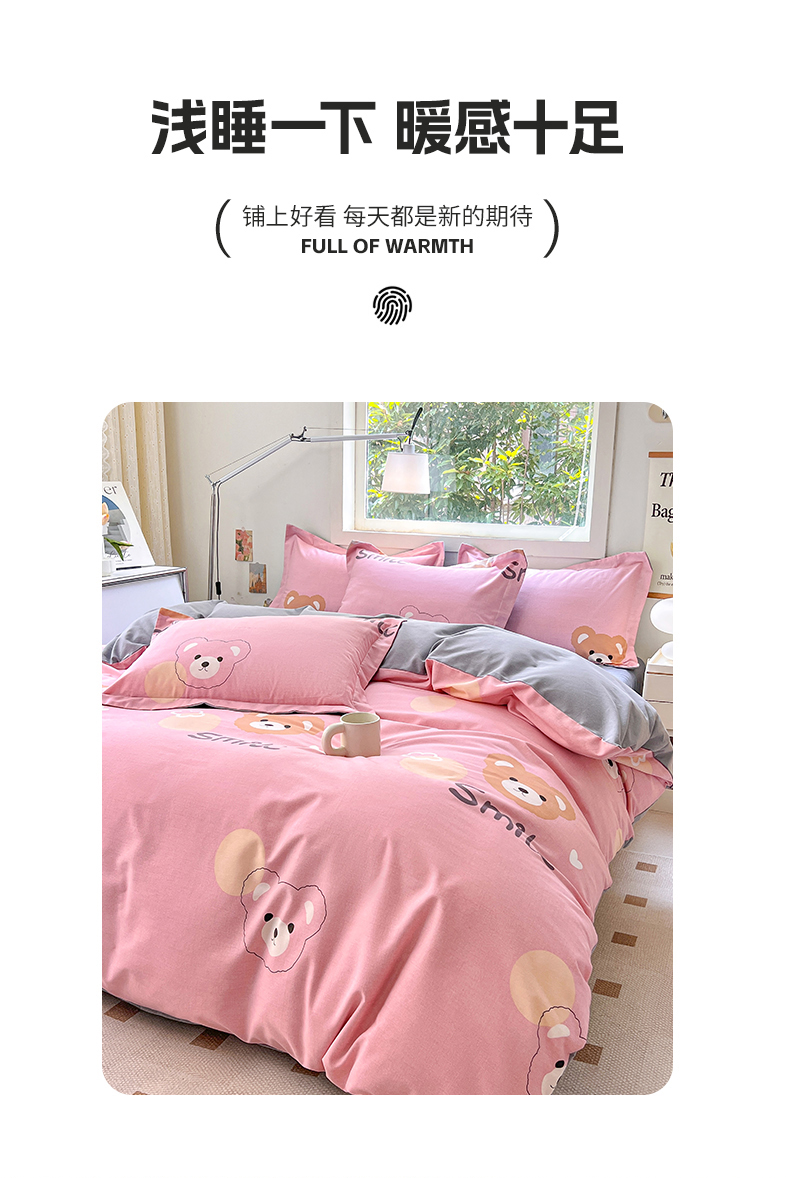 商品名称:品乐家纺 2024新款全棉生态棉印花磨毛四件套 微笑熊-粉