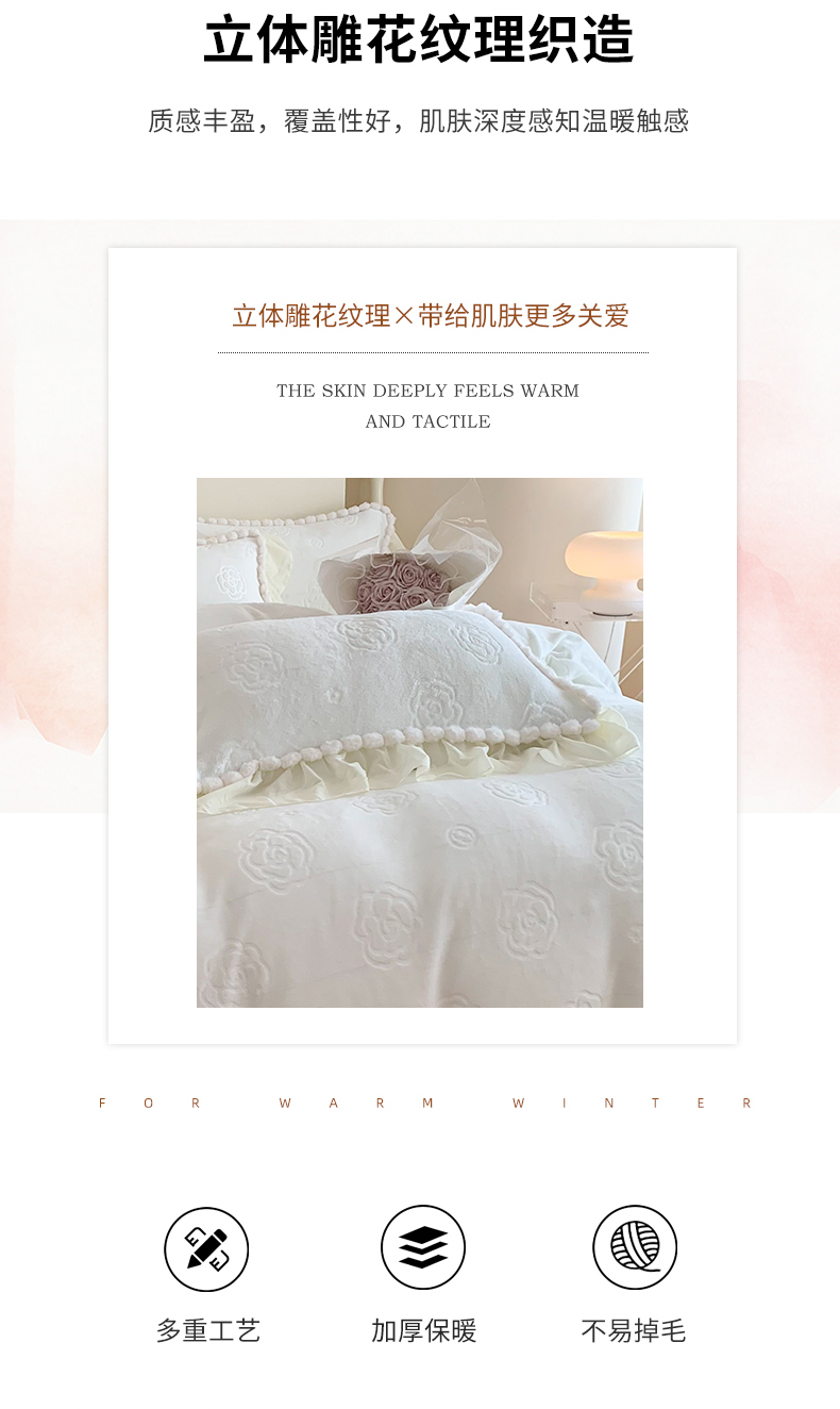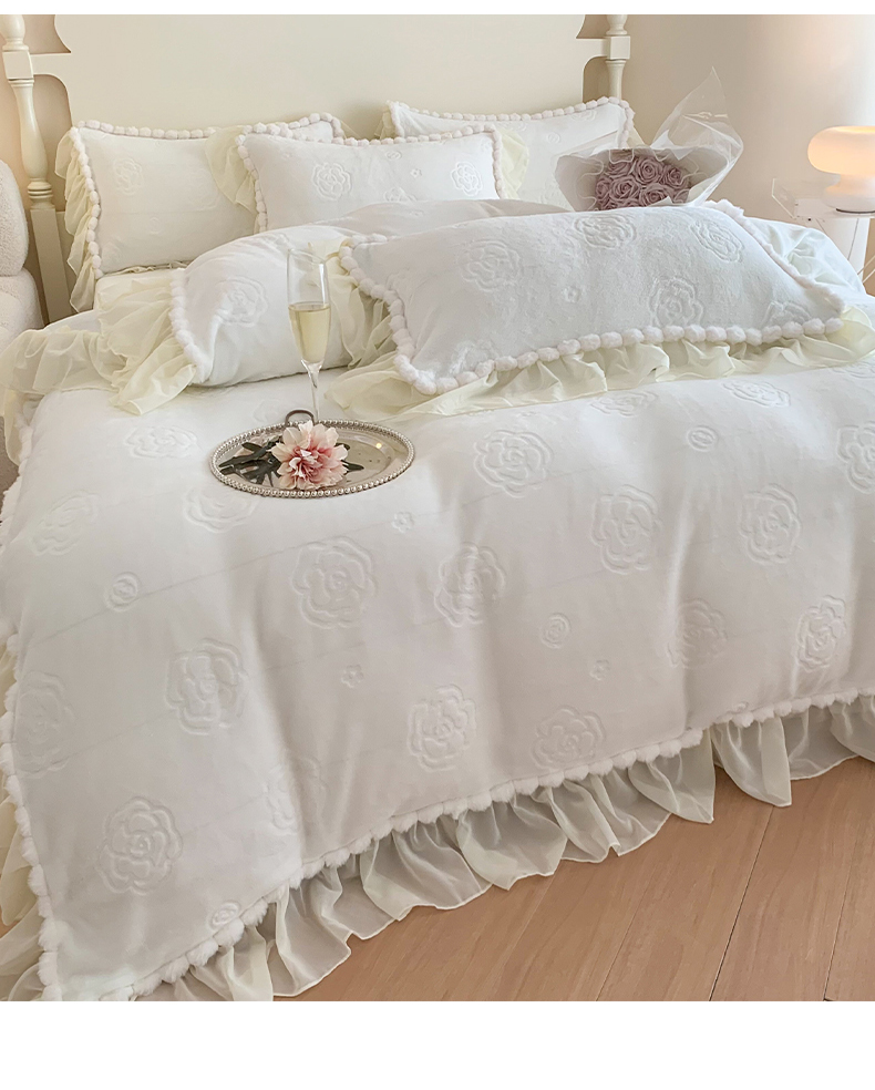 商品名称:富盛家纺 2024新款牛奶绒雕花四件套韩版公主风四件套-依恋 依恋-白