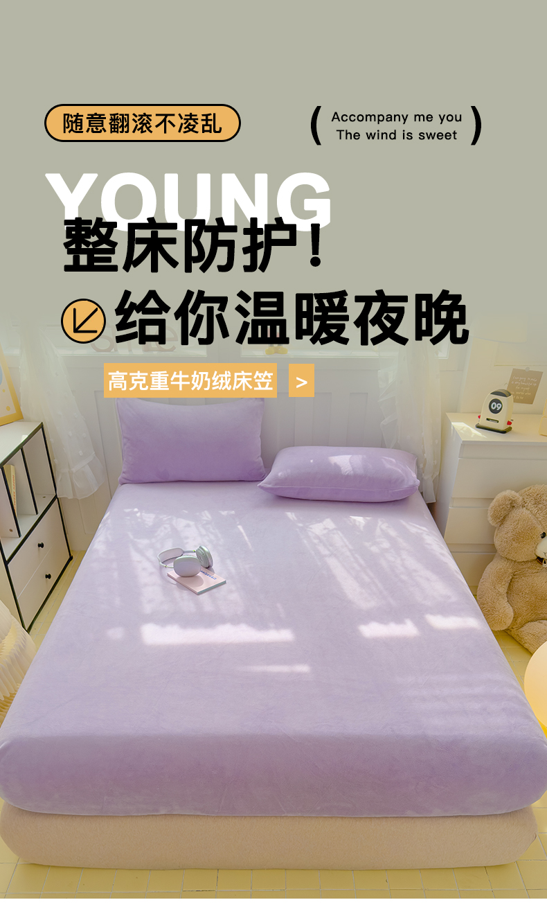 • 91家纺网 家纺一手货源 找家纺 2024新款高克重牛奶绒单床笠系列 雾蓝床笠