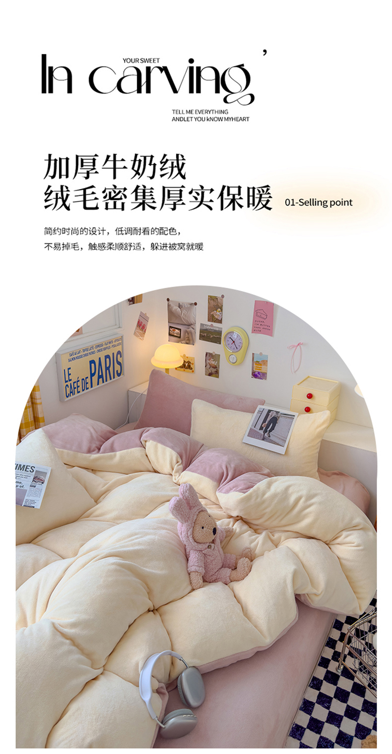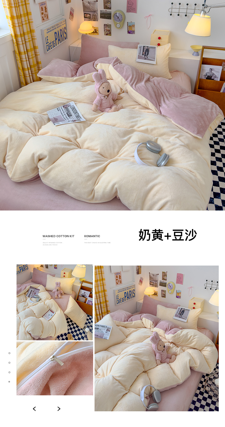 当前位置: 91家纺网 > 商品网购 > 床品套件 > 四件套 > 牛奶绒四件套 > 2024新款高克重亲肤牛奶绒四件套-场景二 米黄豆沙