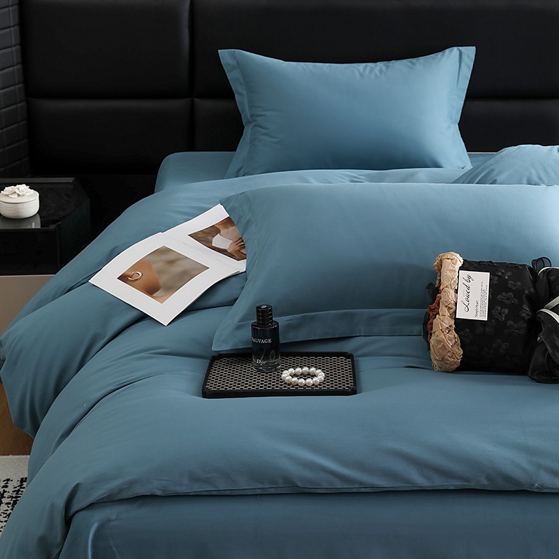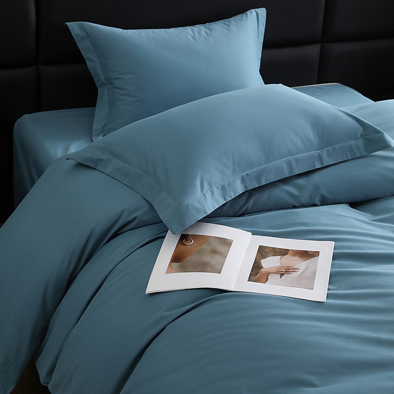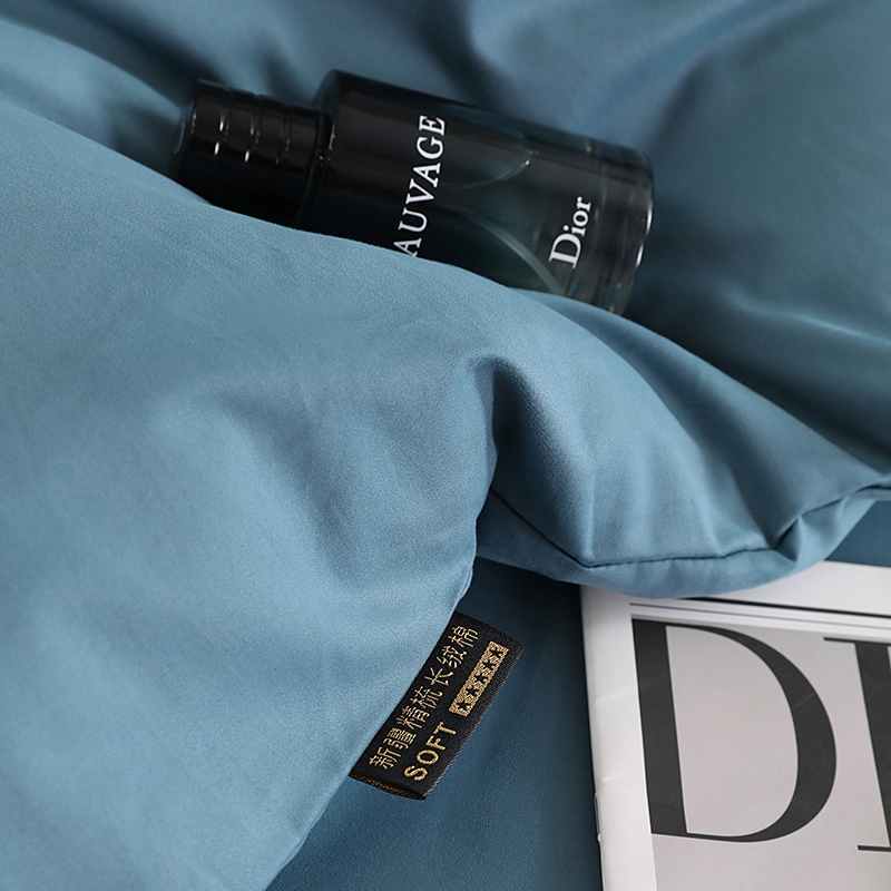 商品名称:莱阁亿 2025秋冬新款高支高密全棉纯棉磨毛双拼纯色单被套被套单件 湖兰