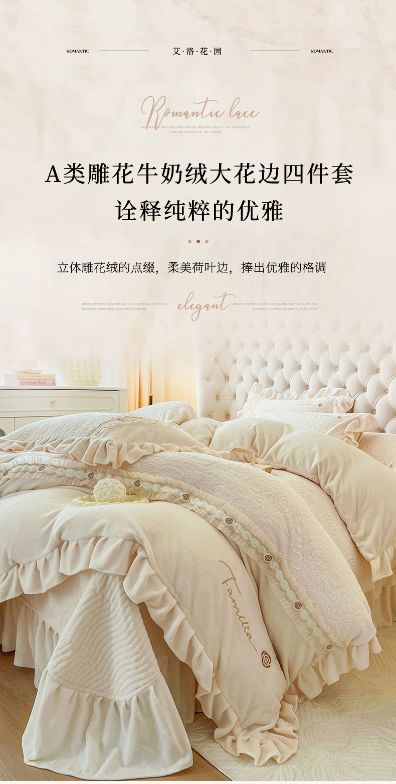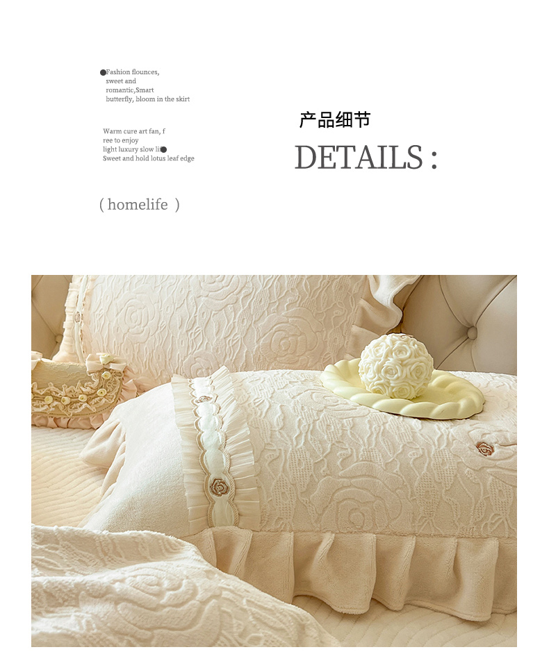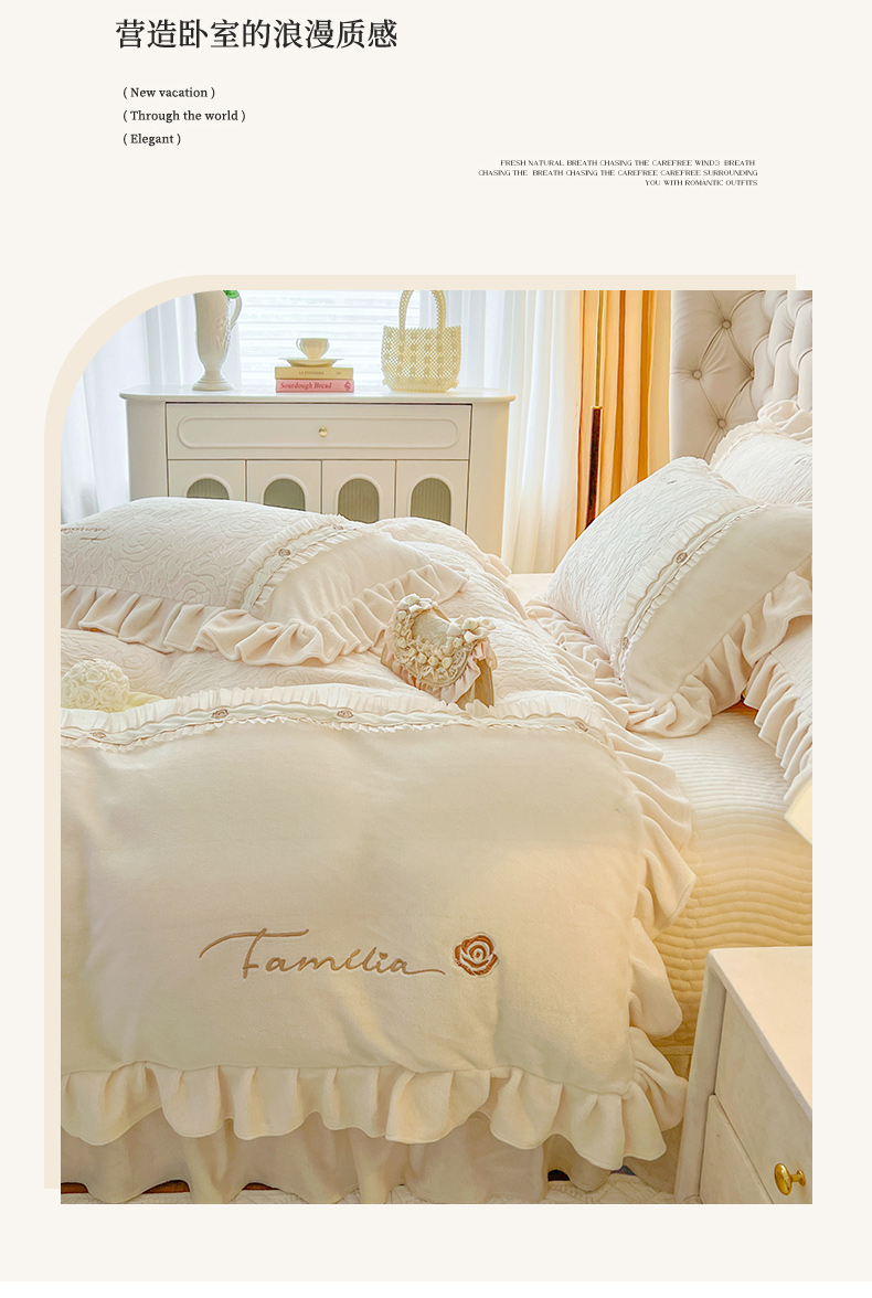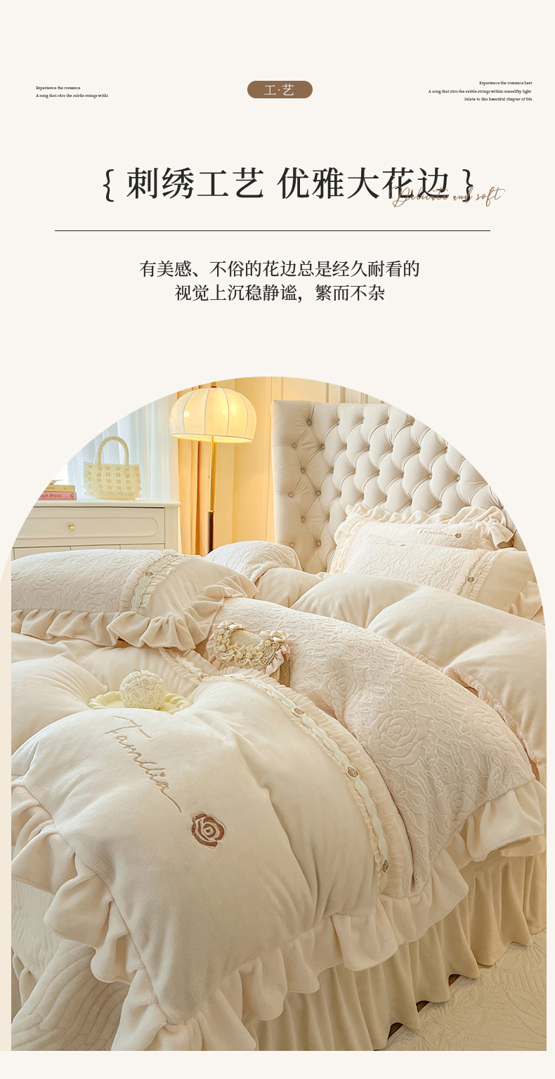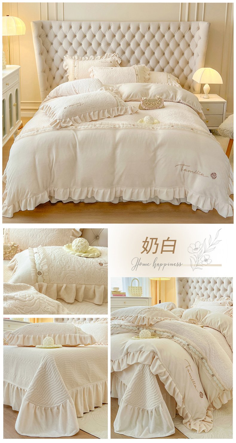 (总)乐朵家居 2025新款 伊莉莎 牛奶绒夹棉床盖四件套,奶白,粉玉