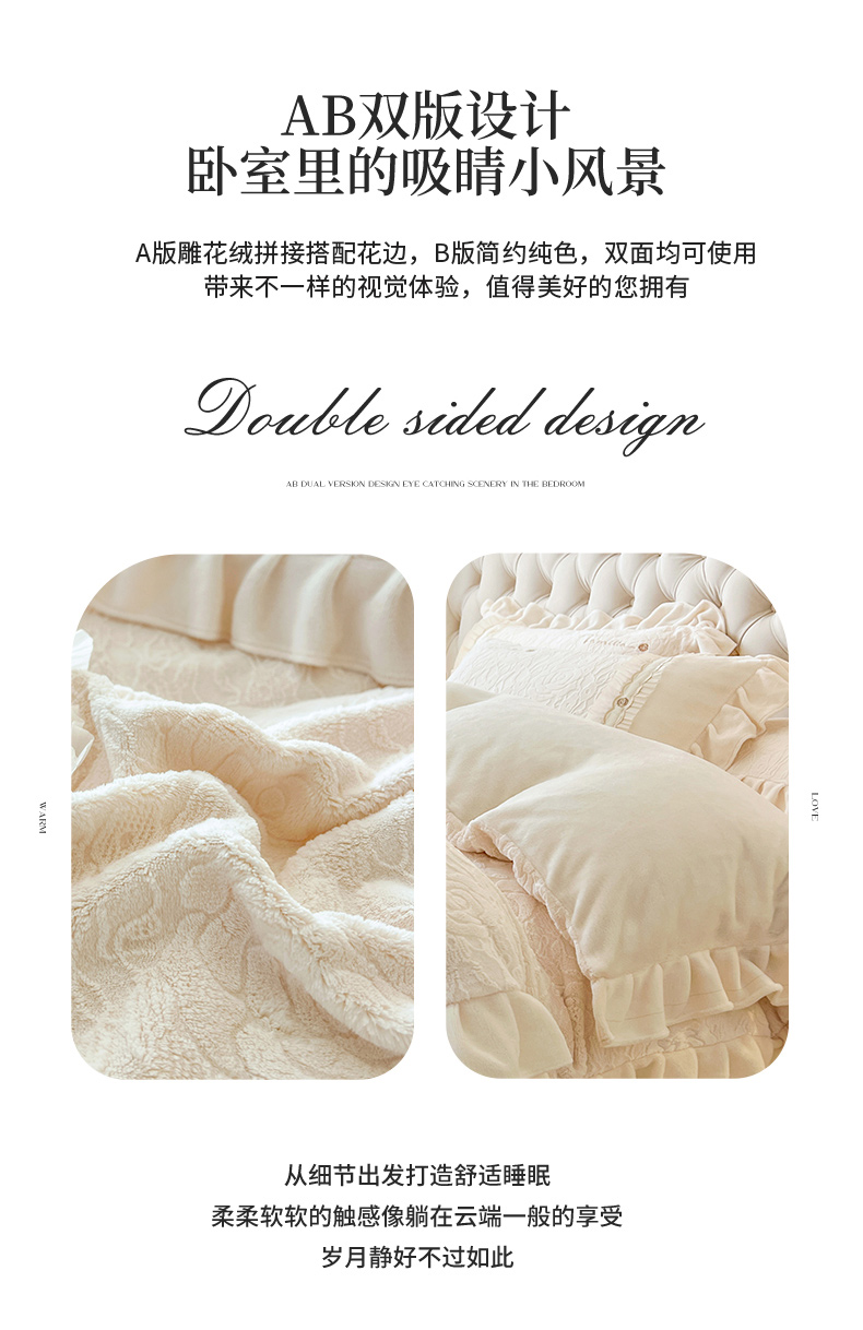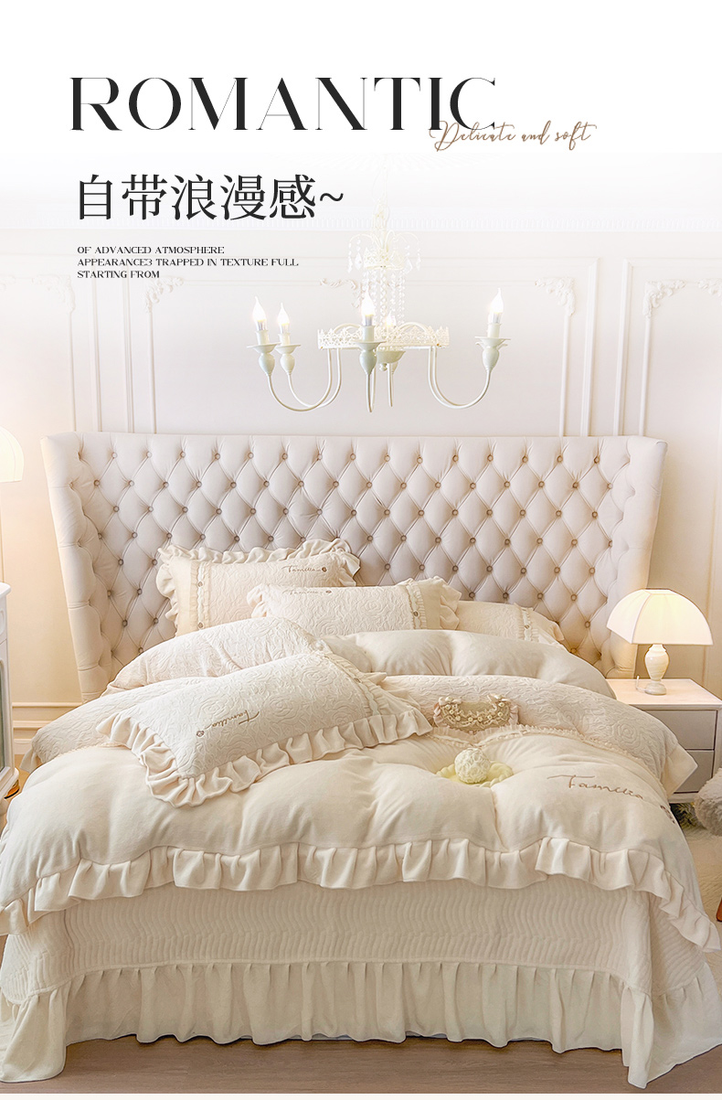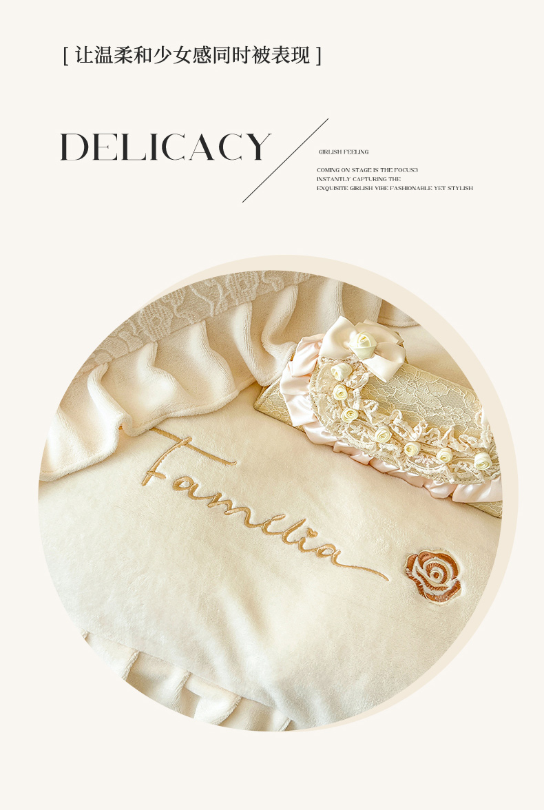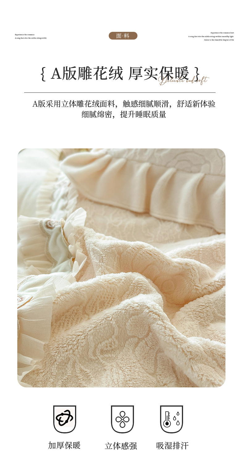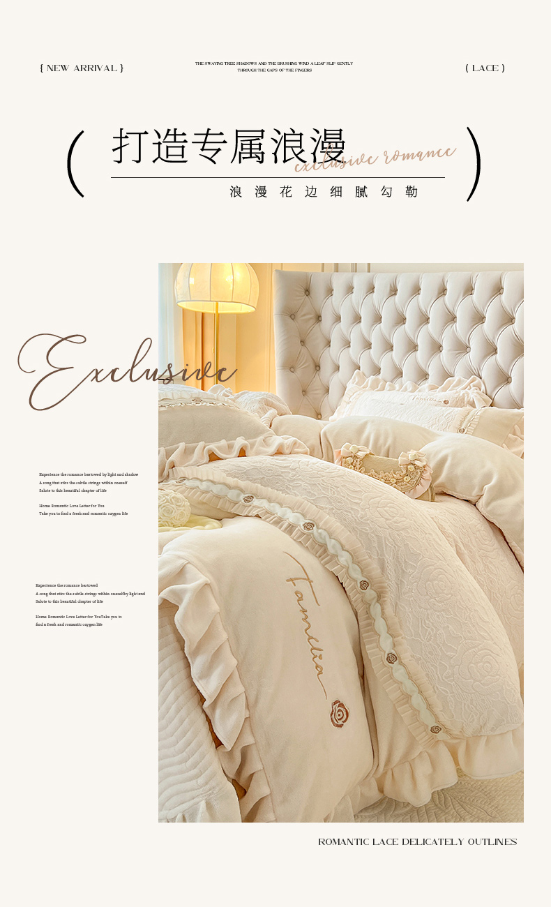 (总)乐朵家居 2025新款 伊莉莎 牛奶绒夹棉床盖四件套,奶白,粉玉