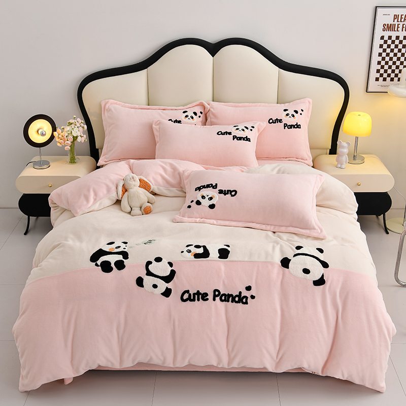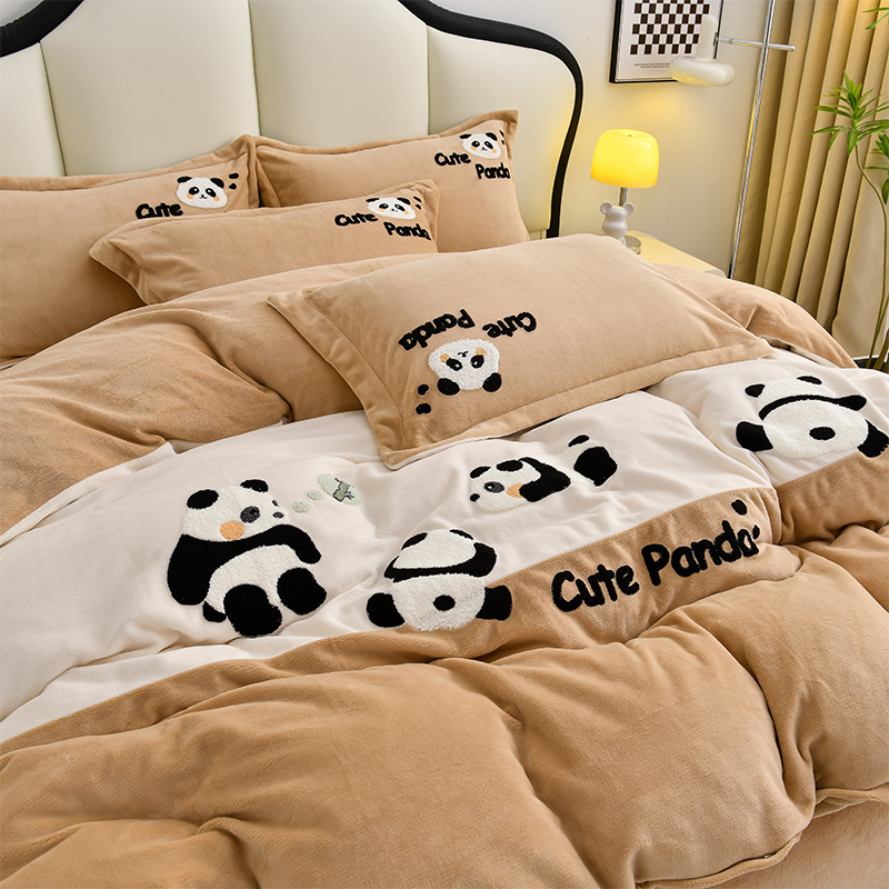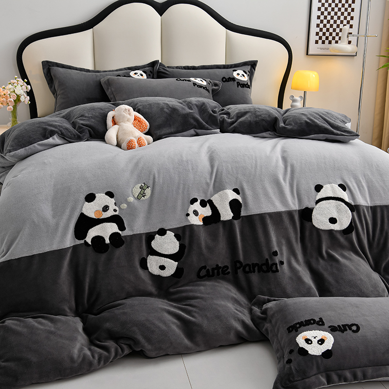 当前位置: 91家纺网 > 商品网购 > 床品套件 > 四件套 > 牛奶绒四件套 > 一左一右 2024秋冬新款全消光高克重保暖加厚卡通拼接毛巾绣花牛奶绒四件套(提供买家秀) 熊猫集会-淡彩绿