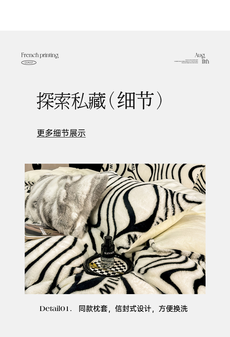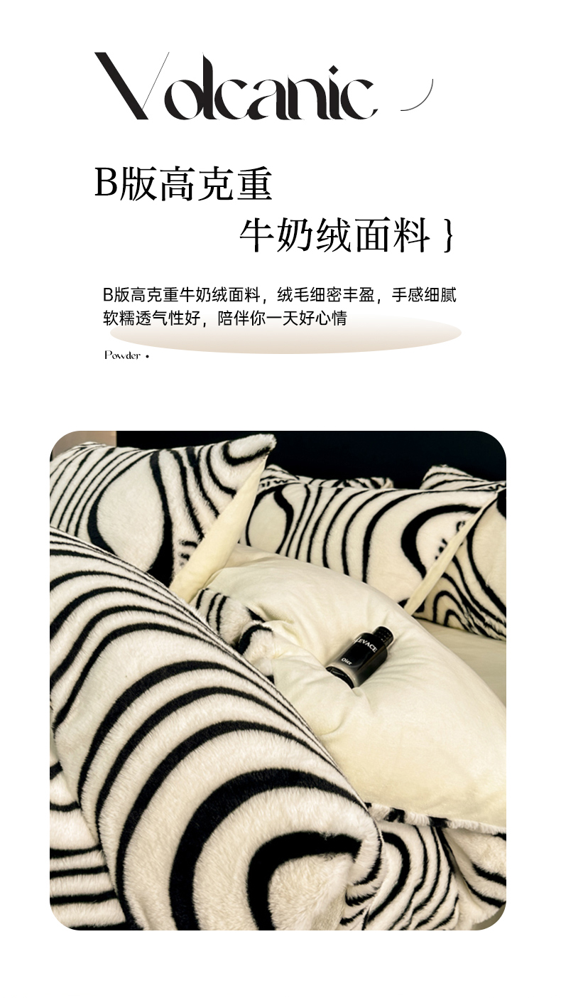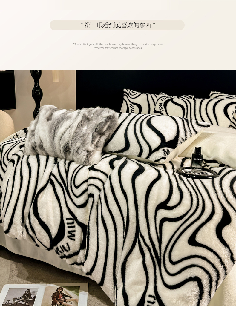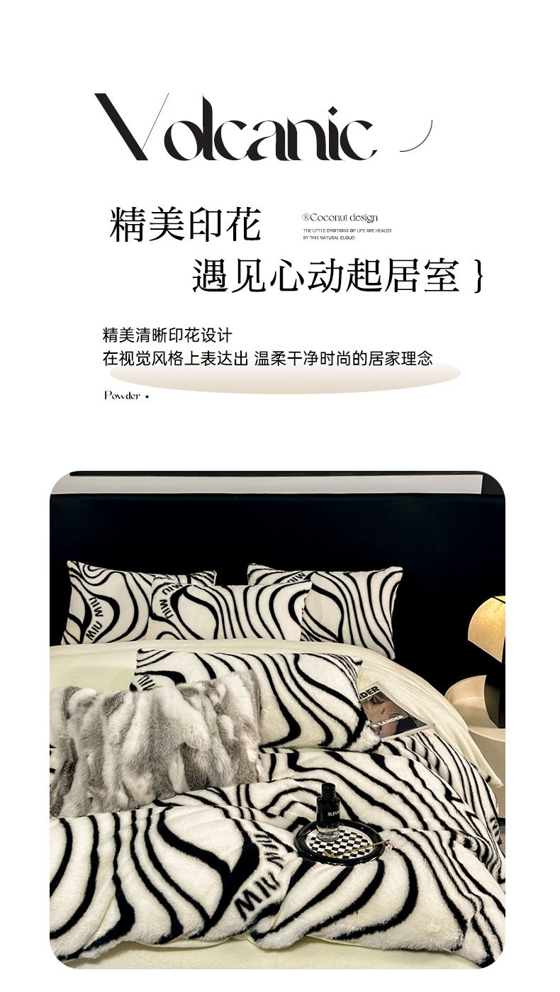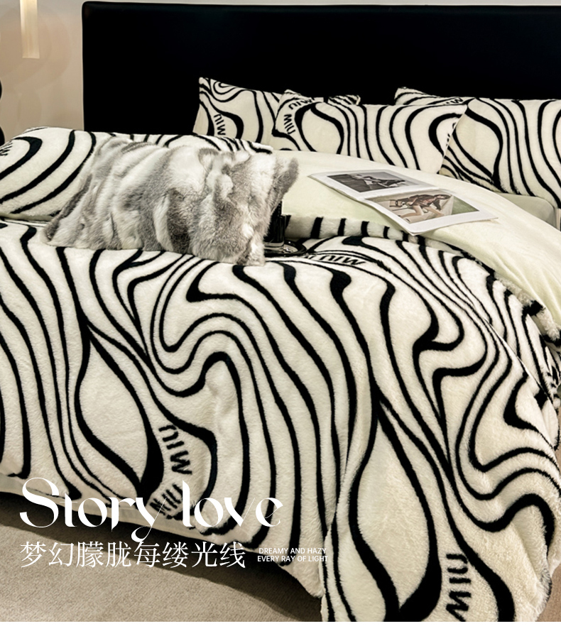 当前位置: 91家纺网 > 商品网购 > 床品套件 > 四件套 > 兔毛绒四件套 > 舒慕家纺 2025新款兔兔绒四件套 斑马纹