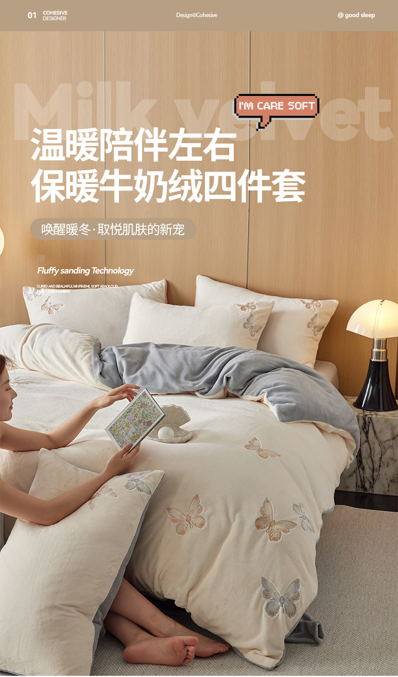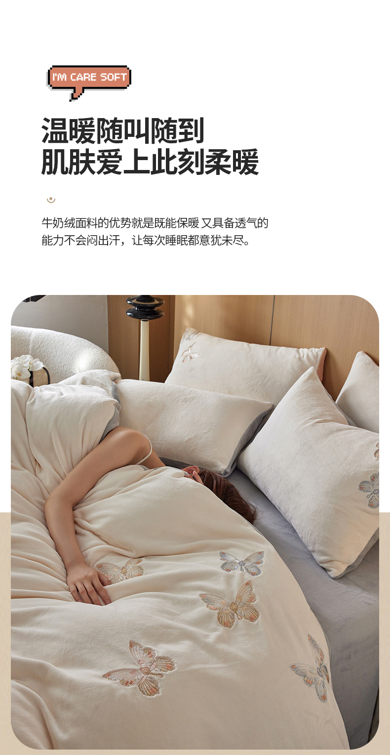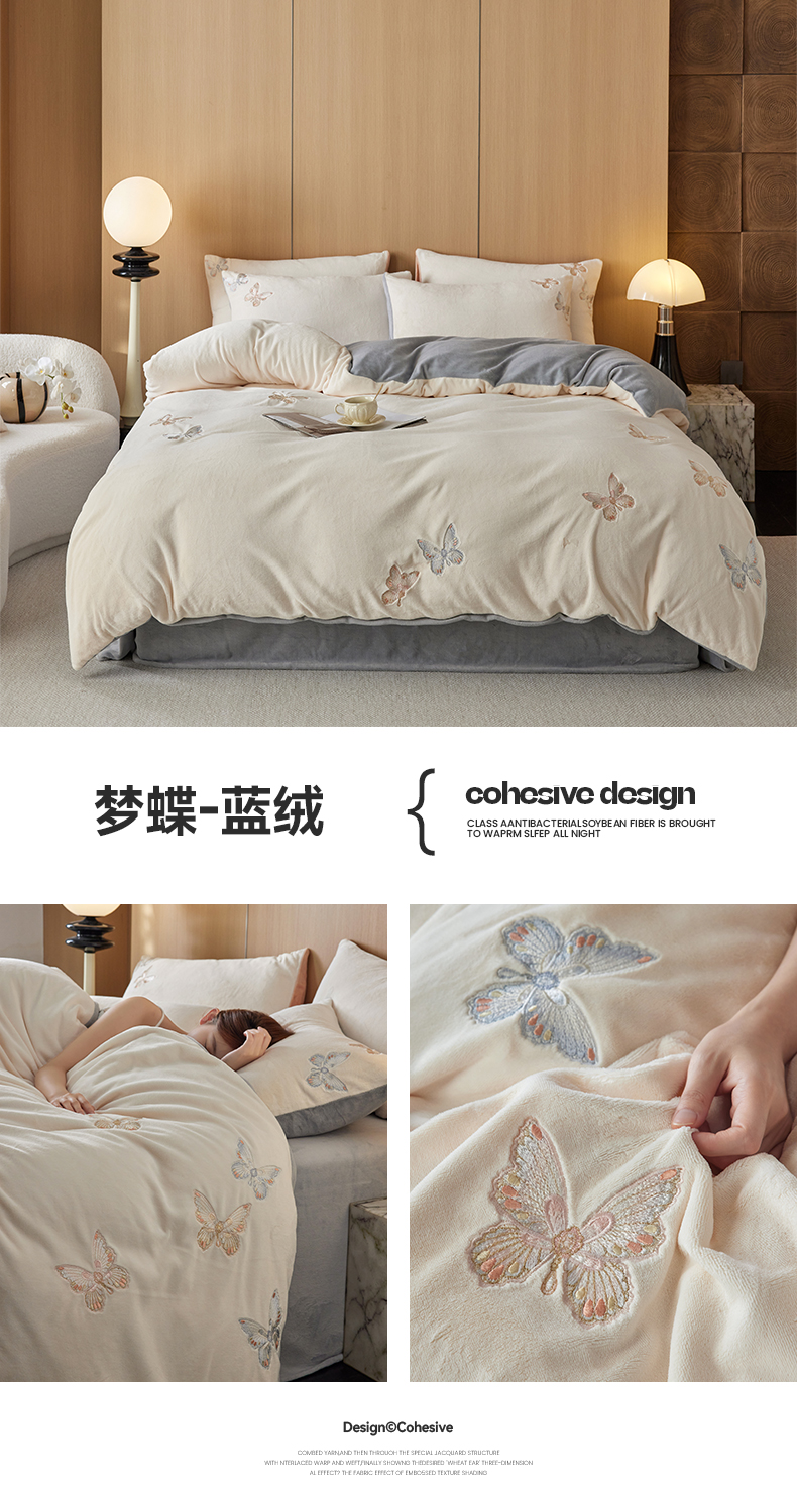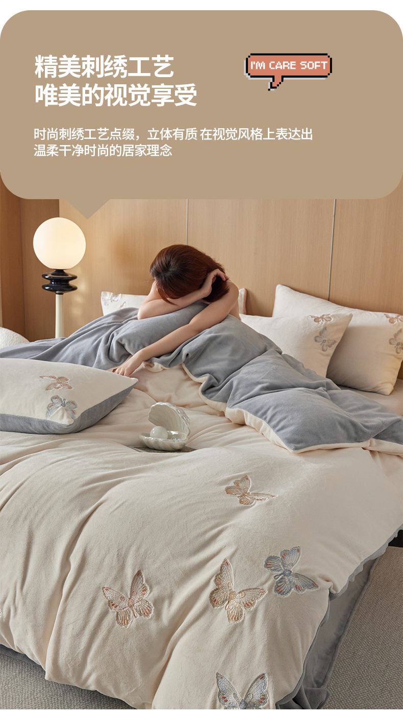 当前位置: 91家纺网 > 商品网购 > 床品套件 > 四件套 > 牛奶绒四件套 > 简纯主义 2025新款全工艺牛奶绒绣花四件套庄周梦蝶系列 梦蝶-蓝绒