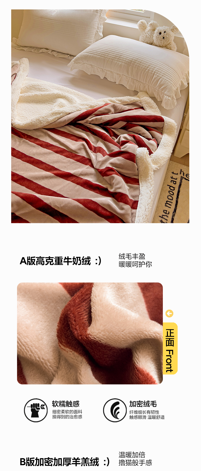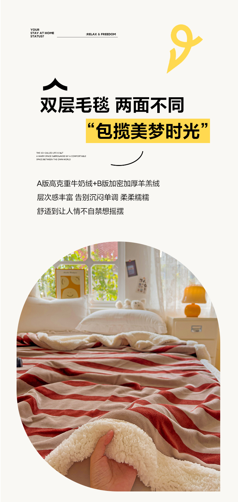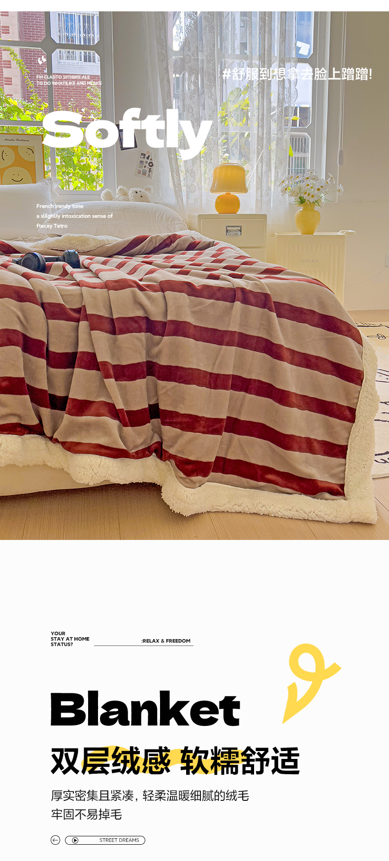 商品名称:艾咪-Amy ntmy 2024新款ins条纹牛奶绒双层毯毛毯休闲毯 焦糖
