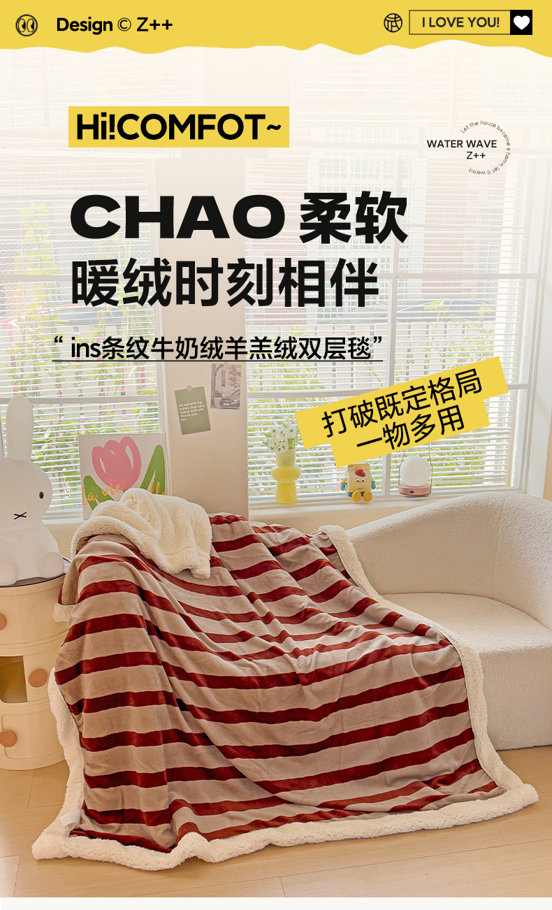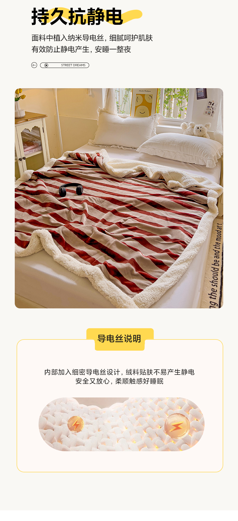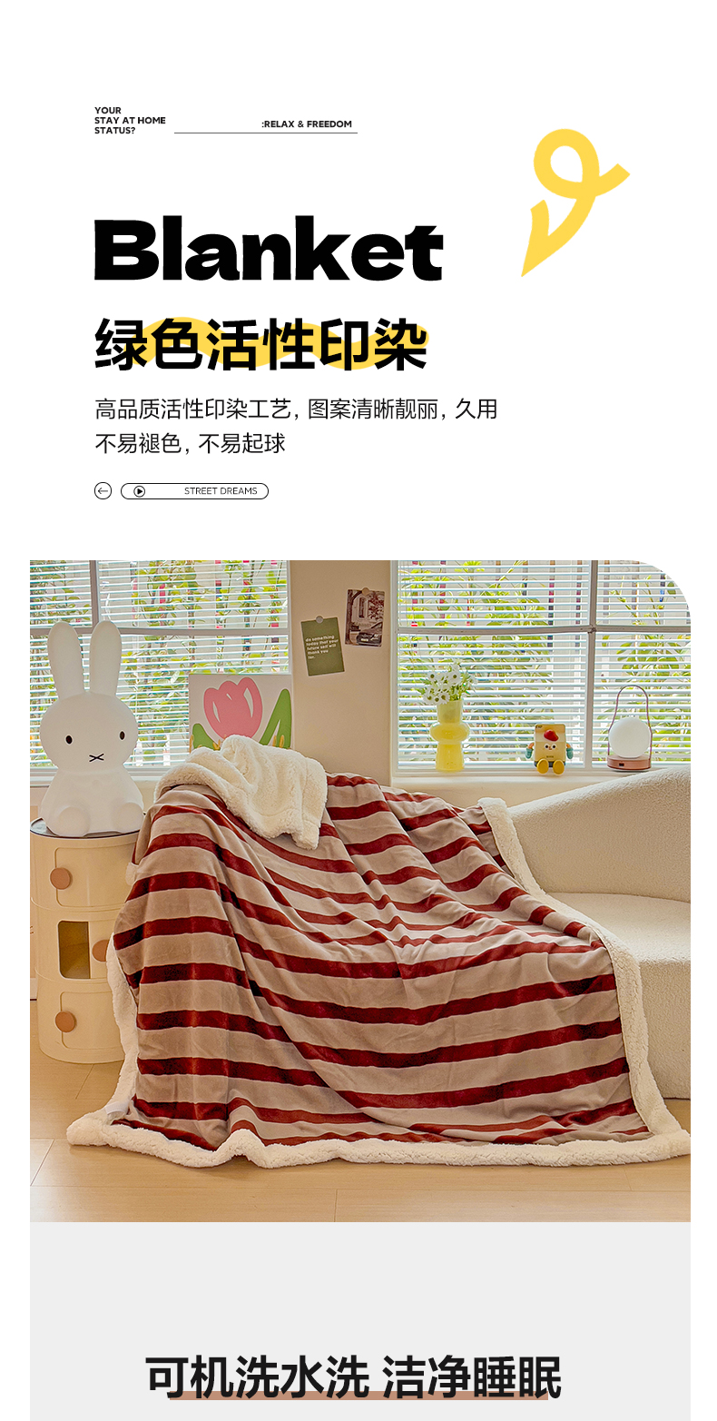 商品名称:艾咪-Amy ntmy 2024新款ins条纹牛奶绒双层毯毛毯休闲毯 焦糖