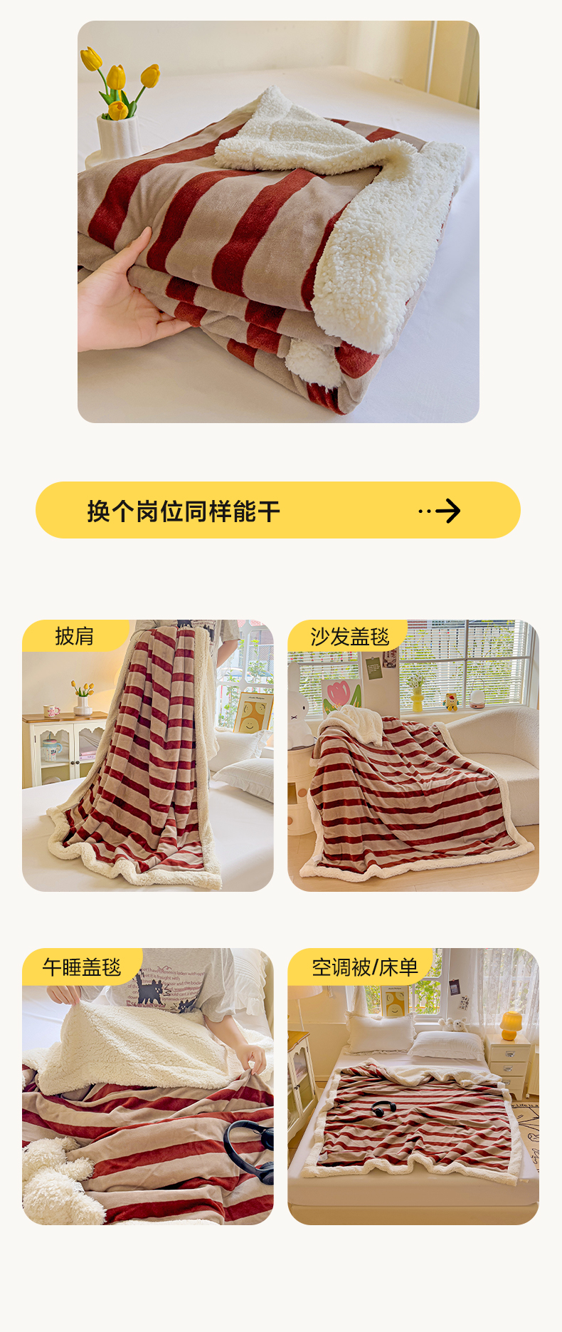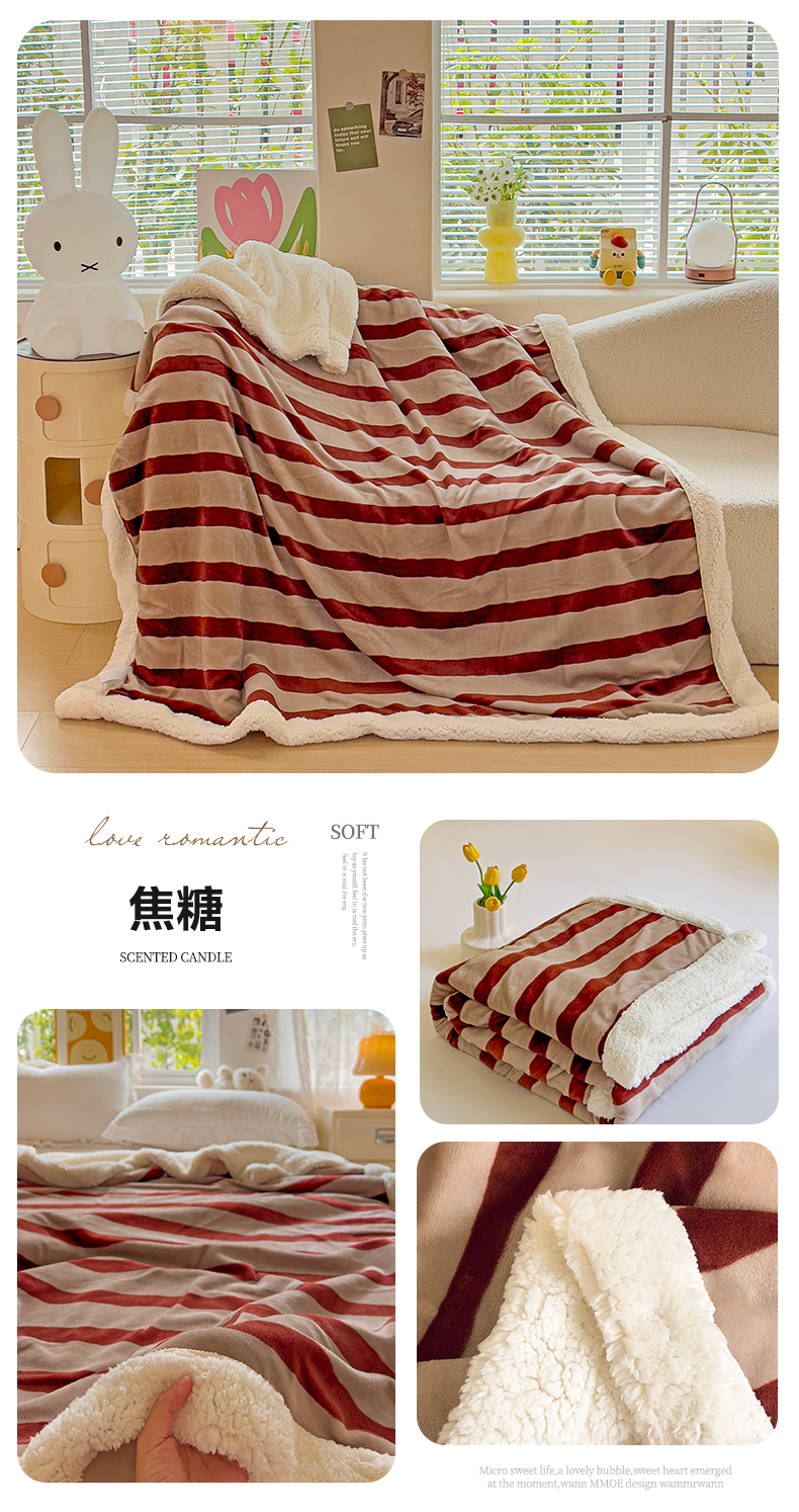 艾咪-Amy ntmy 2024新款ins条纹牛奶绒双层毯毛毯休闲毯 焦糖