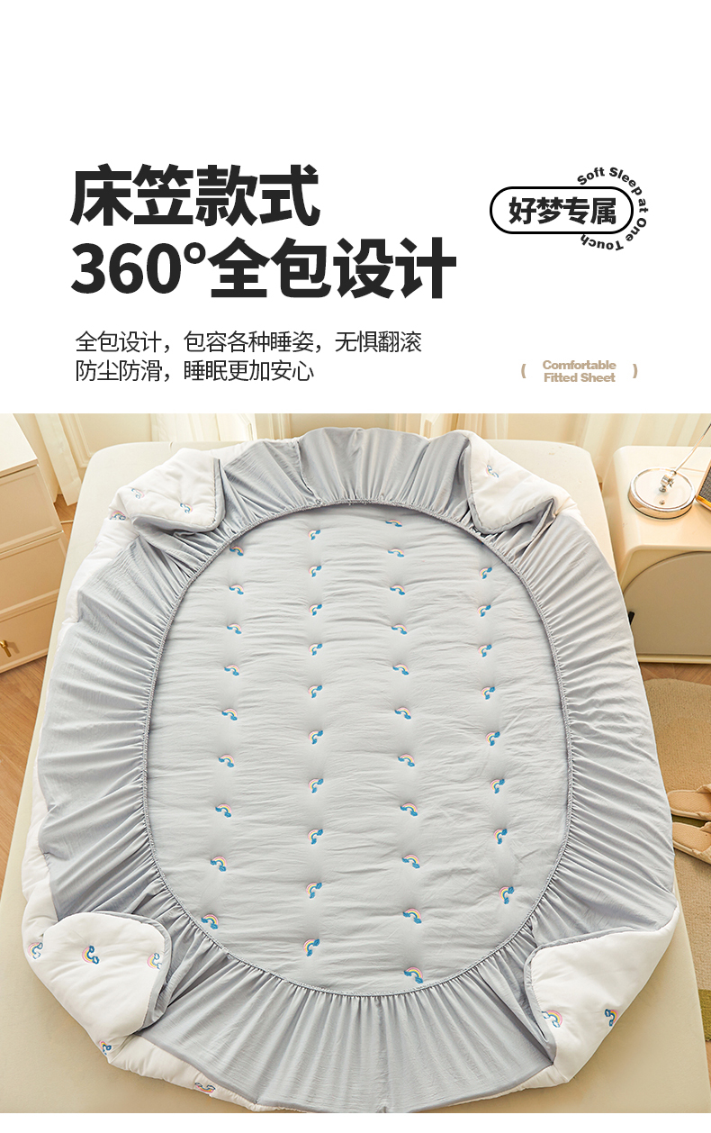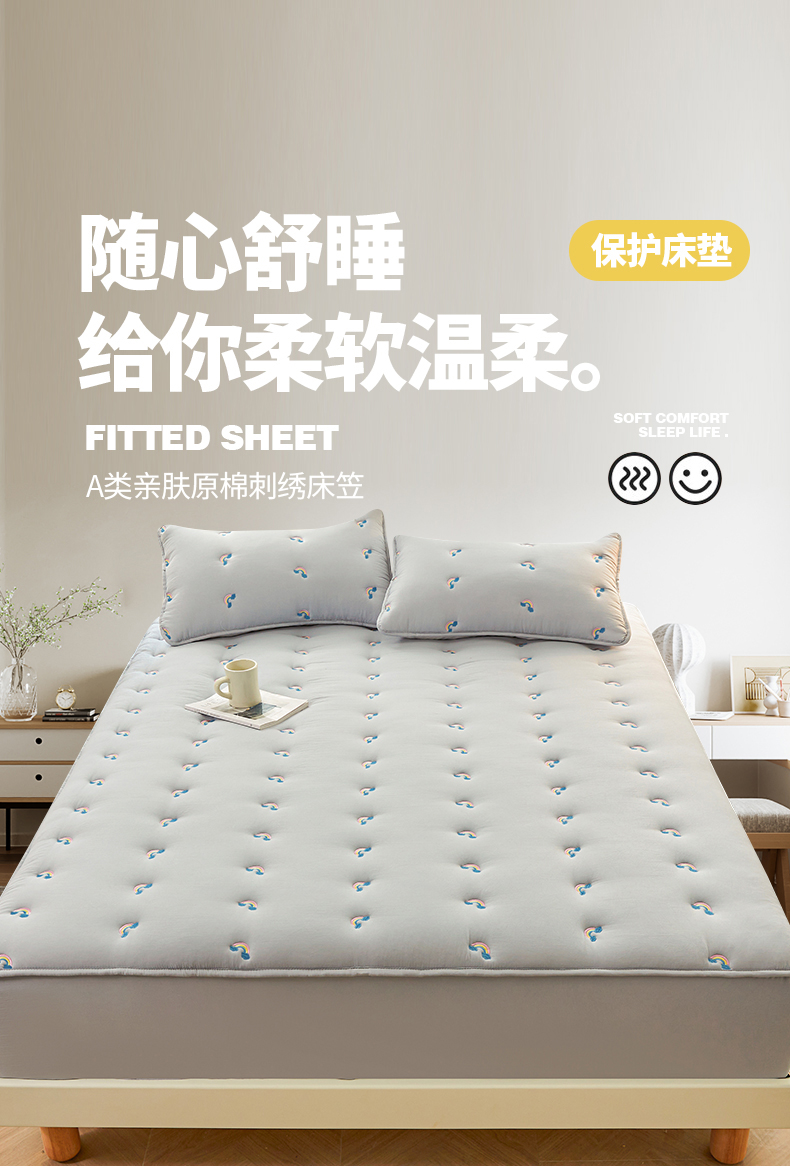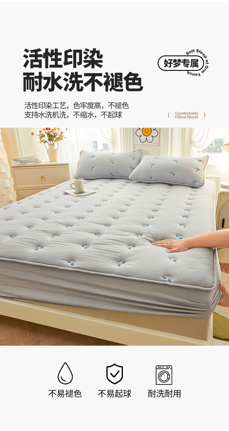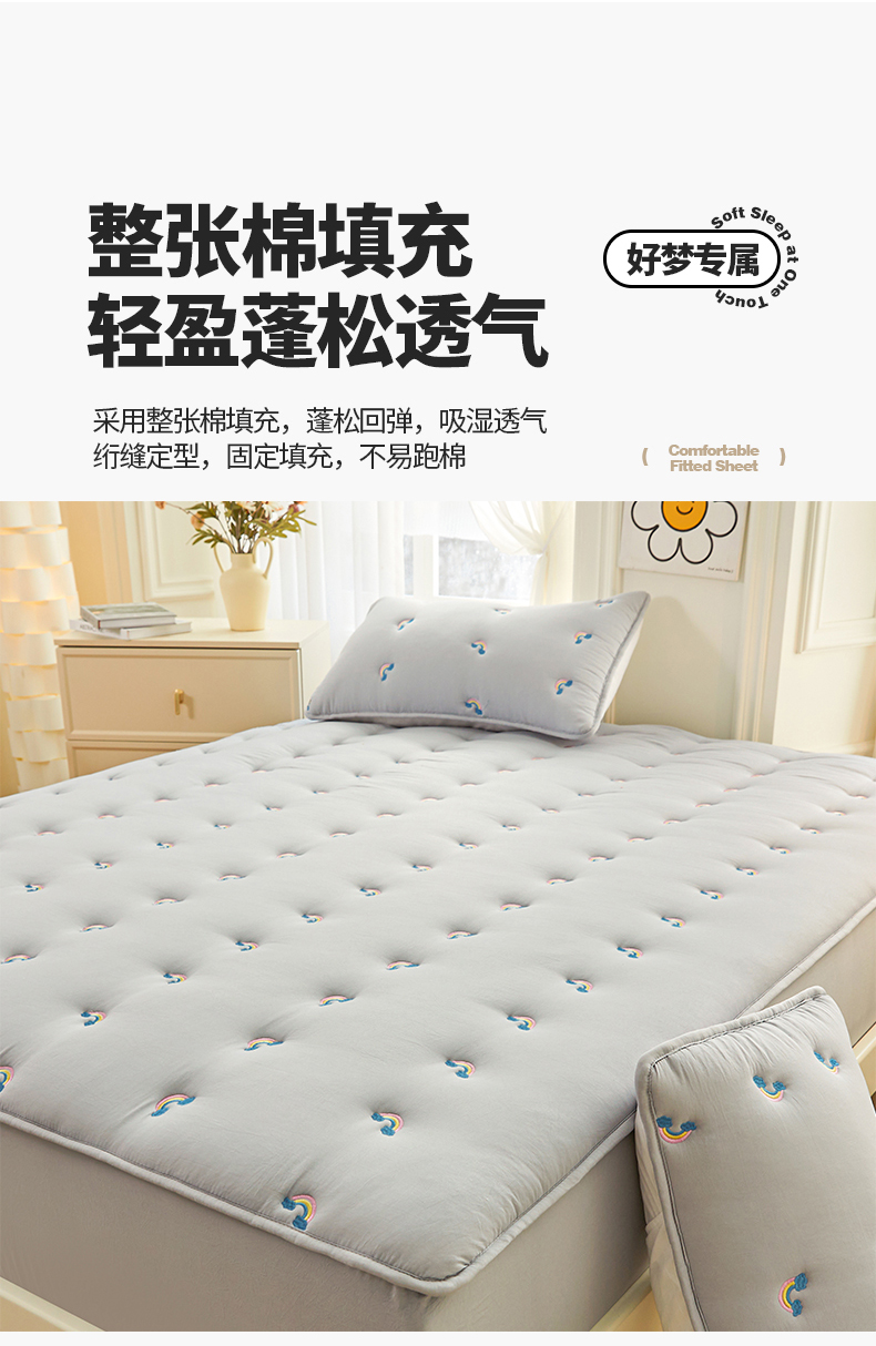 (总)迪梦思家纺 2024新款原棉彩虹刺绣床护垫,彩虹-本白,彩虹-豆绿,彩虹-卡其,彩虹-浅玉,彩虹-银灰