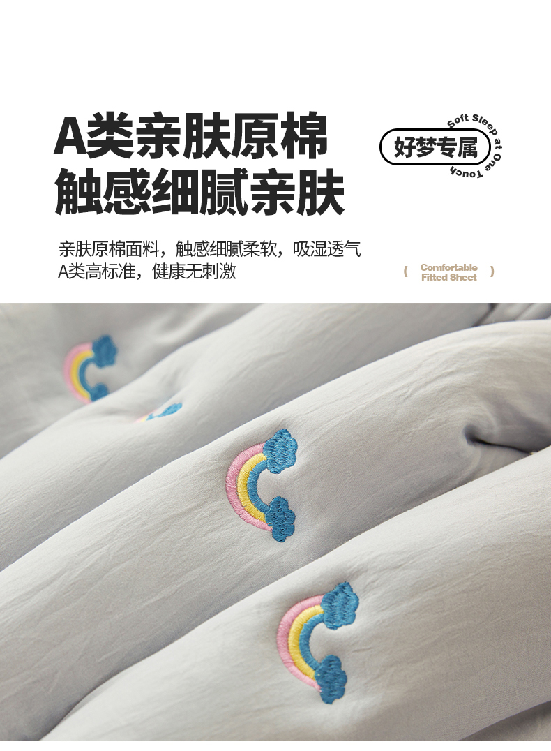 商品名称:迪梦思家纺 2024新款A类亲肤原棉刺绣床笠床垫保护套--彩虹系列 彩虹-银灰