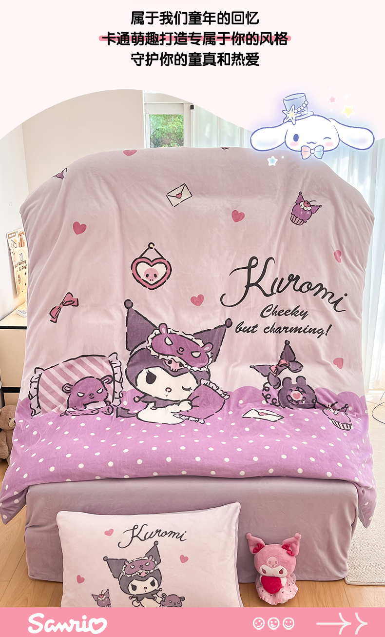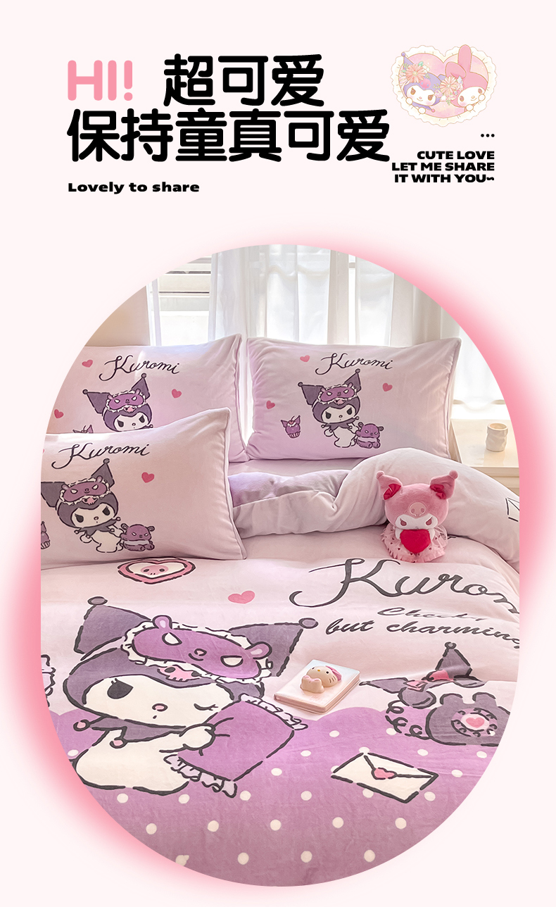 商品名称:星座家纺 2025新款大版三丽鸥牛奶绒四件套 安睡库洛米