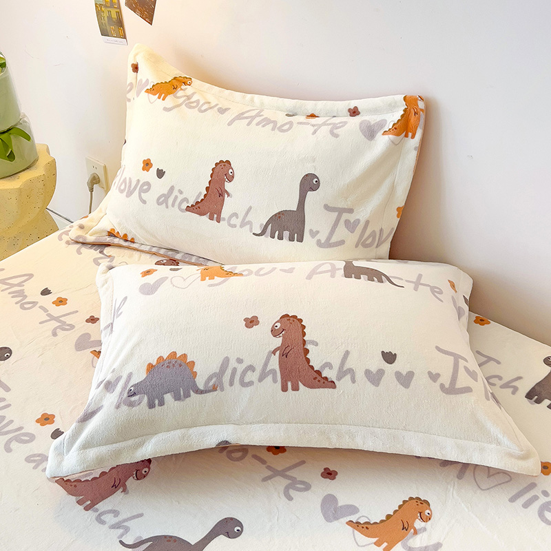 商品名称:大柏树 2025新款A类高克重亲肤舒适牛奶绒印花四件套-单枕套可定制 恐龙世界