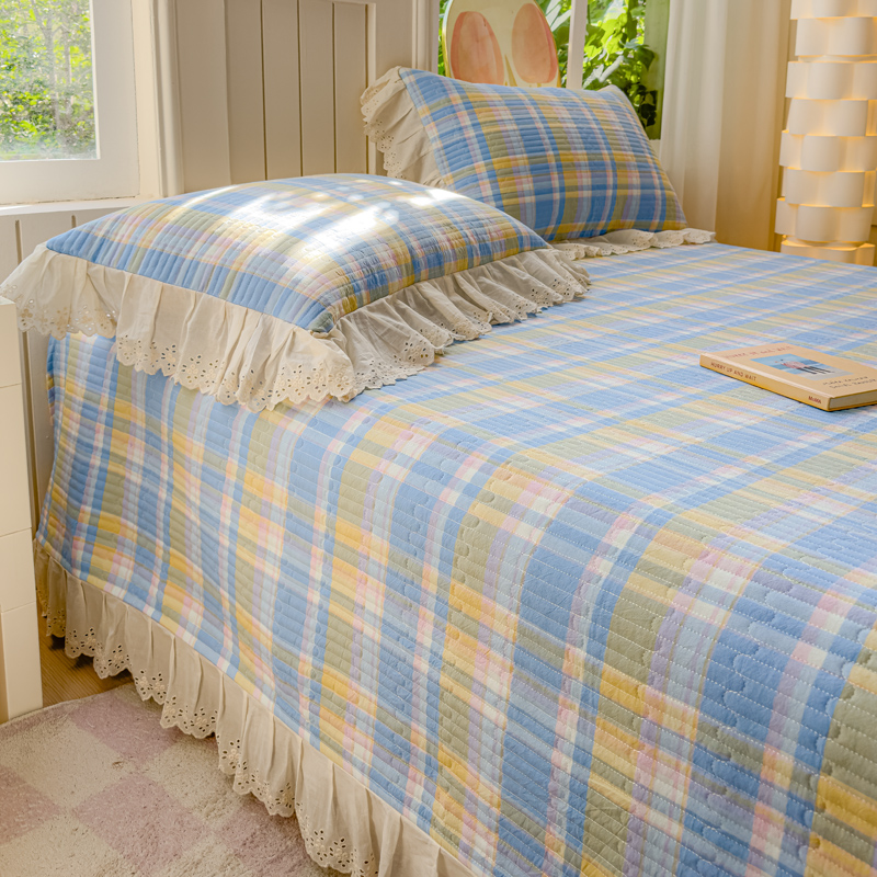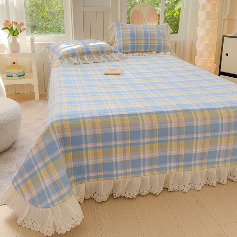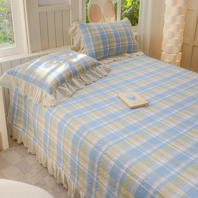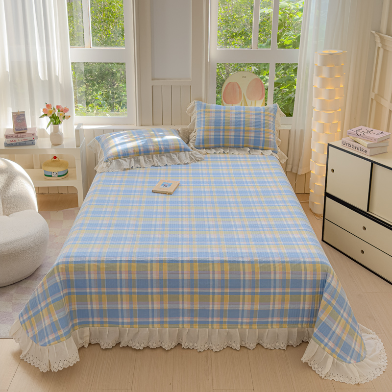 商品名称:久典家居 2024新款A类法式全棉色织水洗棉单床盖 昭华蓝
