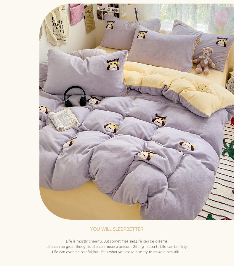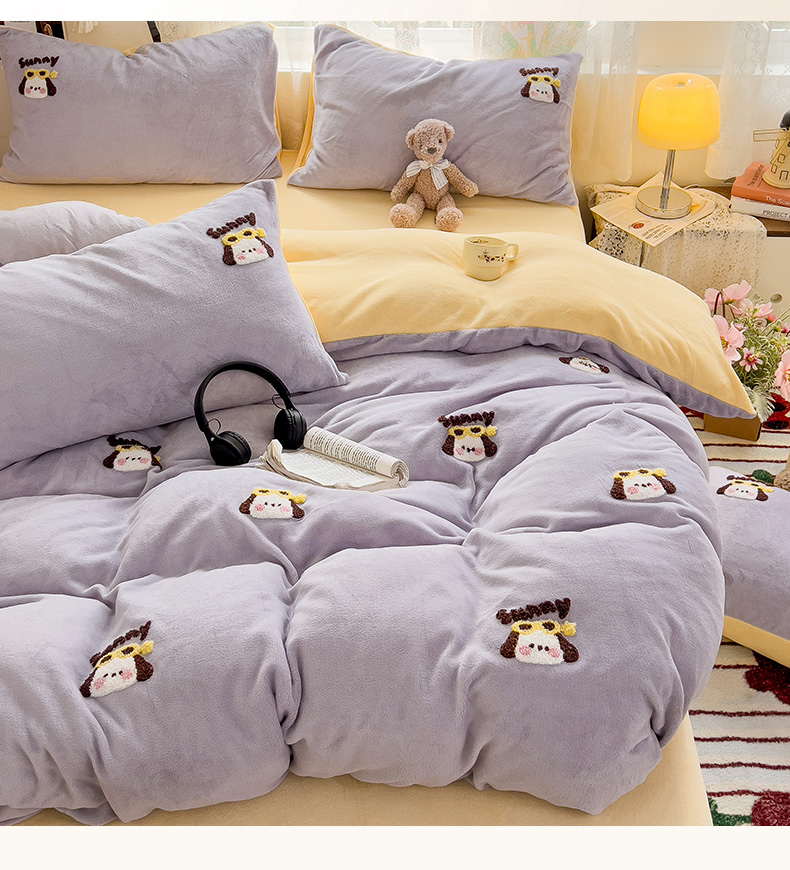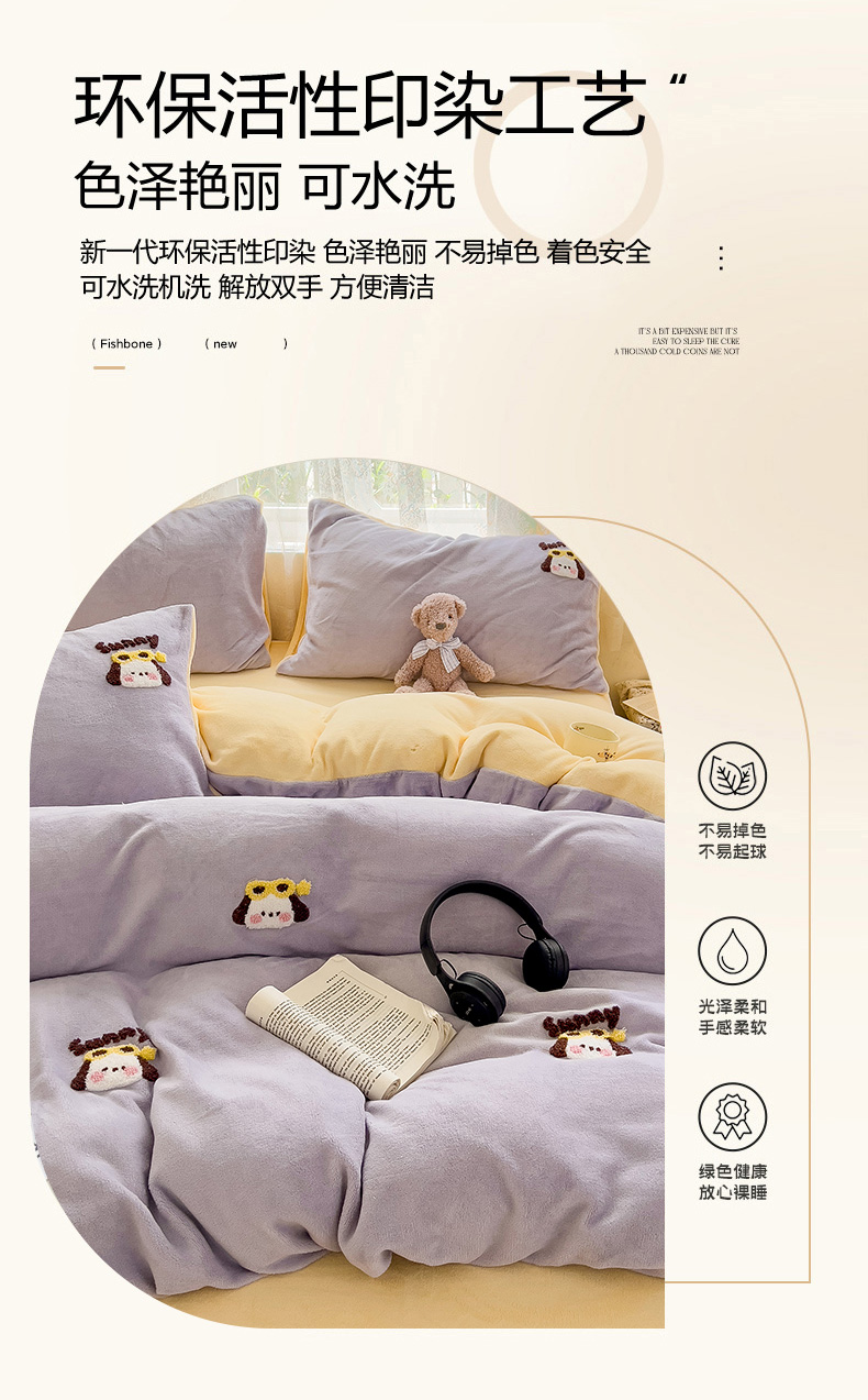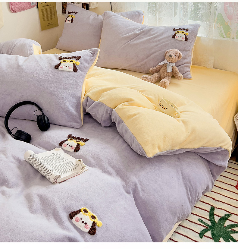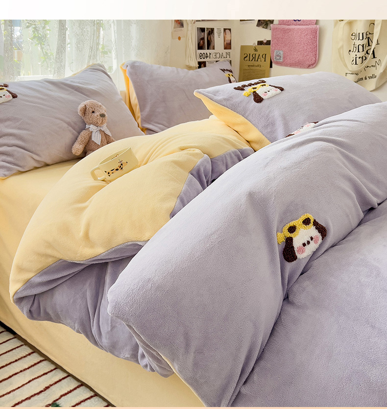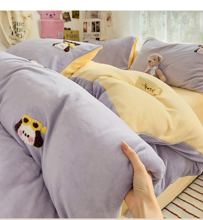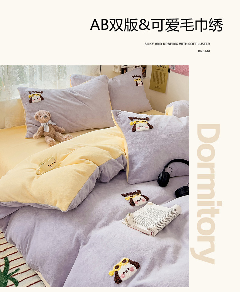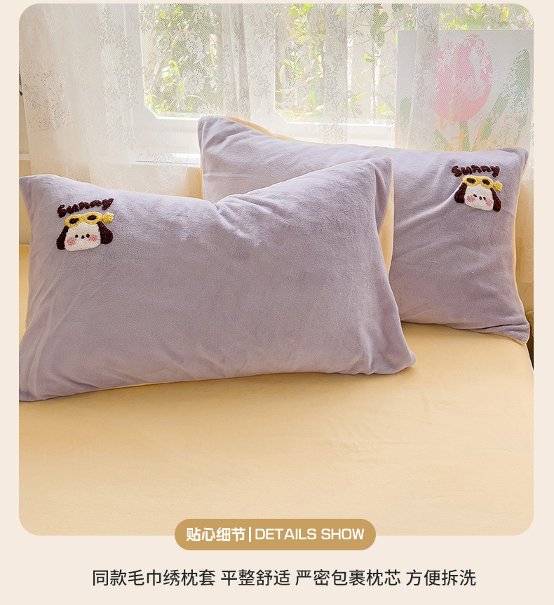 当前位置: 91家纺网 > 商品网购 > 床品套件 > 四件套 > 牛奶绒四件套 > 眠帛家居 2024高克重牛奶绒卡通毛巾绣系列 萌宠