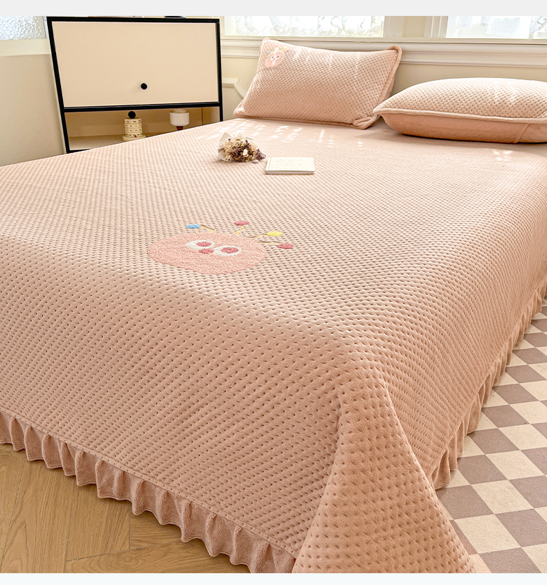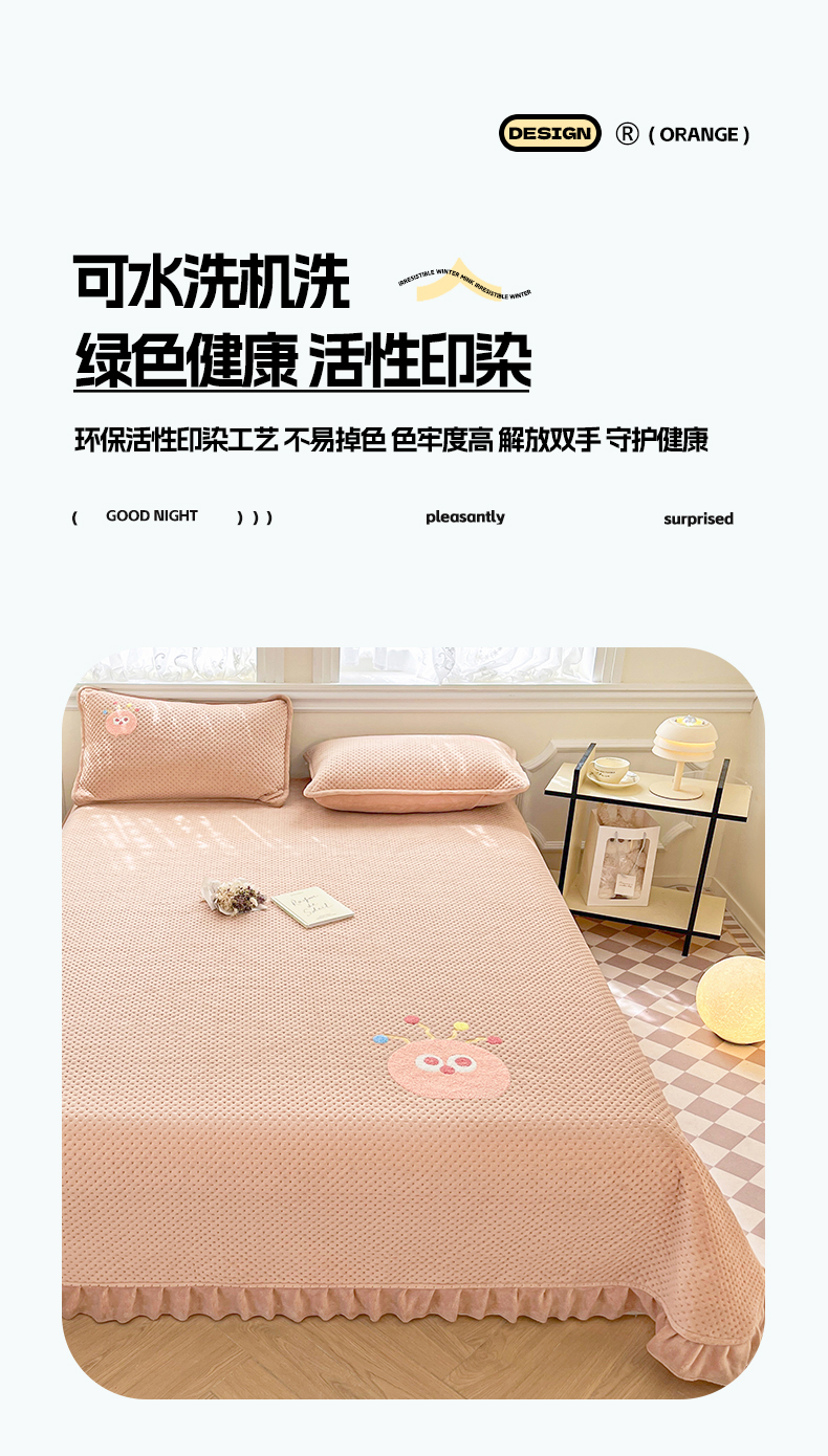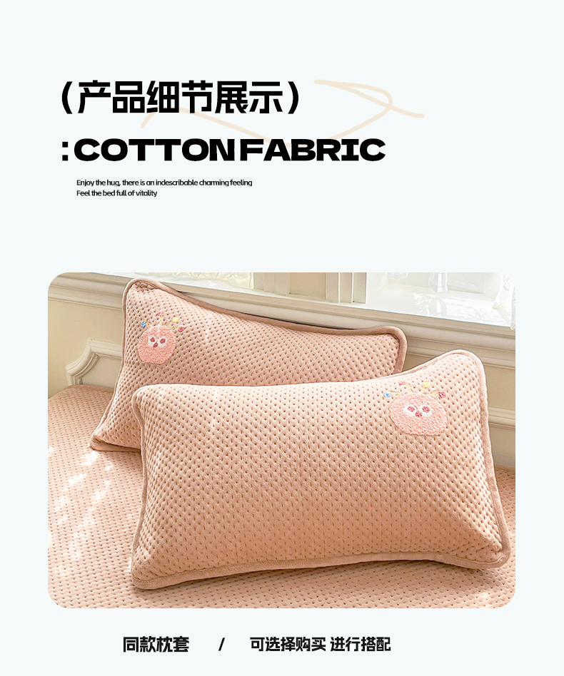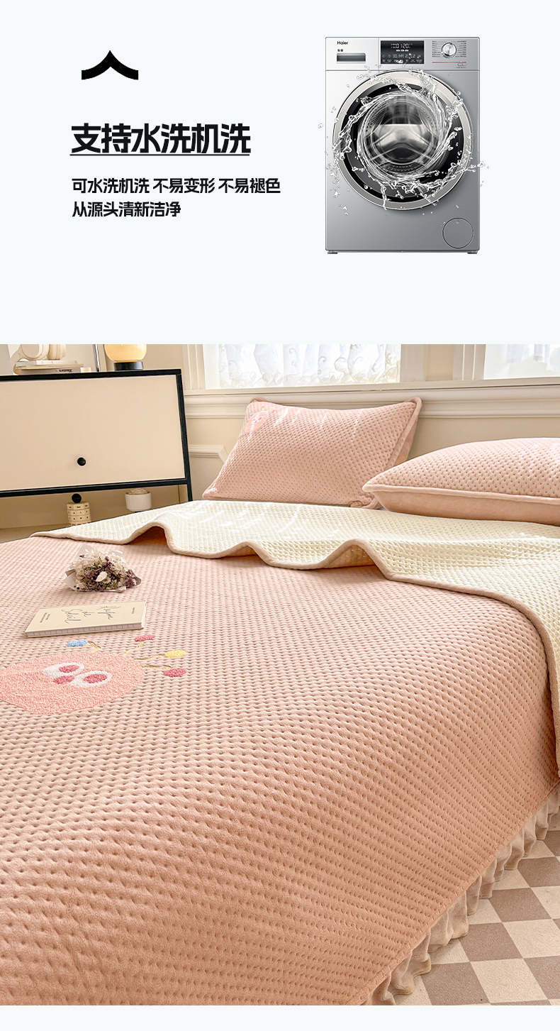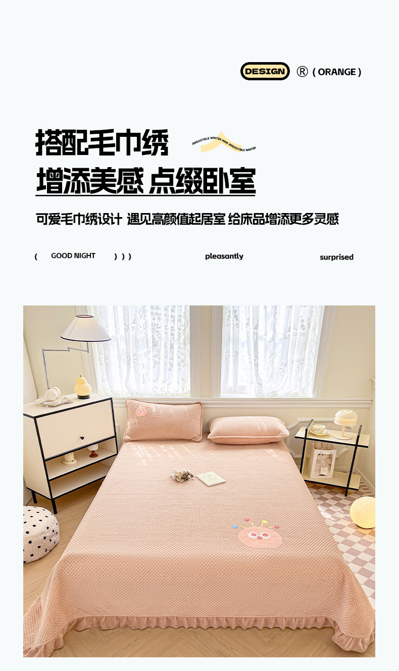 商品名称:居眠 2024新款华夫格毛巾绣夹棉床单 萌宠-杏卡