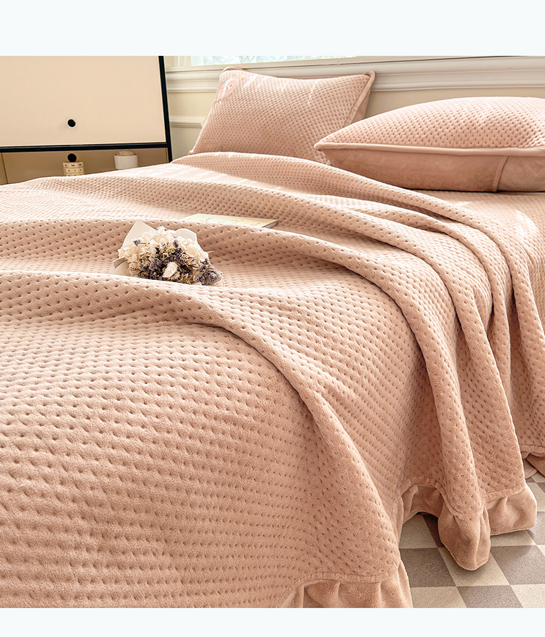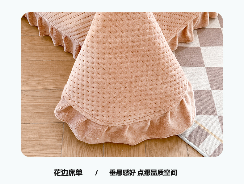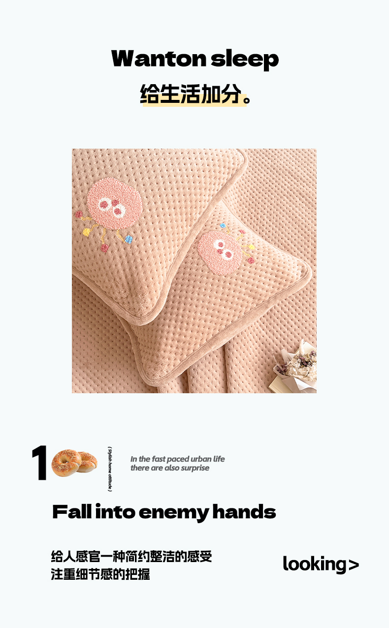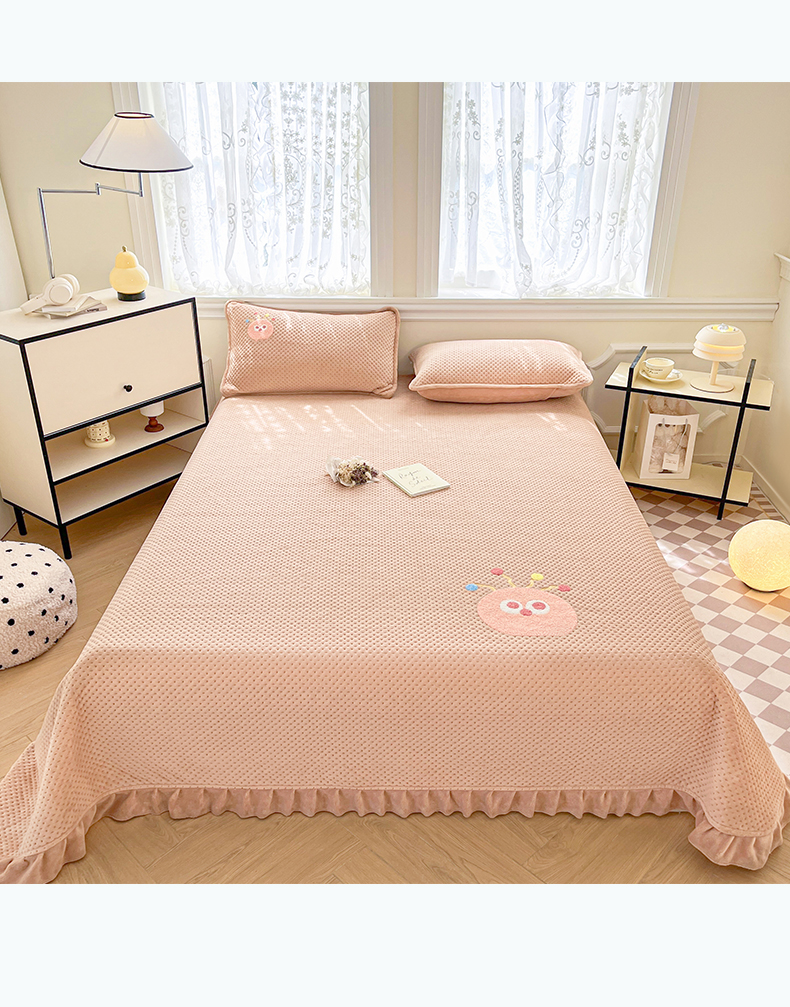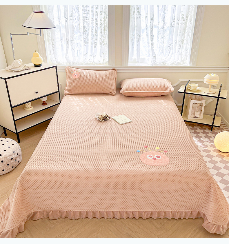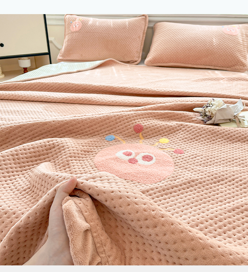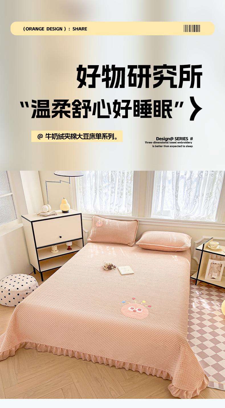 商品名称:居眠 2024新款华夫格毛巾绣夹棉床单 萌宠-杏卡