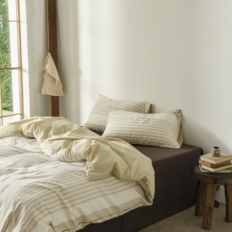 (总)简家居 2025新款亲肤舒适棉麻床盖三件套,棉麻提花