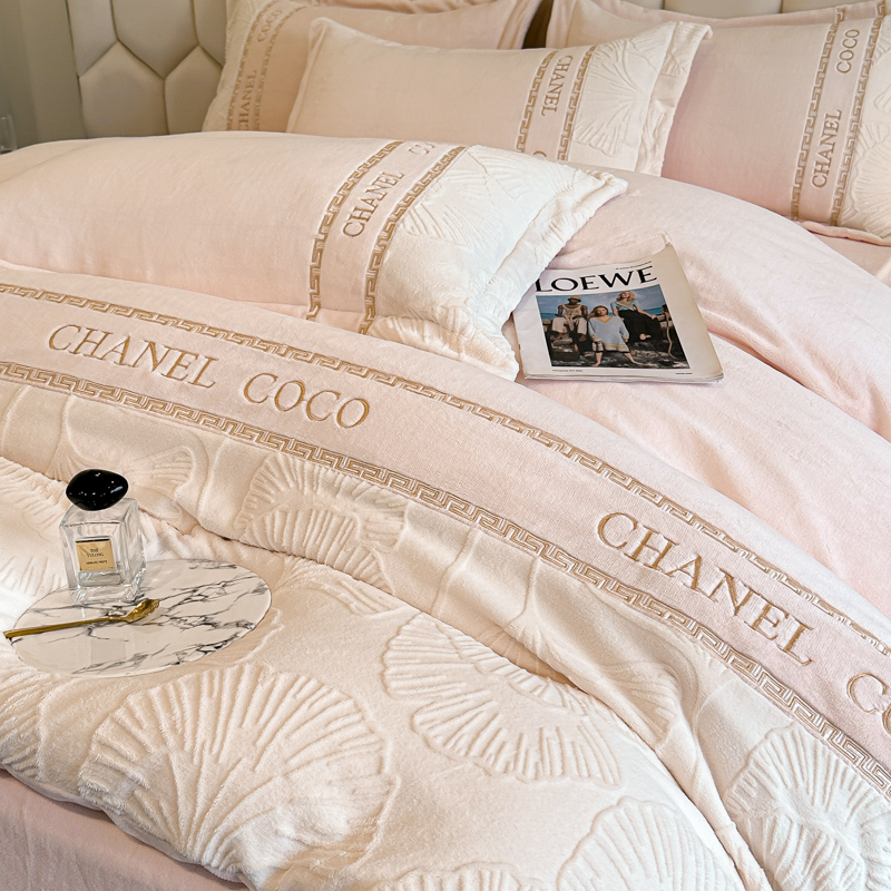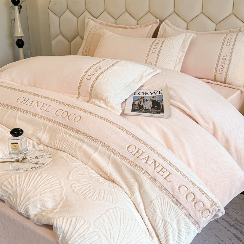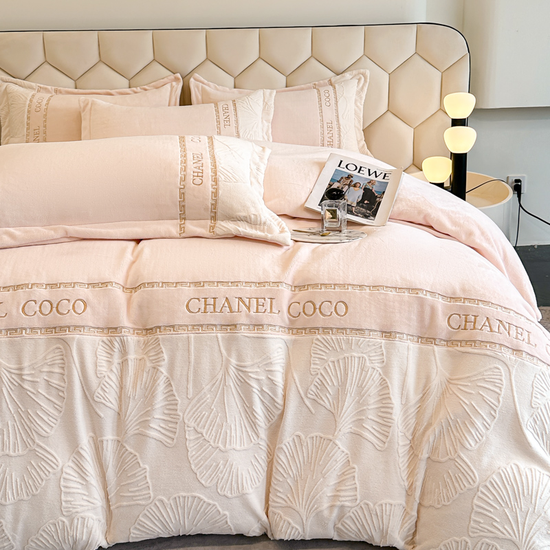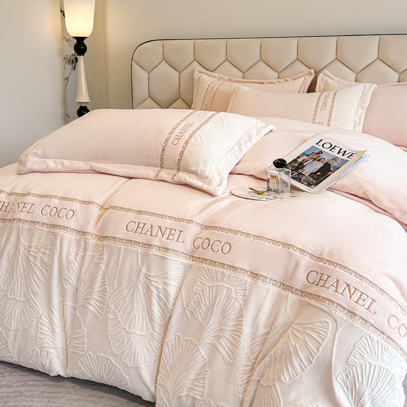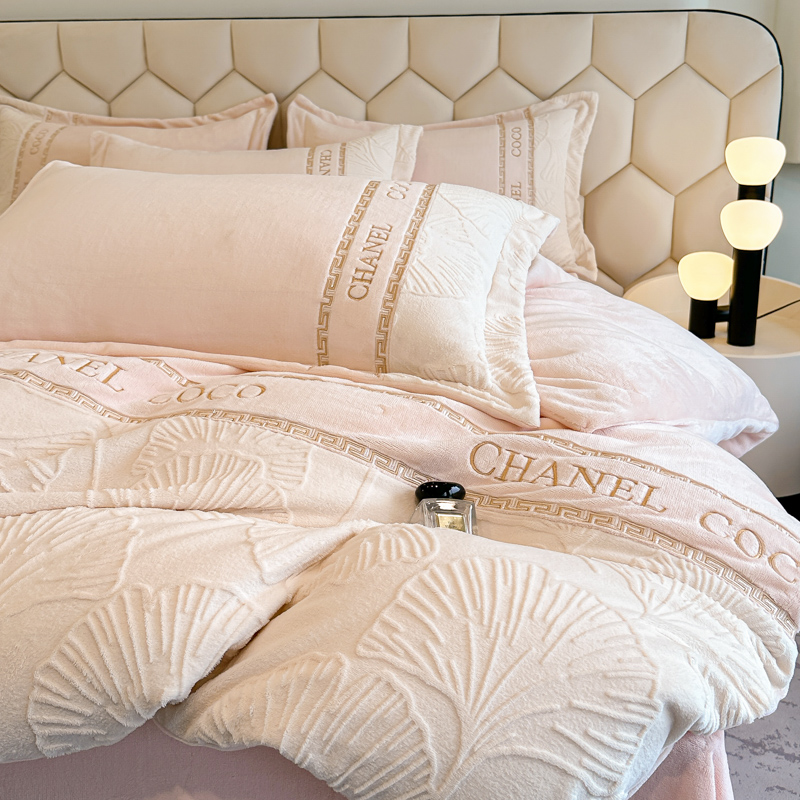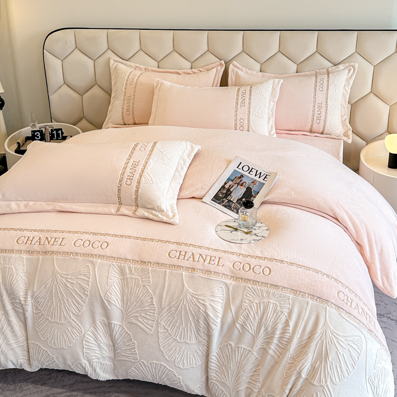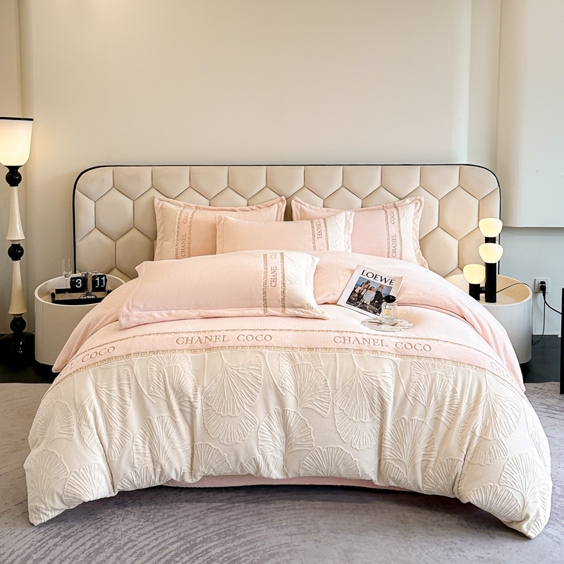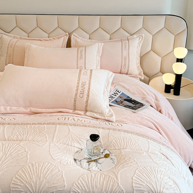 宅家居 2024新款雕花拼接刺绣全消光A类高克重牛奶绒四件套-舞秋系列 舞秋-粉玉