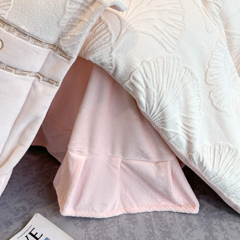 商品名称:宅家居 2024新款雕花拼接刺绣全消光A类高克重牛奶绒四件套-舞秋系列 舞秋-粉玉