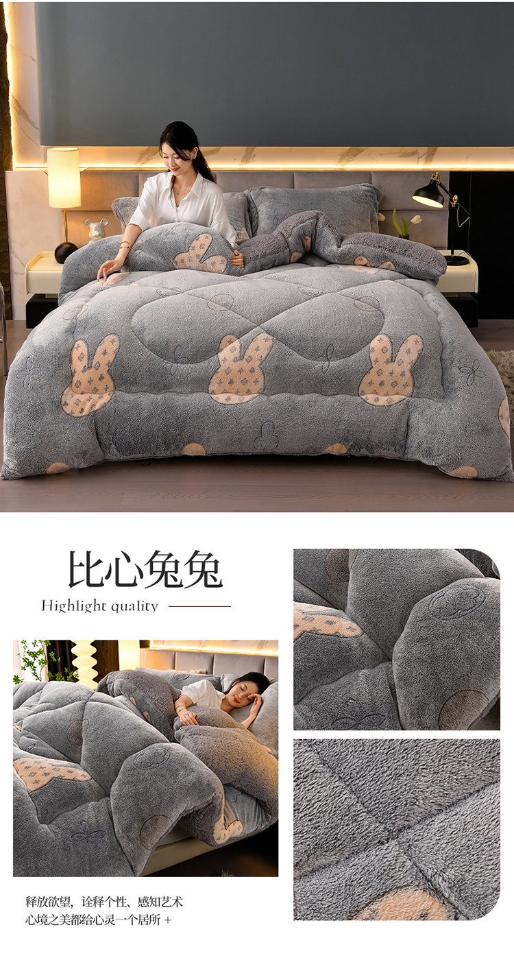 • 91家纺网 家纺一手货源 找家纺 锦逸家居 2024新款AB版雪花绒冬被羊羔绒冬被被子被芯春秋被 比心兔兔