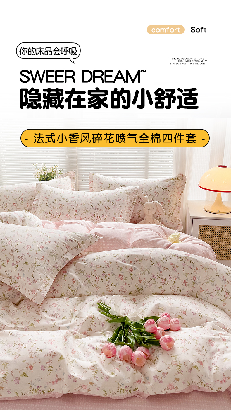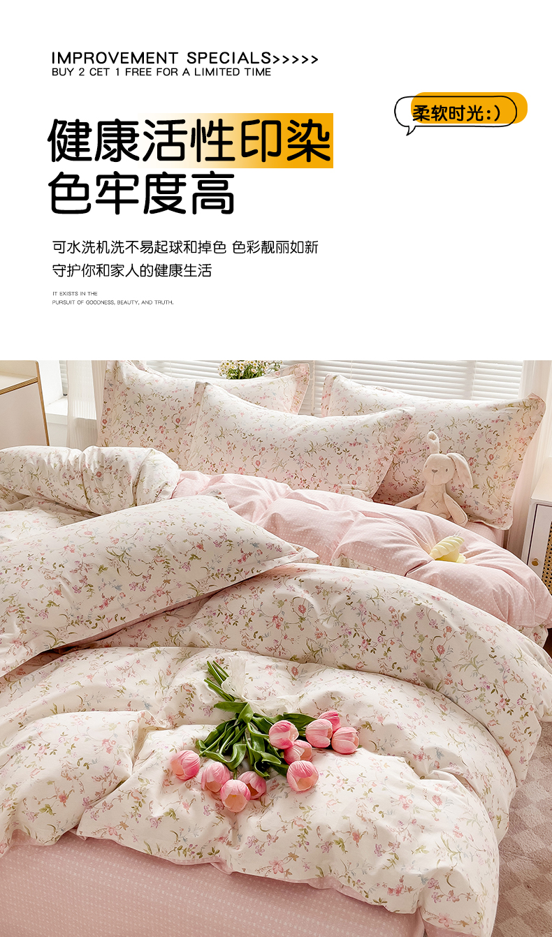 当前位置: 91家纺网 > 商品网购 > 床品套件 > 四件套 > 全棉普通四件套 > 卡普纯棉全棉四件套13070喷气床单款床笠款三件套 花蔓梦境