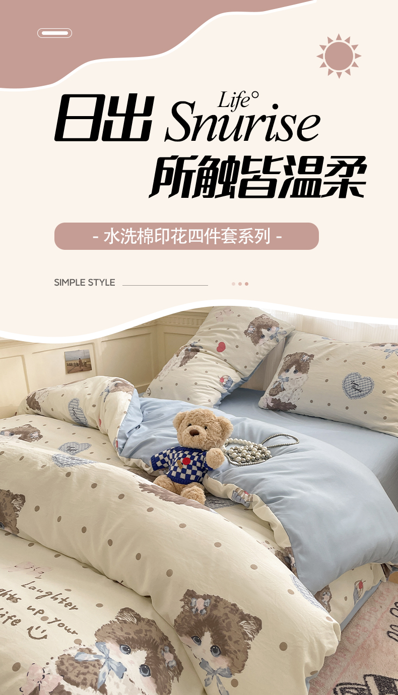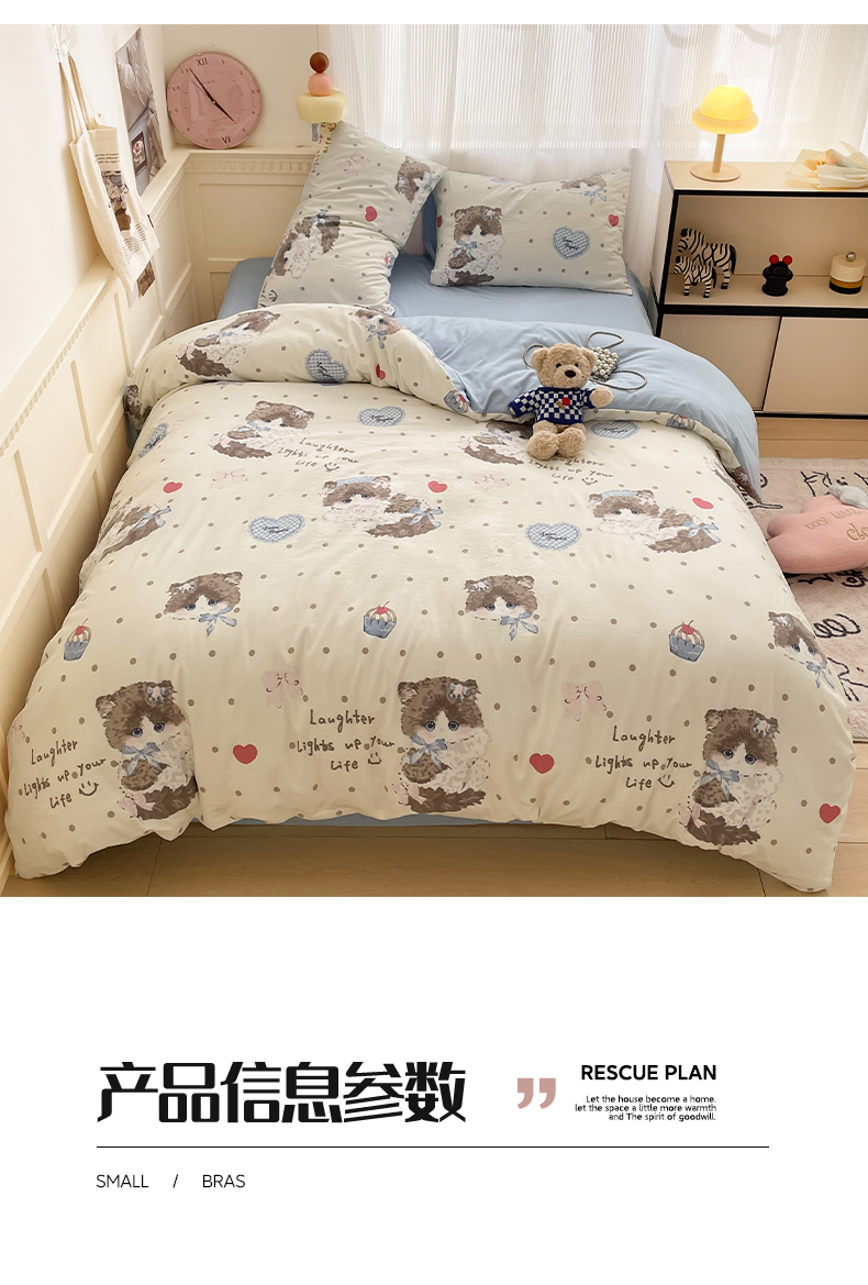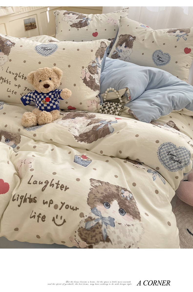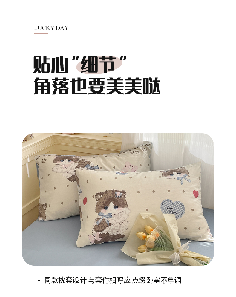 当前位置: 91家纺网 > 商品网购 > 床品套件 > 四件套 > 水洗棉四件套 > 优承佳生活馆 2024新款小清新洛丽塔风格卡通印花水洗m三件套四件套 点心喵喵