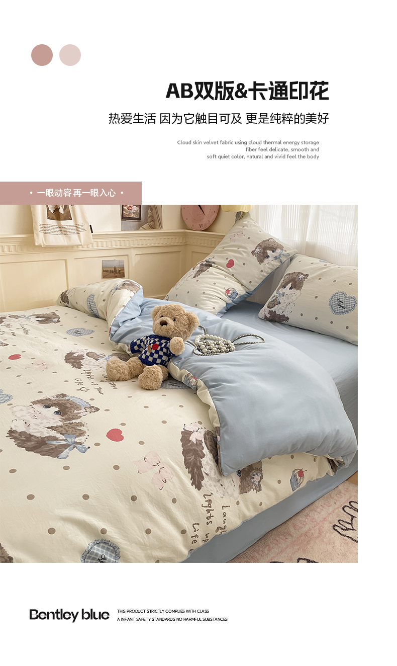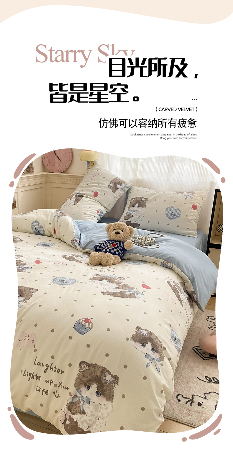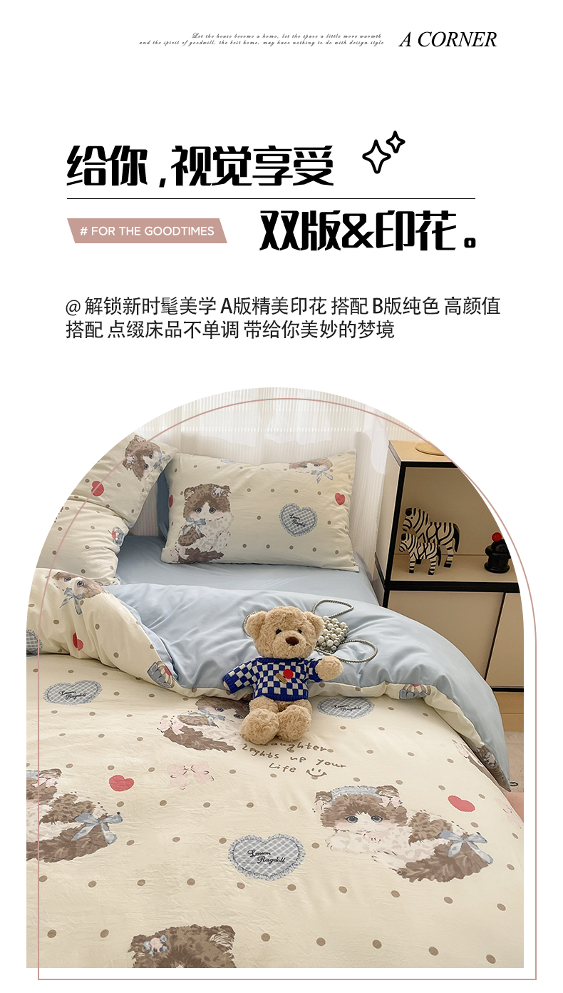 当前位置: 91家纺网 > 商品网购 > 床品套件 > 四件套 > 水洗棉四件套 > 优承佳生活馆 2024新款小清新洛丽塔风格卡通印花水洗m三件套四件套 点心喵喵