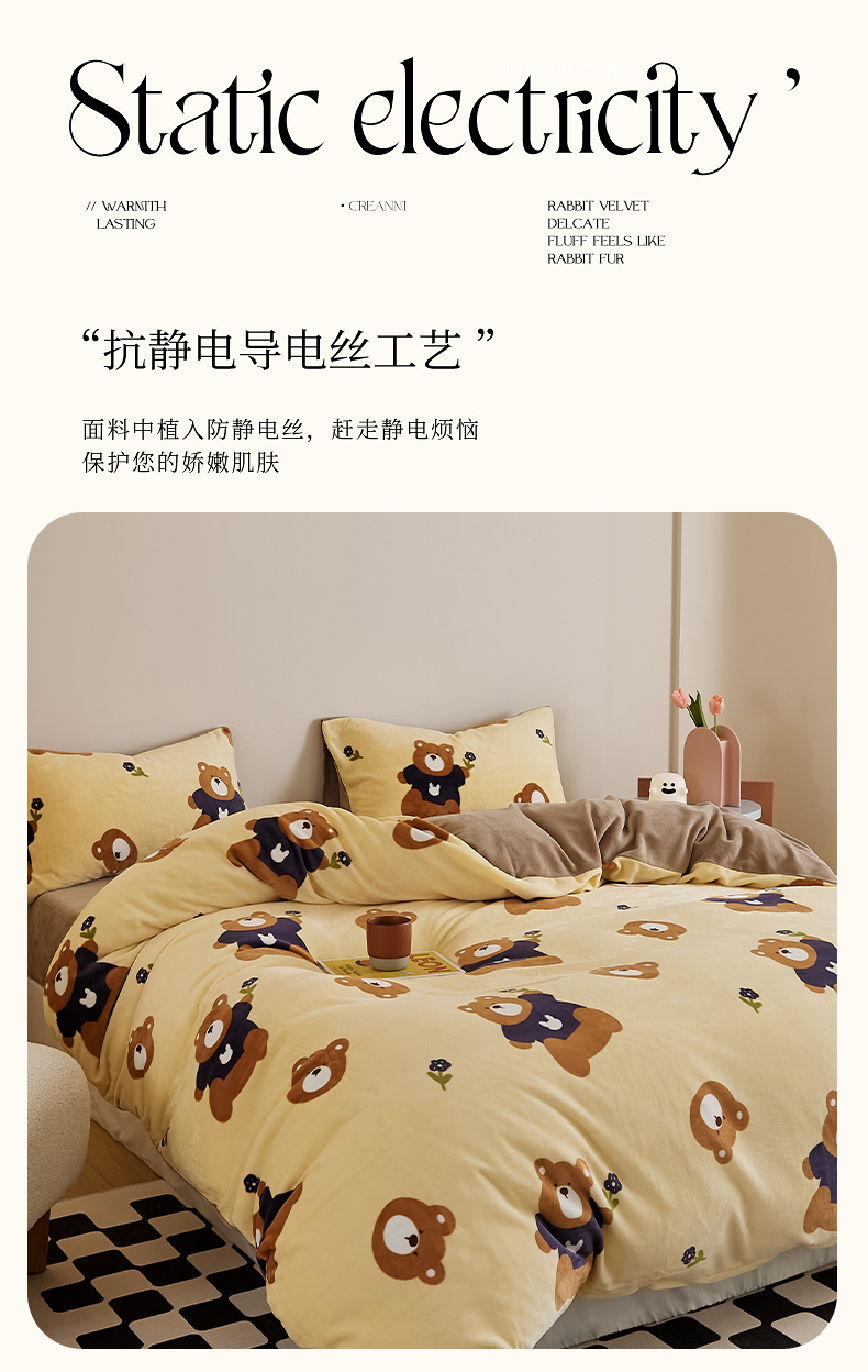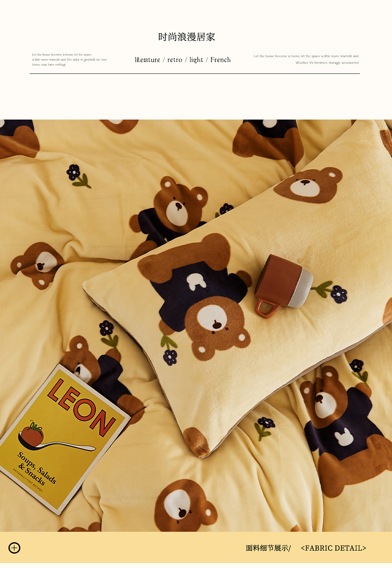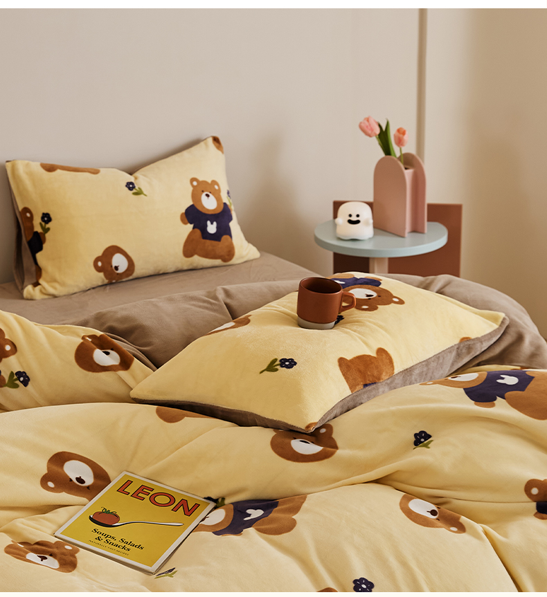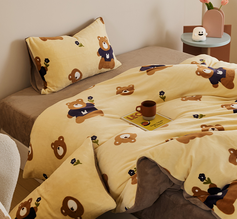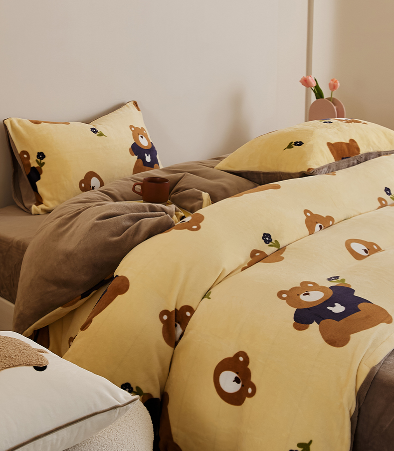 当前位置: 91家纺网 > 商品网购 > 床品套件 > 四件套 > 牛奶绒四件套 > 时光里 2024新款230克牛奶绒印花四件套 呆呆熊