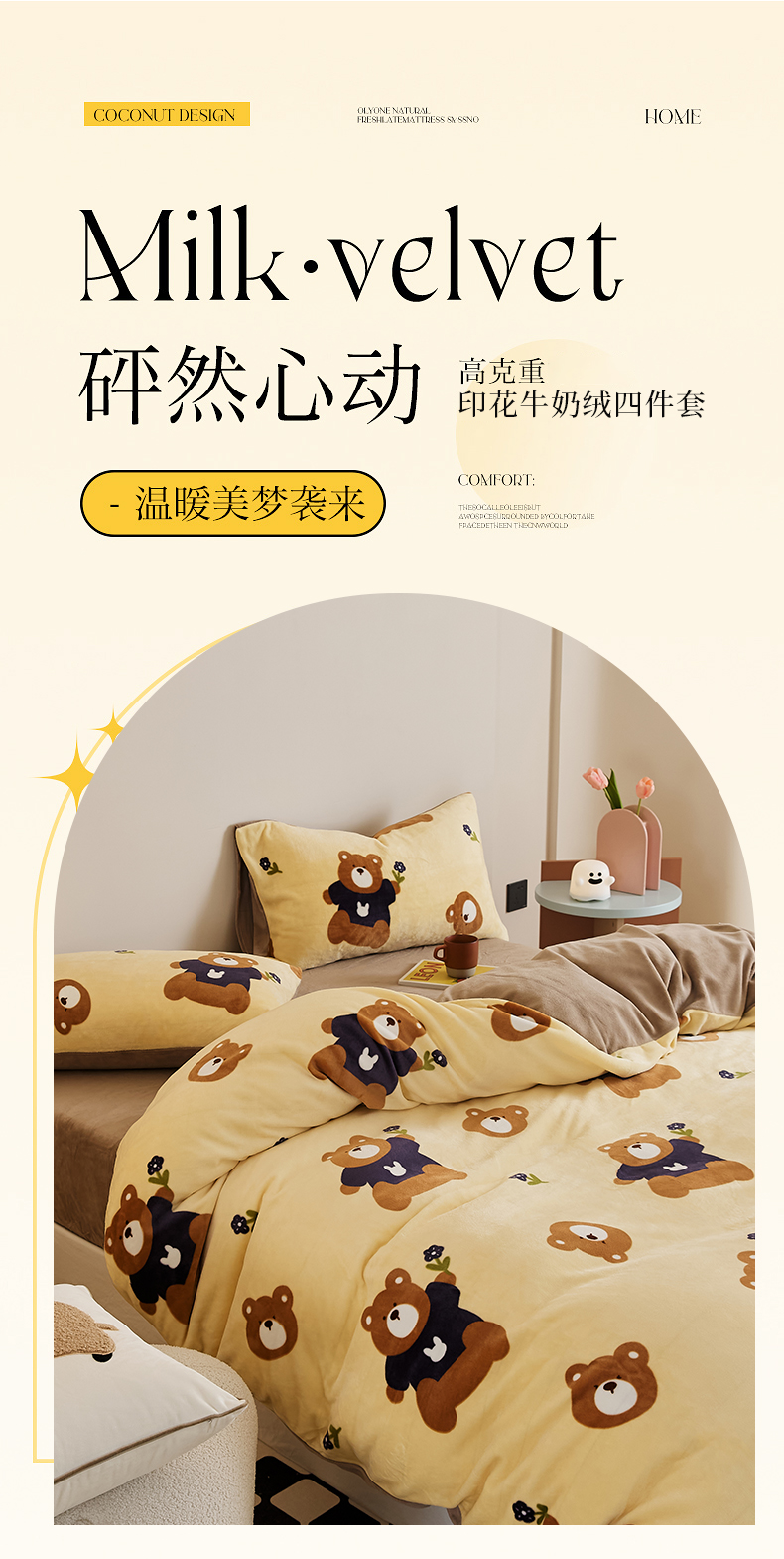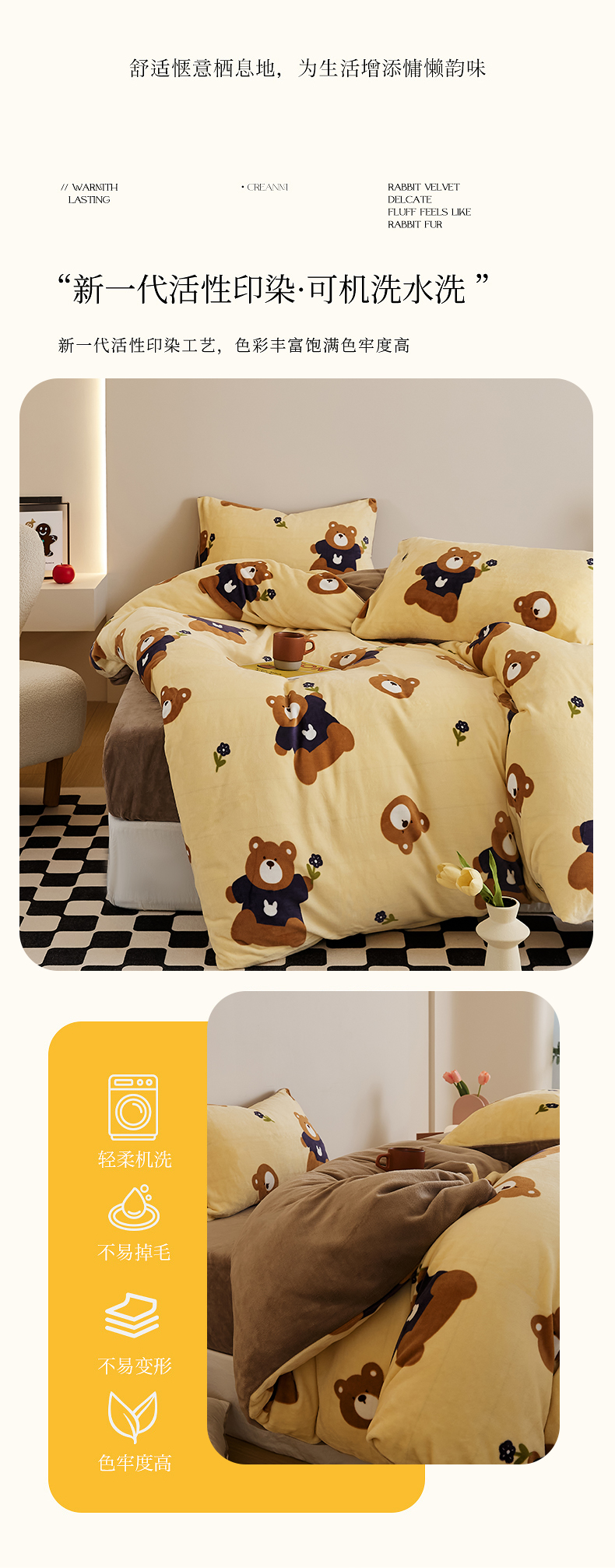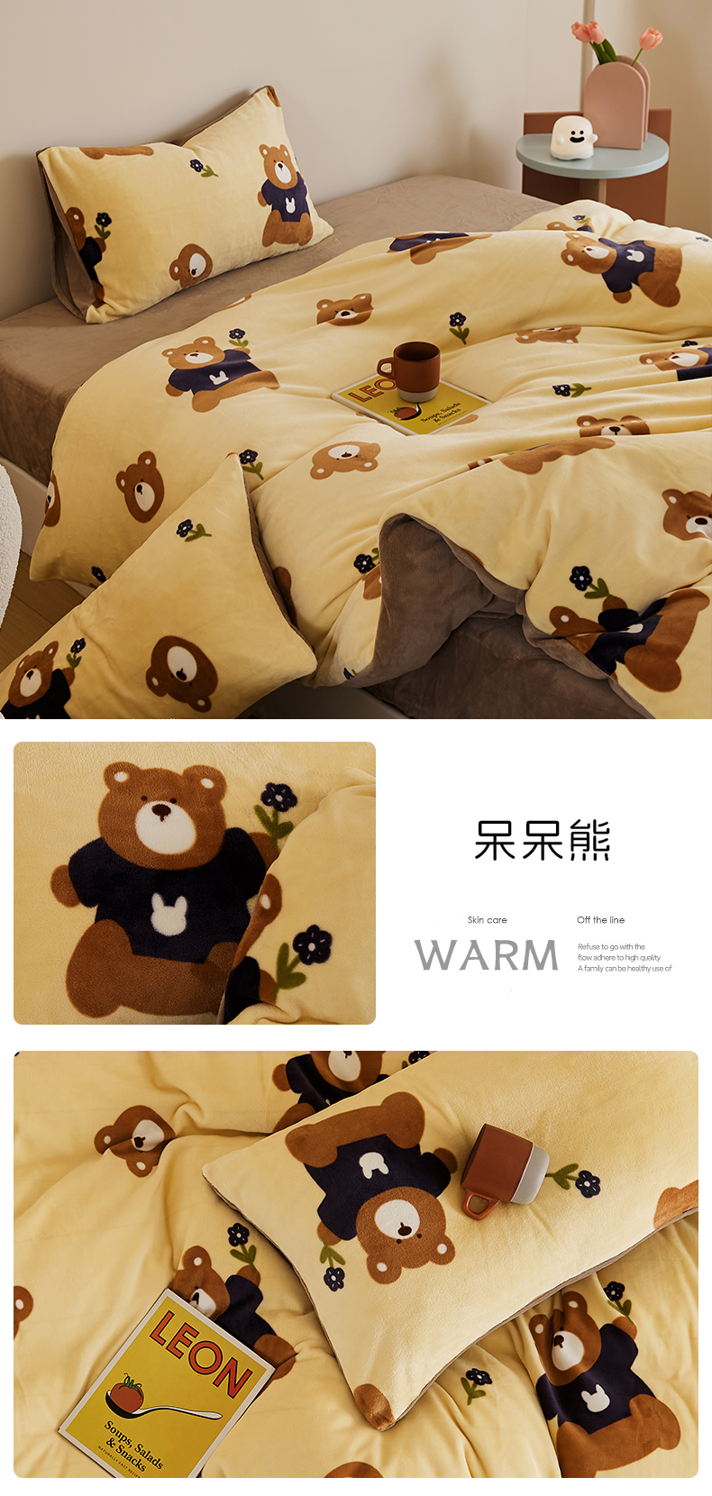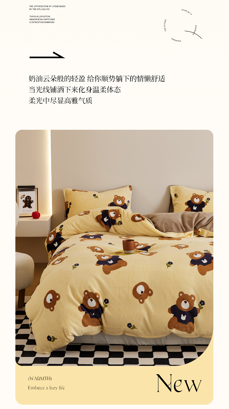 当前位置: 91家纺网 > 商品网购 > 床品套件 > 四件套 > 牛奶绒四件套 > 时光里 2024新款230克牛奶绒印花四件套 呆呆熊