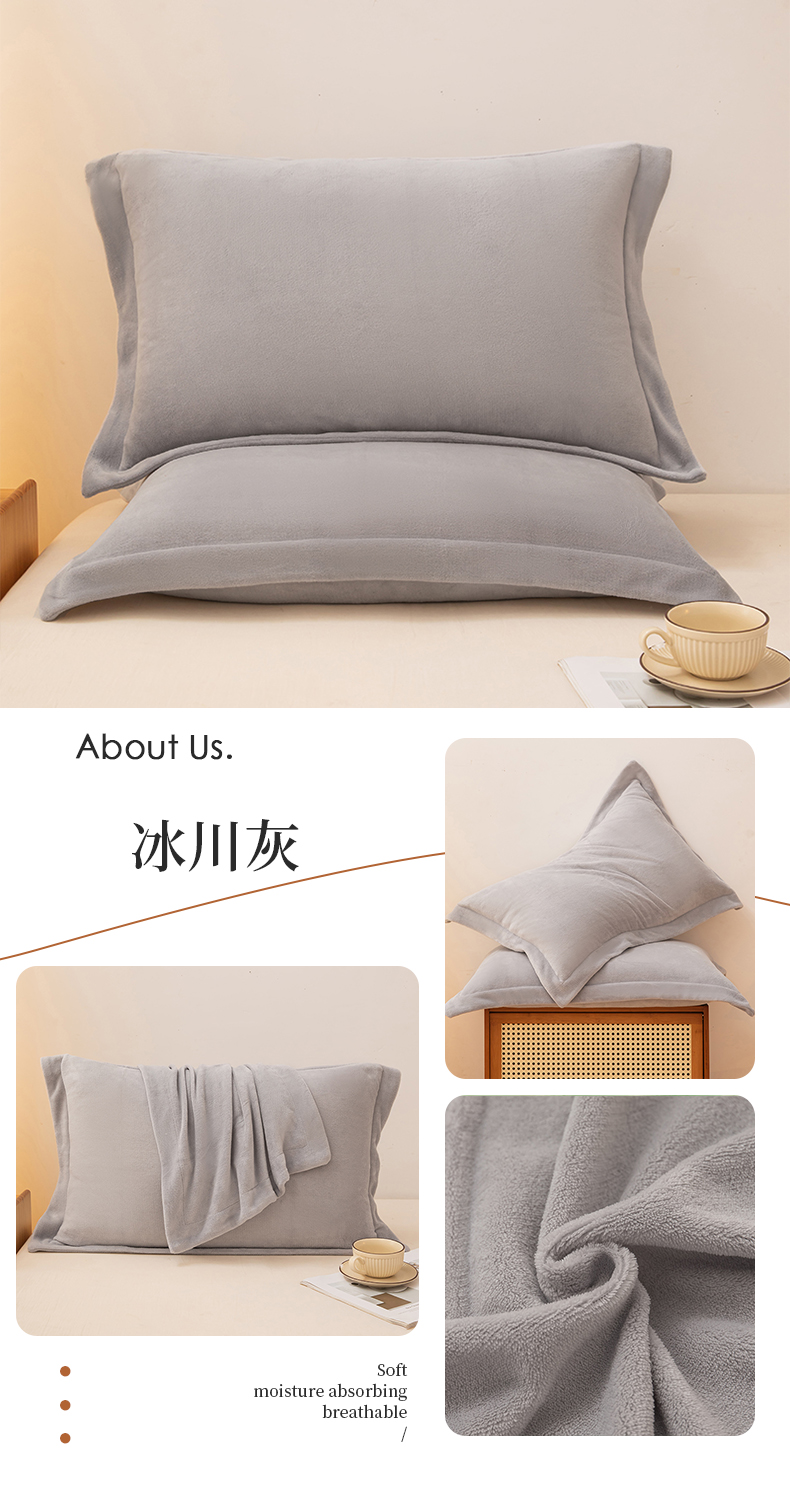 商品名称:金喜 2024秋冬爆款枕套高克重细密牛奶绒宽边枕套拉链款枕套秋冬枕套 浅灰