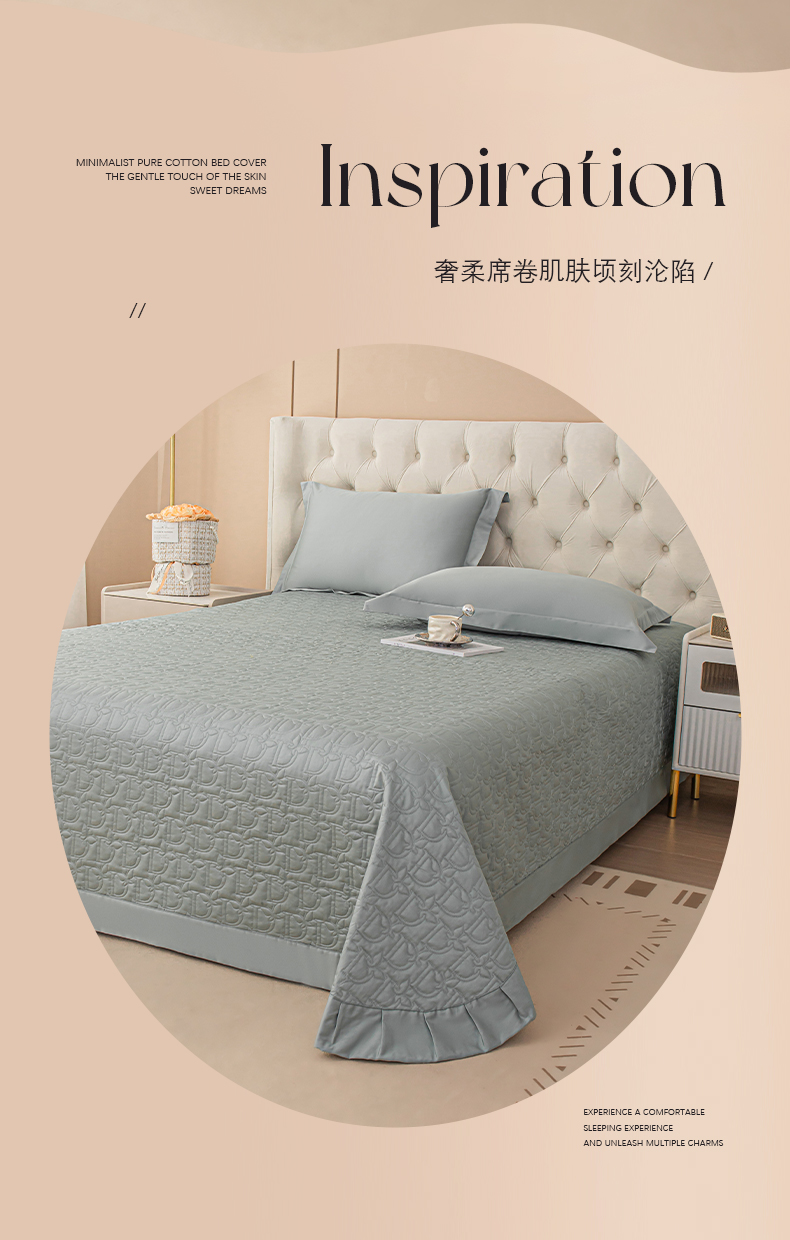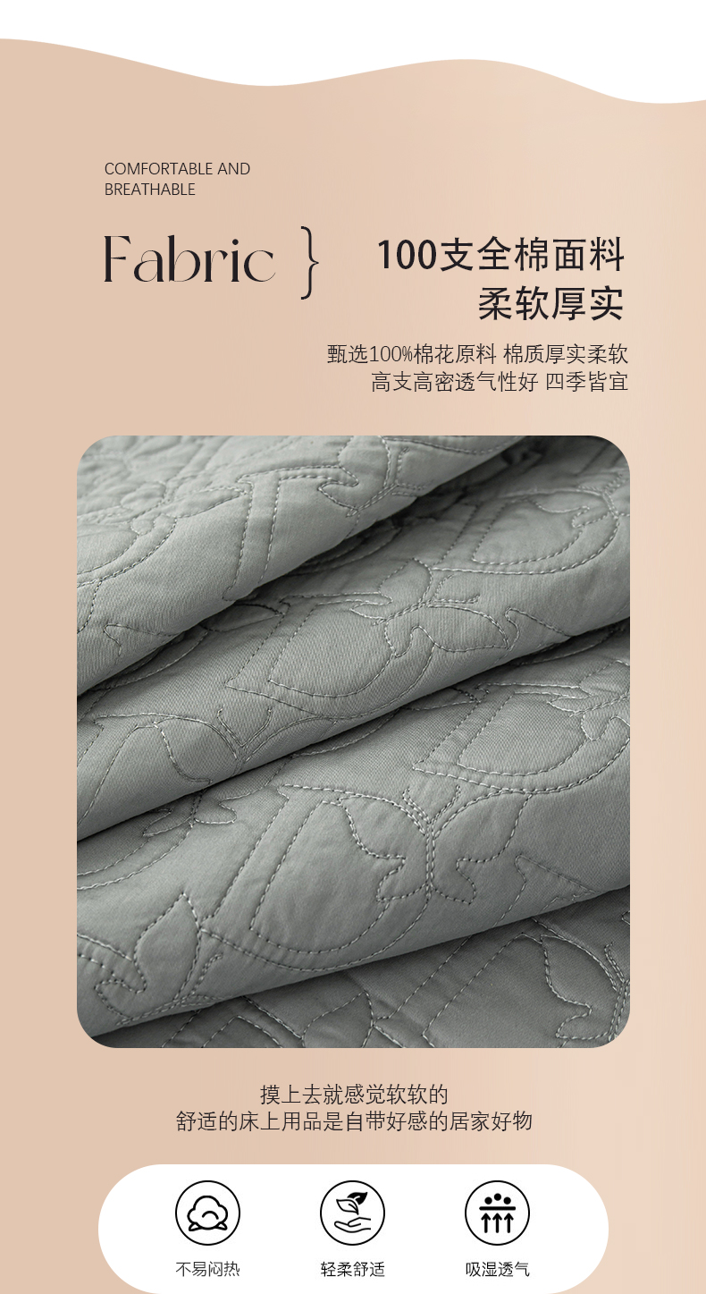 (总)金喜 2024新款100支全棉床盖蚕丝床盖三件套D型绗缝系列,白桃粉,繁花橙,粉雅灰,迷雾金,木槿绿